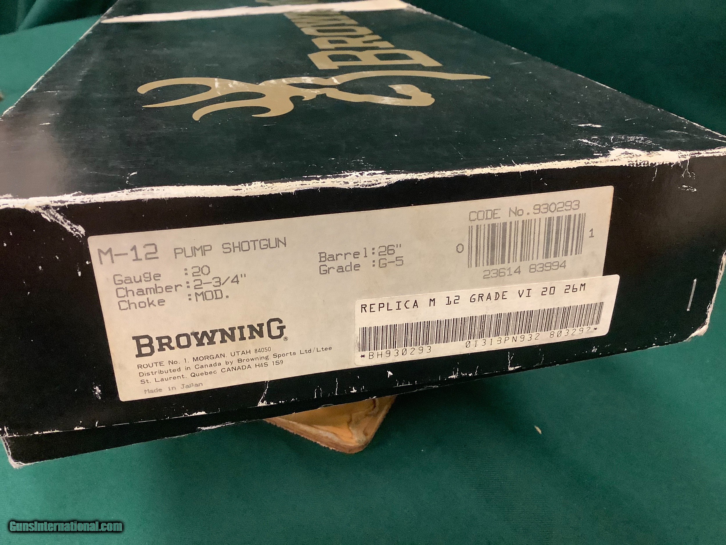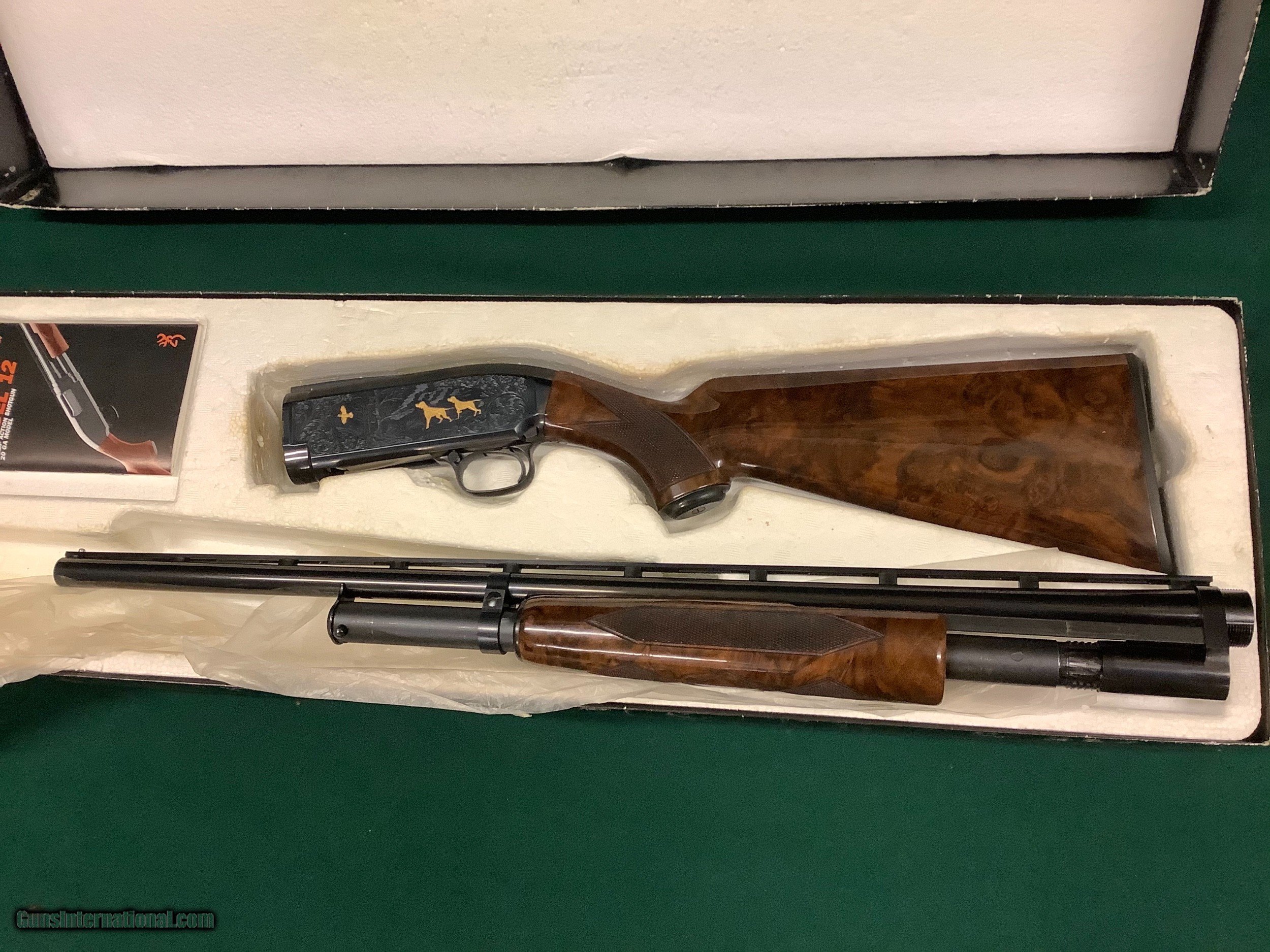 Description: New in box grade five browning model 12 ,this shotgun has spectacular wood and appears to have never been shot, the specs for gun is in the picture of end label on box,thanks for your consideration,please email or call, Jim SOLD |