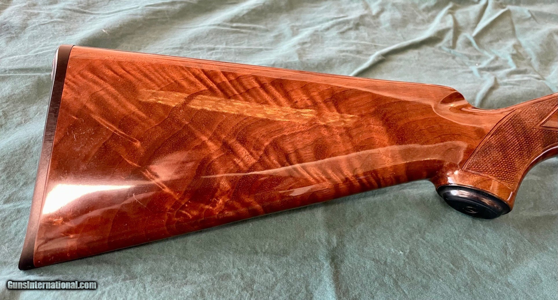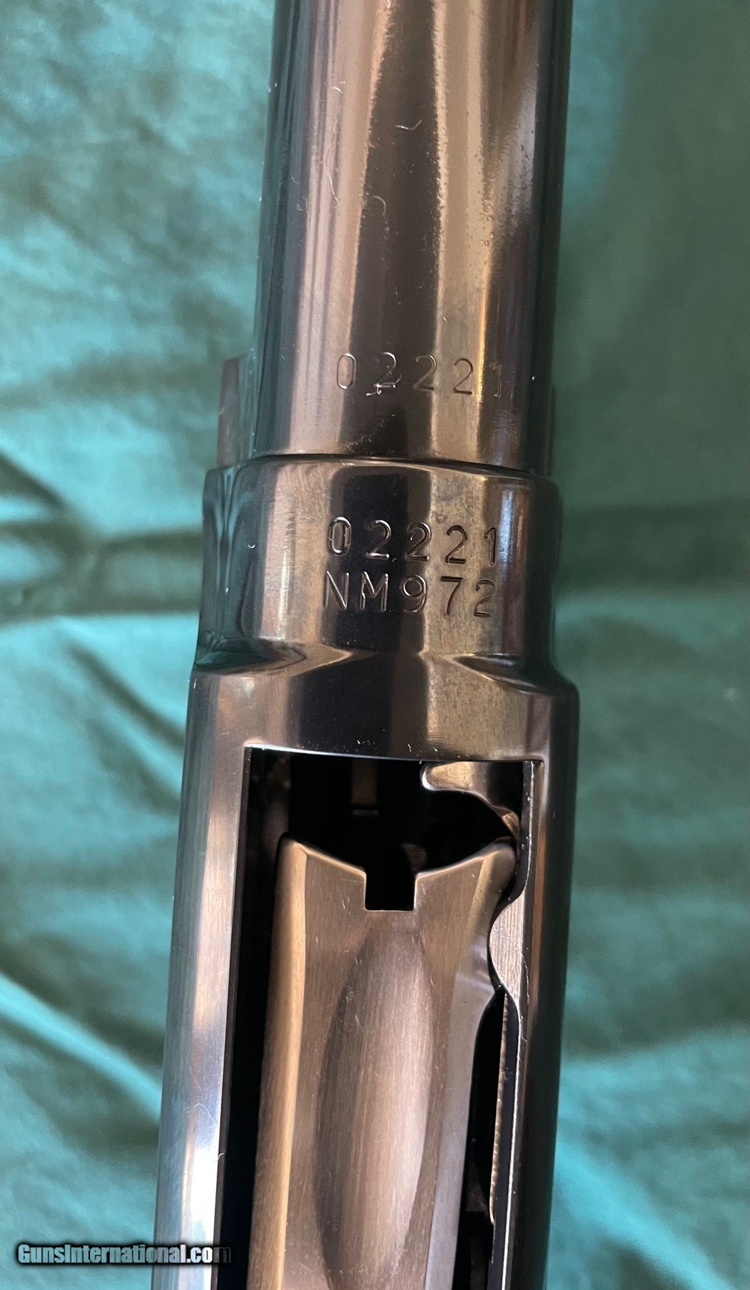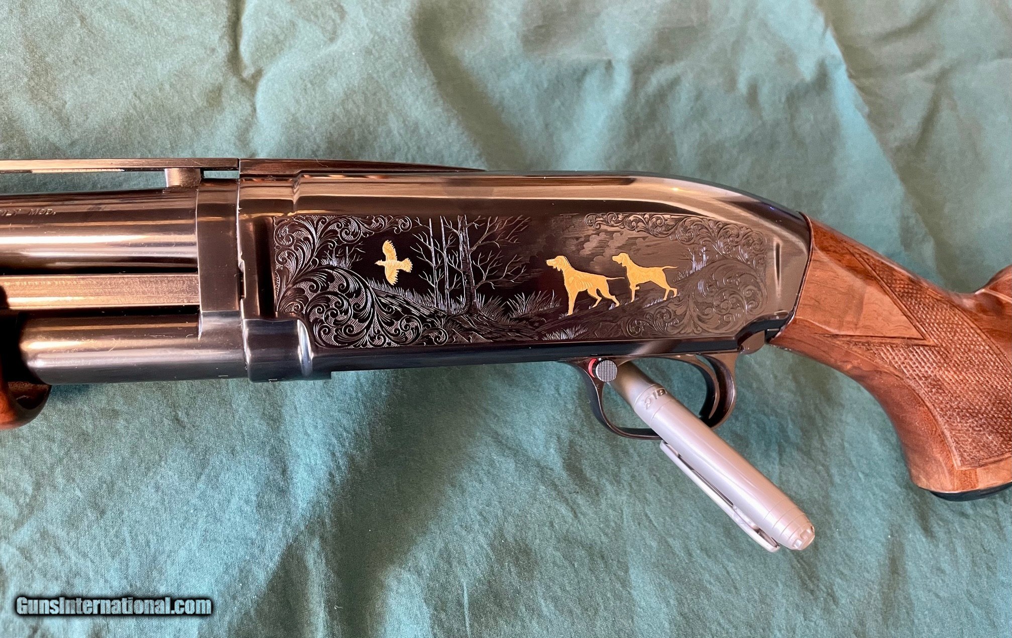 Description: This a Browning Model 12 pump shotgun, 28 gauge, Grade V. Made in Japan. 26” barrel. The shotgun is in excellent condition with a beautiful stock and engraved receiver, with gold inlay. The receiver and barrel are 100%. The wood stock is also excellent, with a couple tiny nicks (about 99%). Comes with original manual. It has been shot a few times. Serial number: 02221 NM972 SOLD Shotgun Gauge: 28 Gauge Manufacturer: Browning Model: Model 12 Serial Number: 02221 NM972 Metal Condition: 100% Wood Condition: 99% Action: Pump |