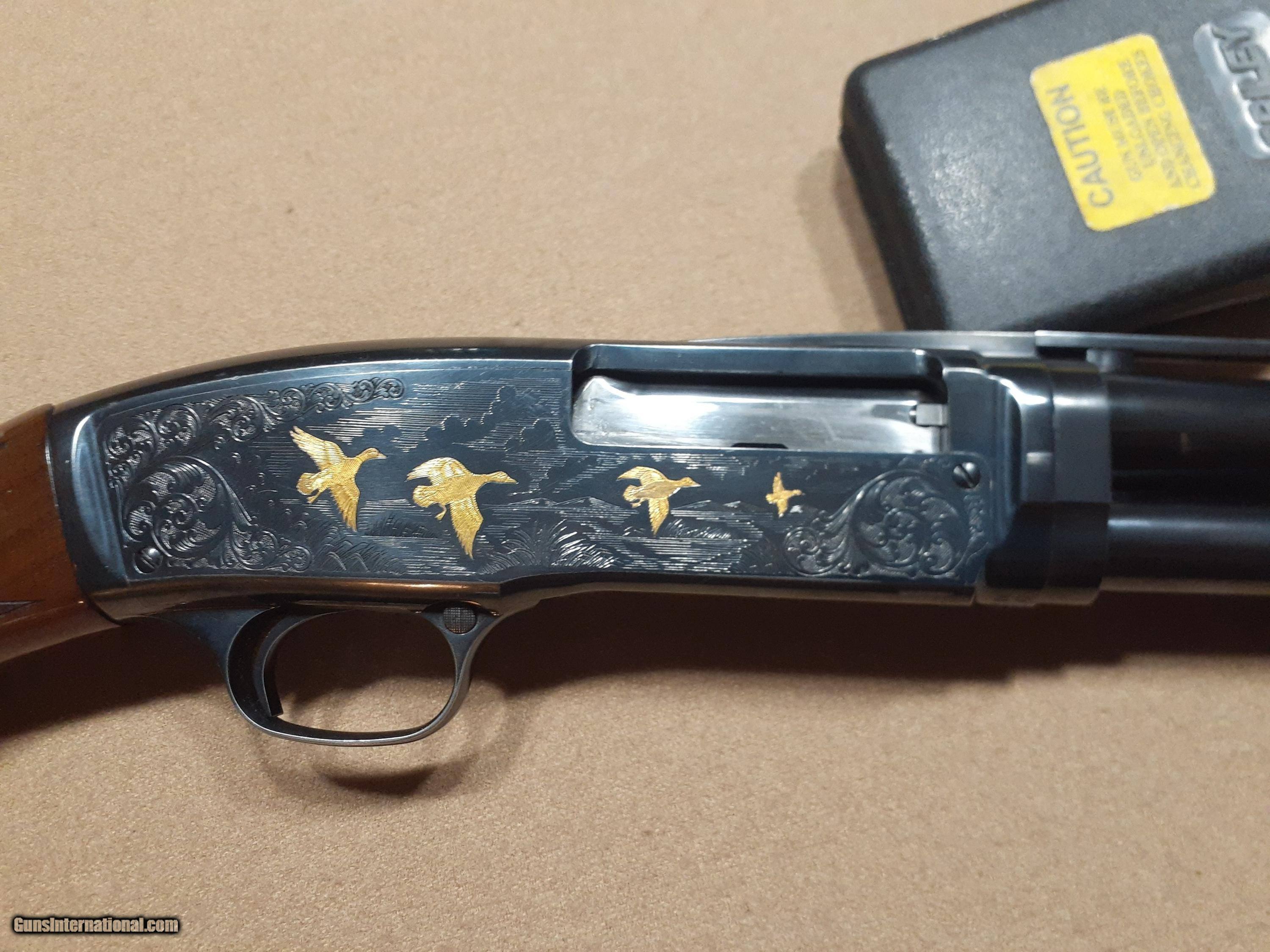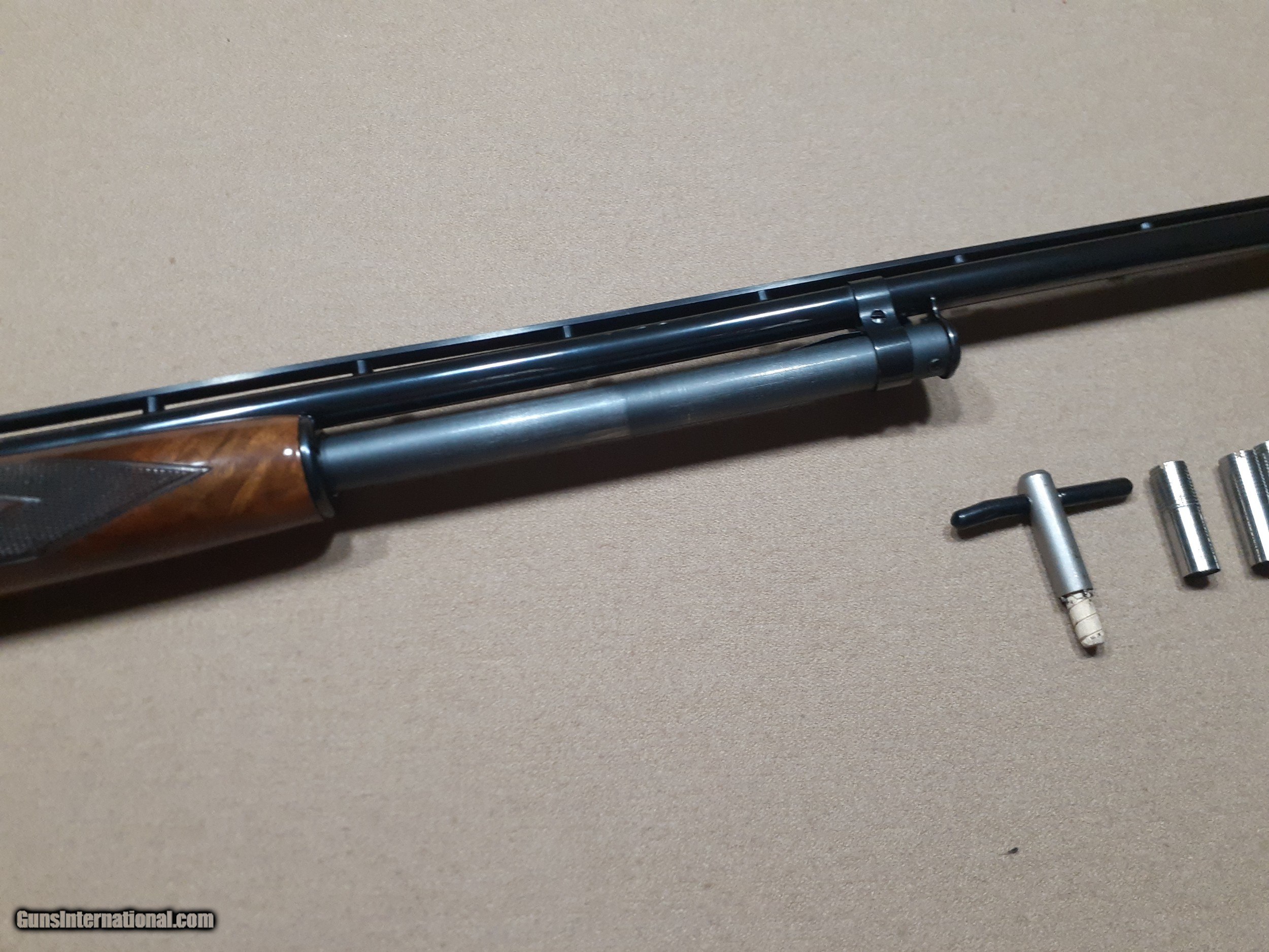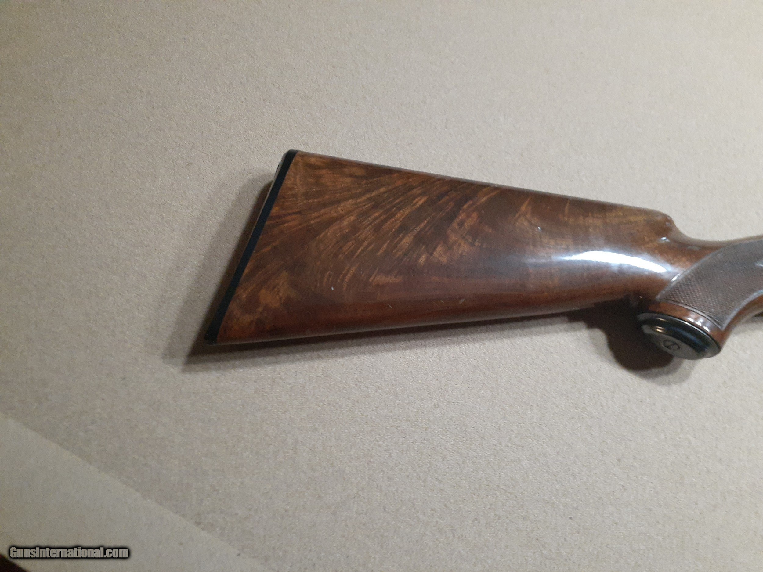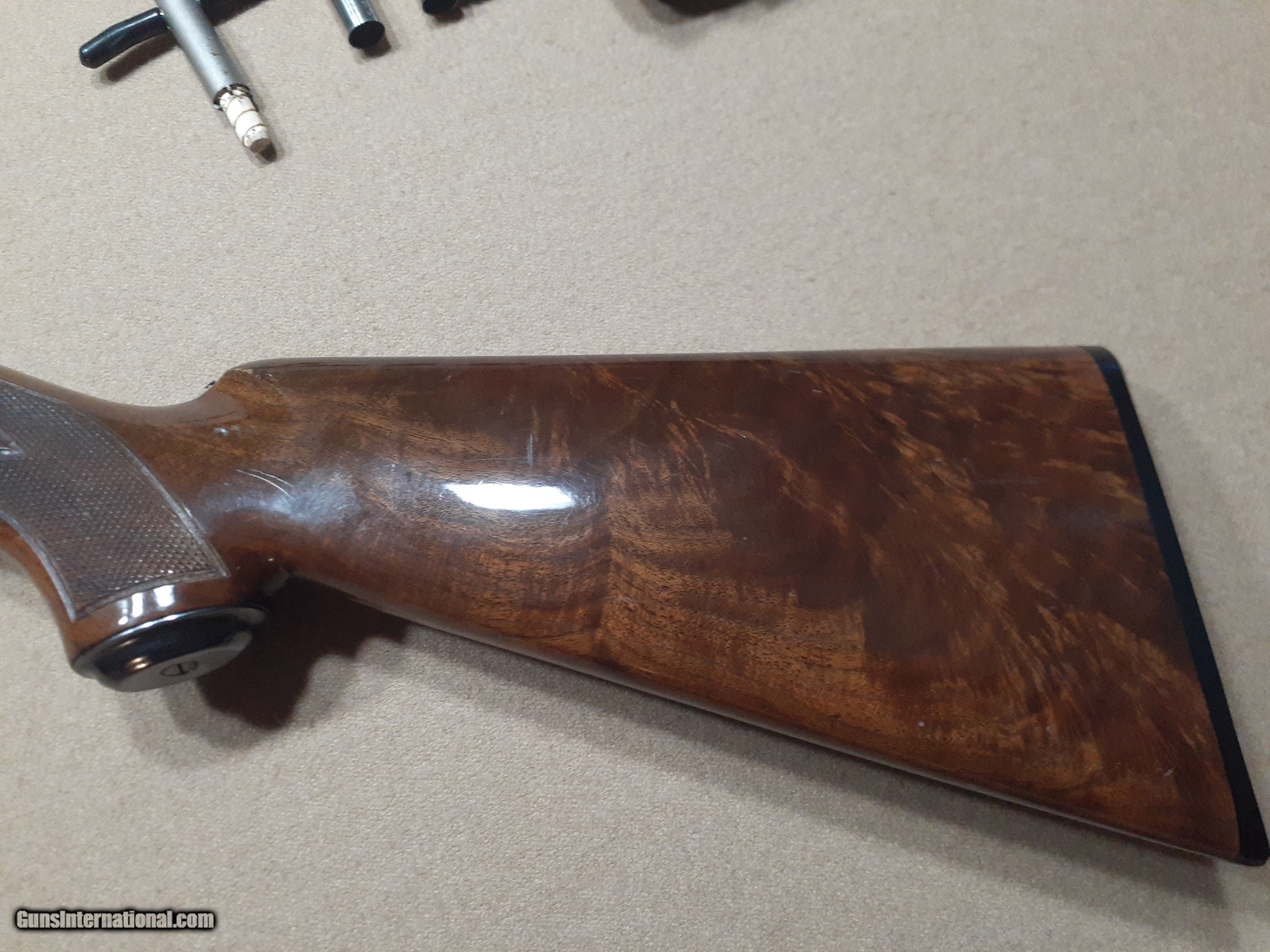 Description: SOLD! Browning version of Winchester model 42 .Owned for 30 yrs. Beautiful, gold inlay and engraving. No damage or wear, excprt for magazine wear from slide, and take down margin on bottom of receiver. All original high grade wood. Fttted with Briley,4 screw in series 10 chokes. Makes this a great all around gun. SOLD Shotgun Gauge: .410 Gauge Manufacturer: BROWNING Model: 42 GRADE V Condition: EXCELLENT Metal Condition: VERY GOOD Wood Condition: EXCELLENT Bore Condition: PERFECT Stock Dimensions: 14"LOP Rib: VENT WITH 2 BEADS Chokes: 4 BRILEY Engraving: GOLD INLAY |