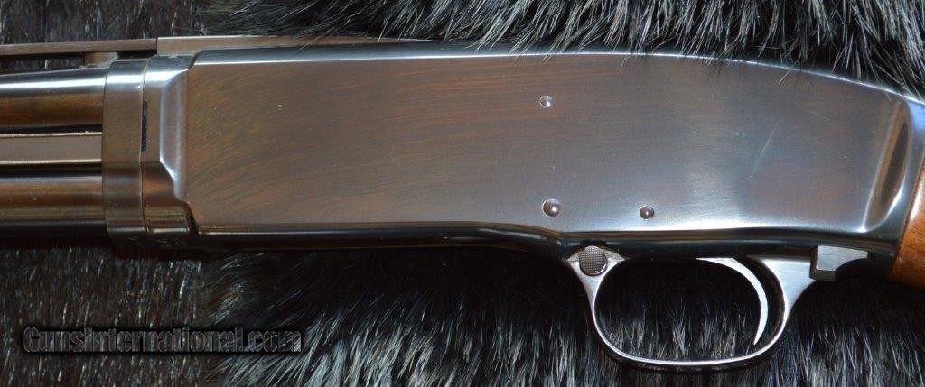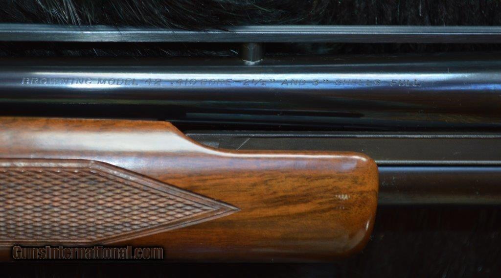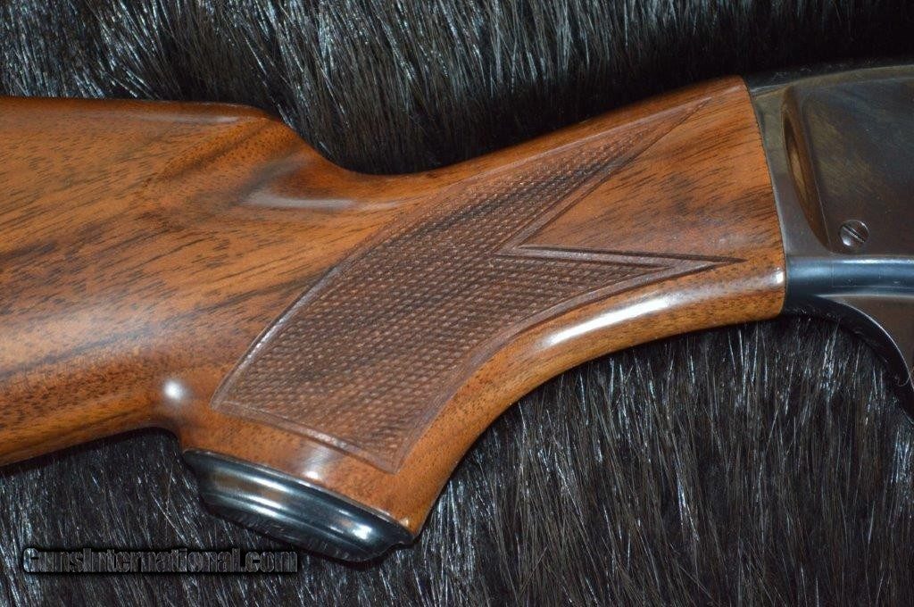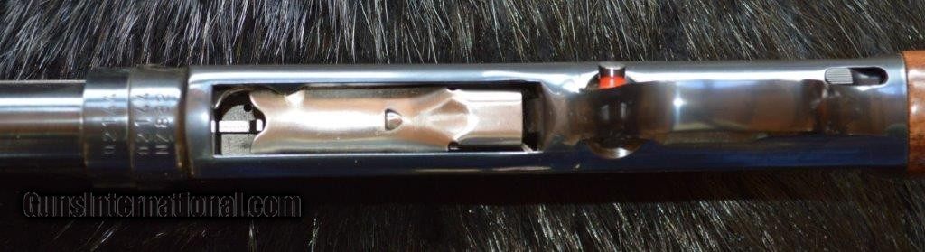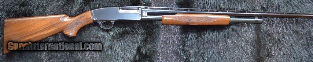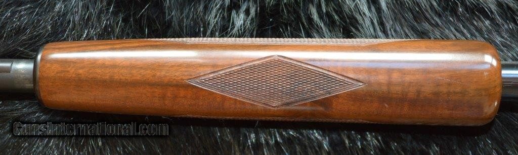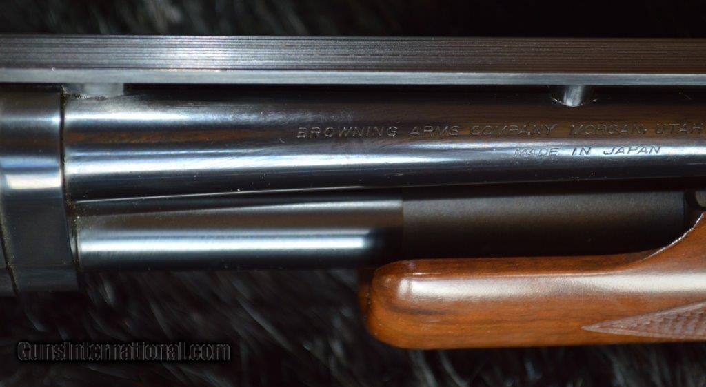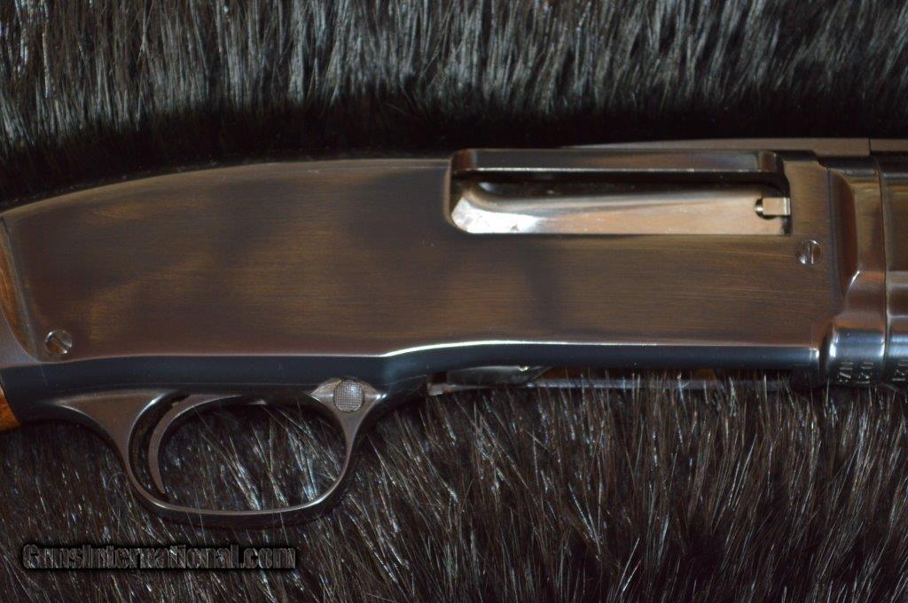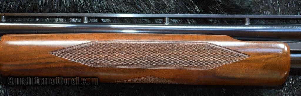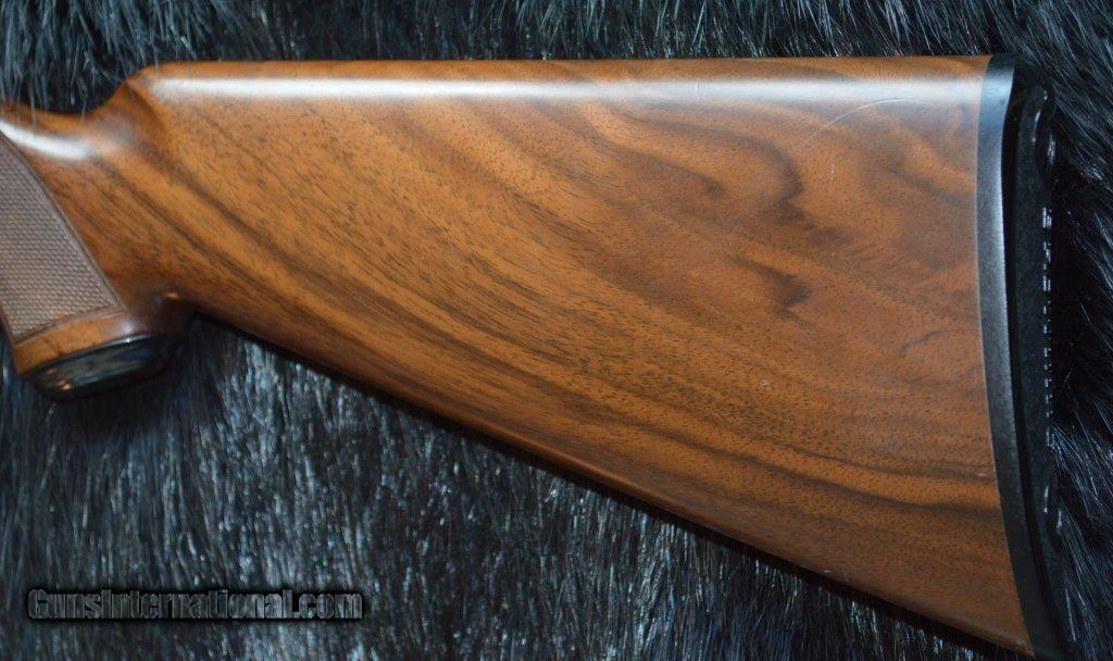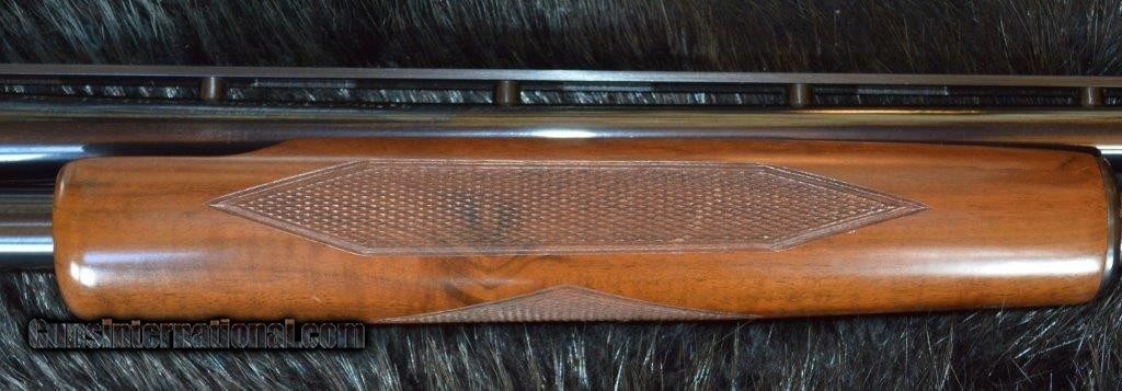 Description: This is a Browning Model 42 .410 Reproduction Limited Edition Pump-Action Shotgun in grade one. It is in excellent overall condition. It does have a 3 inch chamber and will smoothly shoot 2-1/2" shells as well, since it is a reproduction of the Winchester Model 42 with slight design improvements. All guns were made with 26 inch, vent rib, full choke barrels, with select walnut stock and forend. The 5 digit serial number with NZ882 suffix indicates it was made in 1991. The gun weighs 6 lbs. 12 oz. SOLD |