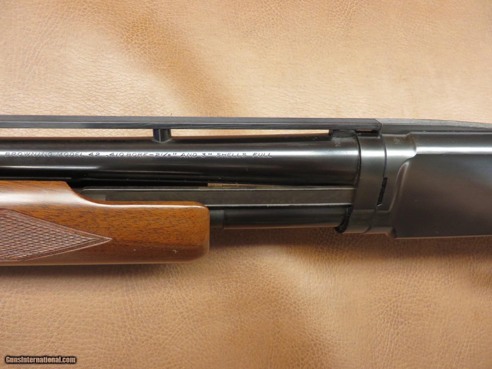 Description: 410 for 2 1/2 or 3 inch shells has 26 inch full choke vent rib barrel. Checkered walnut with original butt plate and pistol grip cap. Metal is 99% and the wood is 95%+. SOLD |