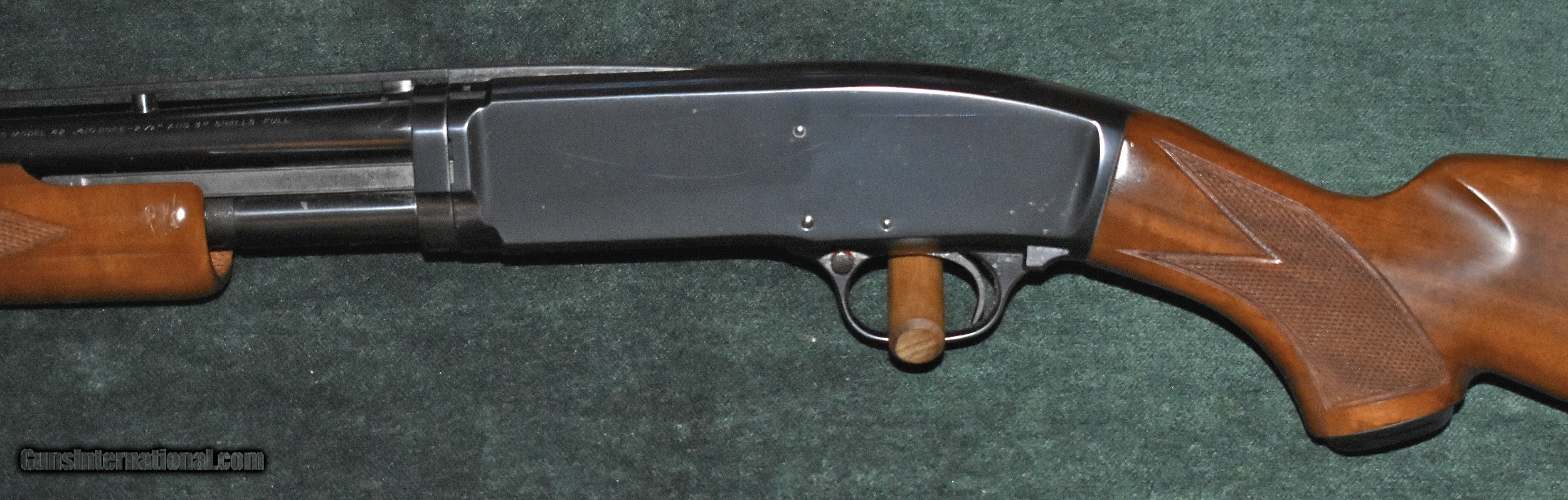 Description: Browning model 42 grade one 410 pump shotgun.Built in 1991,the model 42 is a reintroduction of the classic Winchester model 42.This gun is in as new all original condition.It has a 26" vent rib barre; choked full.The gun retains 100% of the origina blue and wood finish.This would make a great upland bird gun or a fun clays gun. SOLD Shotgun Gauge: .410 Gauge Manufacturer: Browning (Japan) Model: 42 Serial Number: 06098NZ882 Barrel Length: 26 Chambers: 3 Condition: mint Metal Condition: mint Wood Condition: mint Bore Condition: mint Action: pump Rib: ventilated Manufacture Date: 1991 Chokes: full |