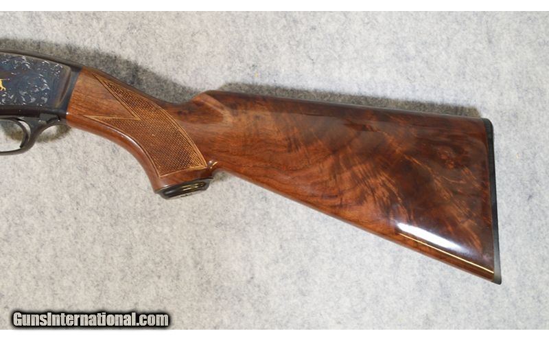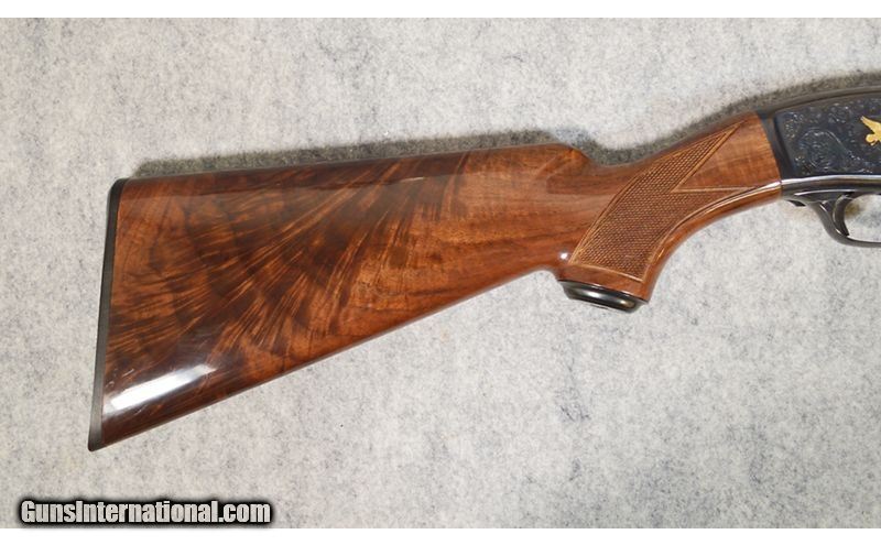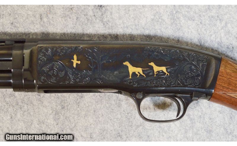 Description: A collectors grade gun! This Browning Model 42 Grade V Slide action shotgun, Serial # 01222 NZ982, .410 Ga, 26" VR 3" Full Barrel, unfired in the original box. Receiver engraved with Gold duck & bird dog scenes, manufactured for only 2 years from 1991 to 1993, Early serial number of the 5 digit series, and very rare to find an unfired one. LOP: 14 3/8" DAC: 1 1/2" DAH: 2 3/8". Overall condition is excellent. .410 Bore SOLD Chambers: 3 Metal Condition: Excellent Wood Condition: Excellent Bore Condition: Excellent Barrels: 26 Triggers: Factory Trigger Stock Dimensions: LOP: 14 3/8 Fore End: Checkered Walnut Fore End Butt Pad: Factory Butt Plate Weight: 7 lbs Sights: Bead Front Sight Chokes: Fixed Full Choke Item Location: Louisville, KY |