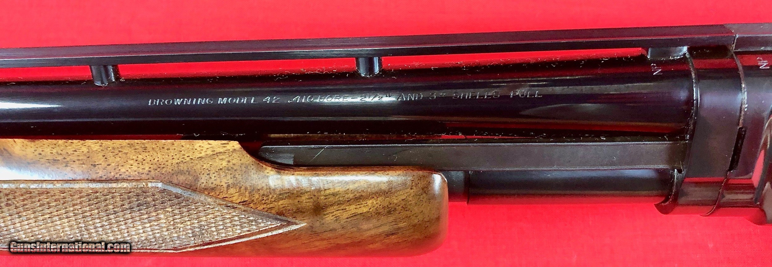 Description: Browning Model 42 Limited Edition Grade I 410 bore 26 inch vent rib barrel FULL choke Excellent condition with some slight handling marks to stock No mechanical wear Sharp checkering 3 inch chamber Ships to FFL only All firearms should be checked by a gunsmith Call or text Paul at 601-397-8054 SOLD |