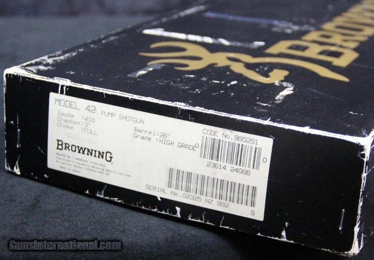 Description: .410, #02325NZ982, 26 inch barrel, blue finish, highly embellished including gold inlays in game scenes, high grade wood, vent rib, original box, 1991-1993. Condition: NIB SOLD |