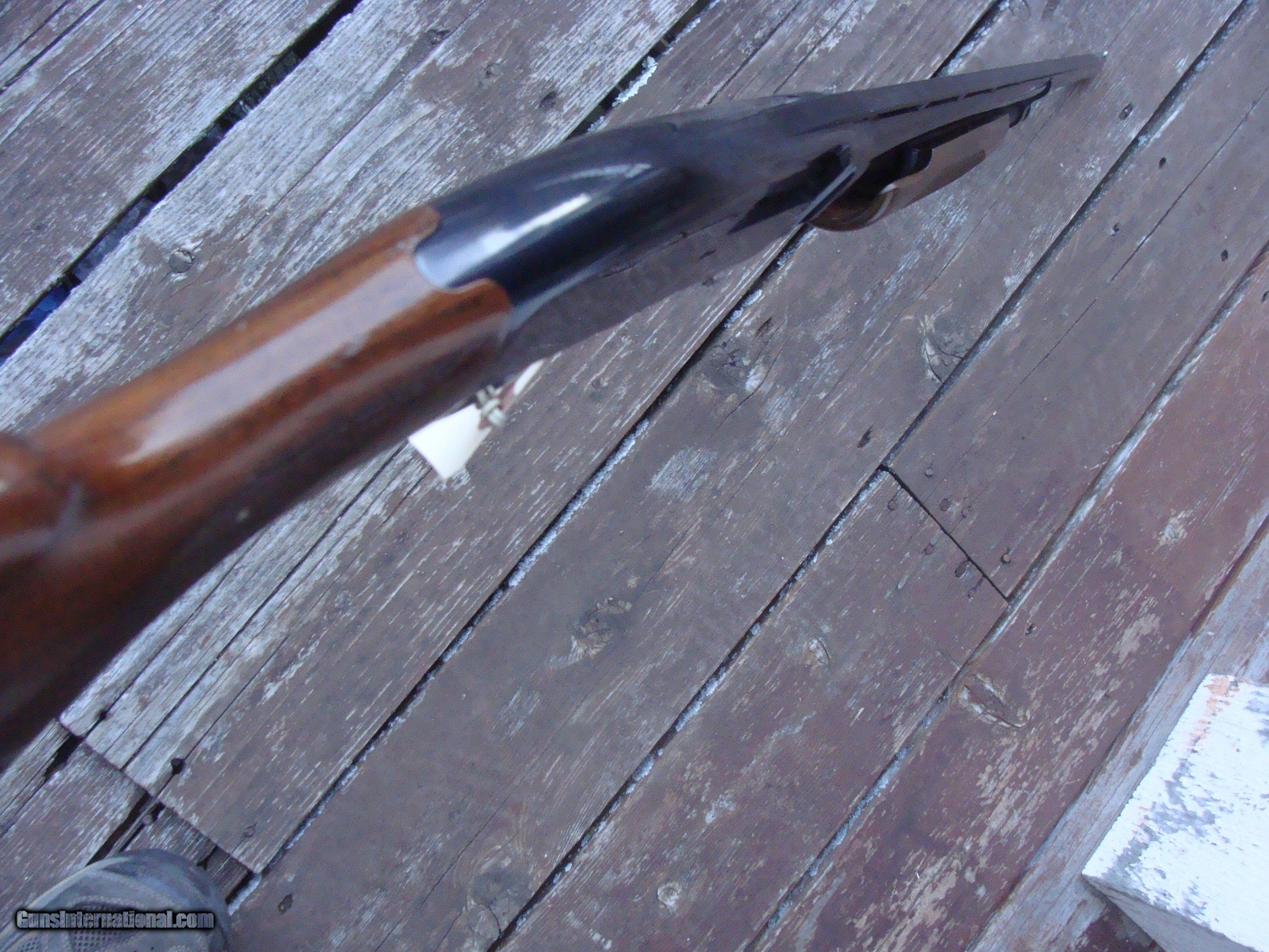 Description: BROWNING REINTRODUCED THE VENERABLE AND MUCH SOUGHT AFTER WINCHESTER MODEL 42 410 A NUMBER OF YEARS AGO AND ARE IDENTICAL MORE OR LESS TO THE ORIGINAS MADE BY WINCHESTER FROM THE 1930'S APPROX UNTIL THE EARLY 1960'S. THE BROWNING GUNS WERE MADE IN VARIOUS GRADES AND WHILE THIS IS CONSIDERED GRADE 1 IT IS IENTICAL TO THE ORIGINALS IN SKEET TRIM WITH HANDSOMELY EXECTUTED CHECKERING IDENTICAL TO THAT USED IN THE WINCHESTER GUNS. HANDSOME AMERICAL WALNUT STOCK SET WITH NICELY EXECUTED CHECKERING . OTHER THAN A FEW MARKS ON THE LEFT SIDE OF THE RECEIVER THIS GUN IS IN NOT FAR FROM AS NEW COND. 26" VR FULL CHOKE BARREL. SLIDE BAR STILL RETAINS ALMOST FULL BLUE INDICATING THAT IT HAS BEEN HARDLY USED. THIS IS A VERY NICE GUN FOR A FRACTION OF THE COST OF A SIMILAR WIN. 42, POINTS AND SWINGS BEAUTIFULLY AND A JOY TO LOOK AT AND HANDLE SHIPPING $ 45.00 SOLD |