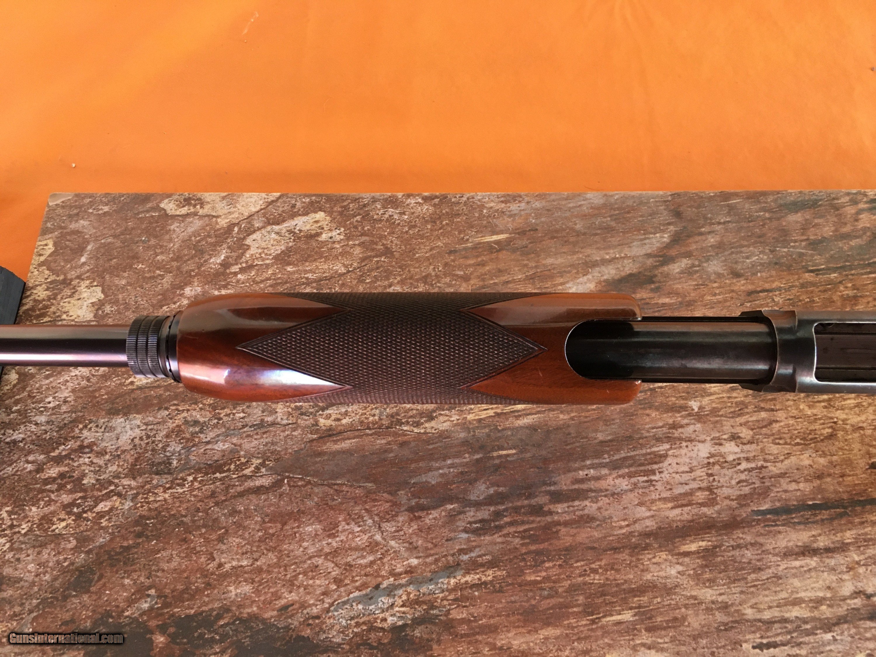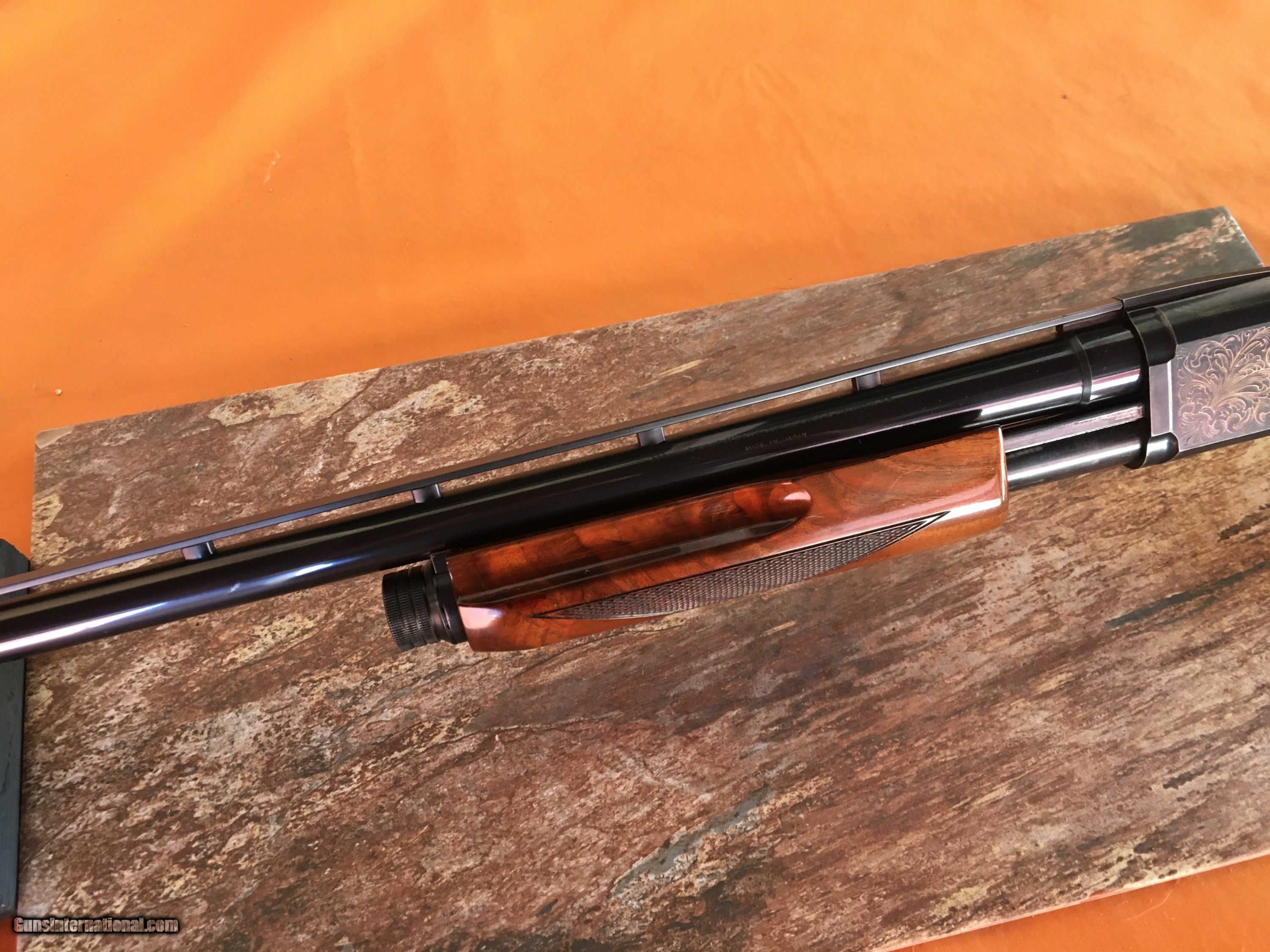 Description: Browning Model BSP Invector Pump Grade 2 - Field 12 Ga. Shotgun - Walnut pistol grip style checkered stock with semi - beavertail checkered pump forearm with cushioned butt pad. Invector special steel 28 in. long, vented ribbed barrel with front bead sight and Mod choke. Tubular magazine will accept 2.75 in. and 3.00 in. shells. Overall length 48.5 in. long. LOP 14.25 in. Wgt. 7.5 lbs. Engraved receiver with bottom ejection . Thumb safety. Barrel and receiver are retaining approx. 95% plus bluing. Bore is clean and bright. Pump action is smooth and crisp. Includes a new soft sleeve . Stock and forearm are in excellent condition with minimal handling marks. The Browning BSP pump series are known to be extremly rugged and reliable . Shotgun is in excellent overall condition. Appears to have had little use. Manufactured in 1991. We can ship to your FFL dealer at a flat rate of $50.00 S&I to lower 48 states. All of oyr rifles have been cleaned and lubricated. SOLD Shotgun Gauge: 12 Gauge Manufacturer: Browning Model: BSP - Invector Serial Number: 25524NZ152 Barrel Length: 28 In Condition: Excellent Metal Condition: Excellent Wood Condition: Excellent Bore Condition: Clean / Bright Action: Pump Triggers: Gold Stock Comb: yes Butt Pad: Cushioned Weight: 7.5 Lbs Sights: Bead Manufacture Date: 1991 Case: New soft sleeve |