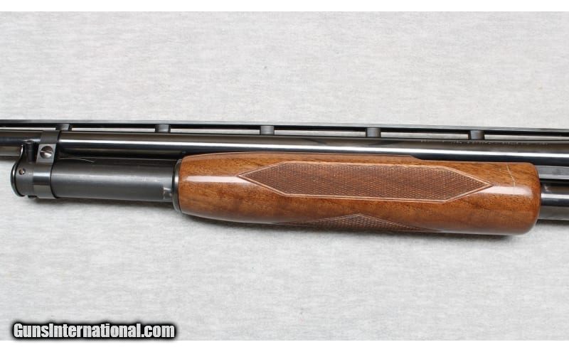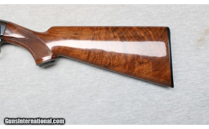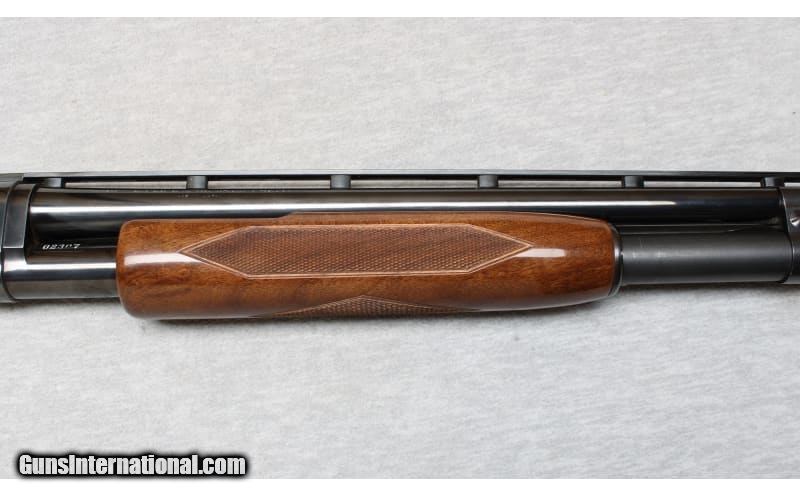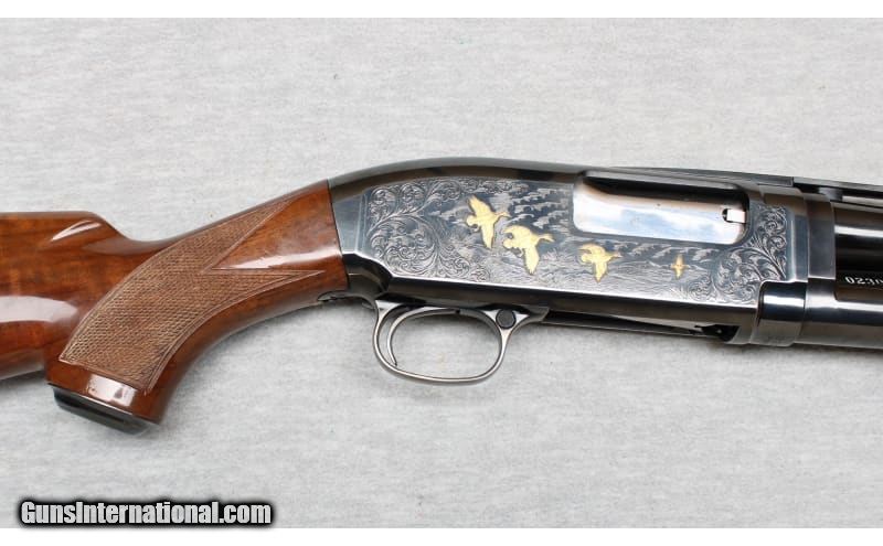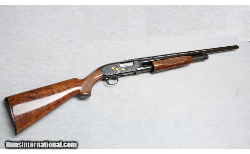 Description: Browning Model 12 Grade V in 20-gauge. Made in Japan by Miroku. This pump shotgun has a 26-inch barrel and is chambered 2 3/4 inches with a modified choke. This is a beautiful shotgun with select walnut checkered 22 lines per inch with high gloss finish. It offers a dark blued barrel with a ventilated rib with a single silver bead. The action has extensive game scene engravings include multiple gold inlays. This shotgun was made in 1989 and 4000 were manufactured. 20 Gauge SOLD Chambers: 2 3/4 Inches Metal Condition: Excellent Wood Condition: Excellent with a few minor handling marks Bore Condition: Bright Barrels: 26 Inches Triggers: Factory Stock Dimensions: LOP 14 Inches Fore End: Checkered walnut Butt Pad: Plastic pad Sights: Single silver bead on elevated rib Chokes: Modified Item Location: La Vista, NE |