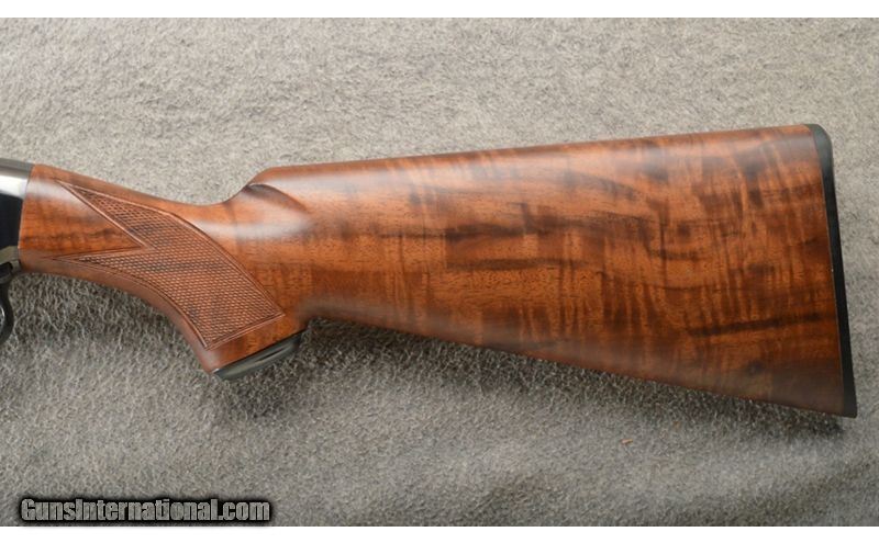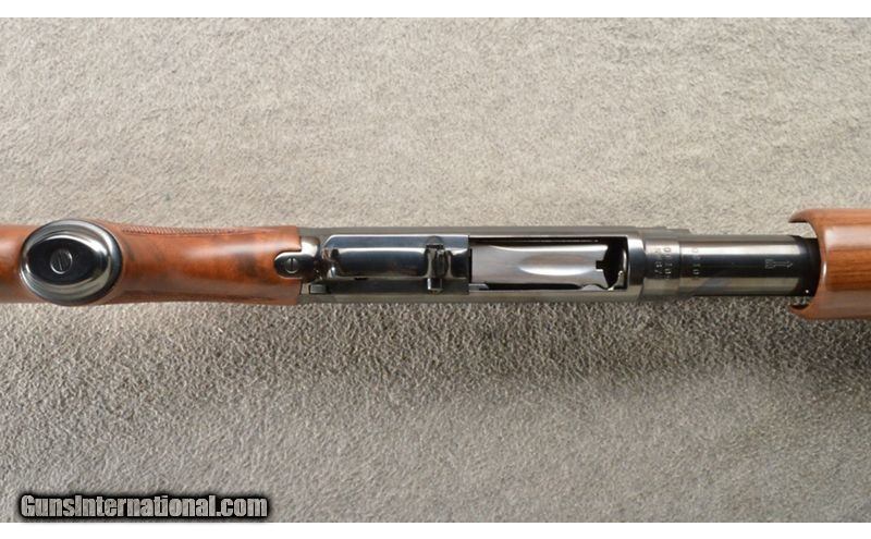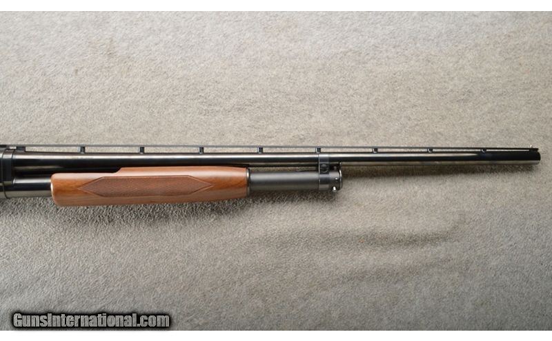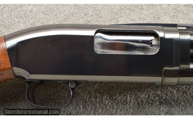 Description: This is an as new in box Browning made Winchester model 12 28 gauge shotgun. The walnut stock is better than grade 1 wood and is as new. The blue is also excellent and looks like new. Even thou this is a like new shotgun there may be tiny flaws. This is one of several Winchester/Brownings with the SN#00109xxxxx that are like new in the box. 28 Gauge SOLD Chambers: Pump action repeater 4+1. Metal Condition: ANIB. Wood Condition: ANIB. Bore Condition: ANIB. Barrels: 26" gloss blue with a vent rib. Triggers: Single blue. Stock Dimensions: 13 7/8" LOP. Fore End: Very nice walnut with checkering. Butt Pad: Matching walnut with a checkered pistol grip and a Browning butt plate. Weight: 7 Lbs. 5 Oz. Sights: Single silver color front bead on the vent rib. Chokes: Fixed MOD. Item Location: Owatonna, MN |