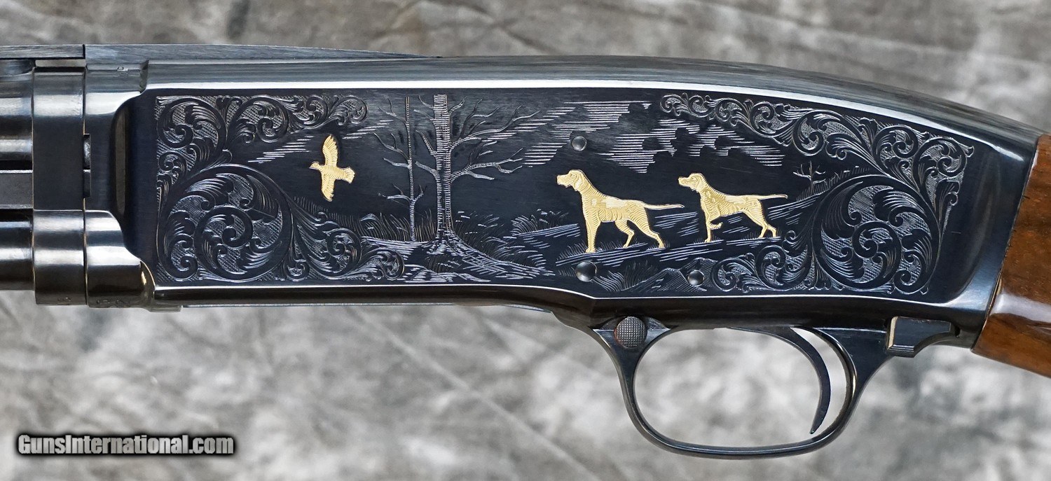 Description: Pre-Owned Browning Model 42 Grade V Field .410 Bore with 26" fixed (Full) choke barrel, factory ventilated rib. Blued action with gold birds and scrolls. Factory upgraded pistol grip field stock to butt plate, round forearm. Outstanding condition, minor scuffs and minor storage wear. Includes factory box. Consignment, ineligible for trade-ins. SOLD Shotgun Gauge: .410 Gauge |