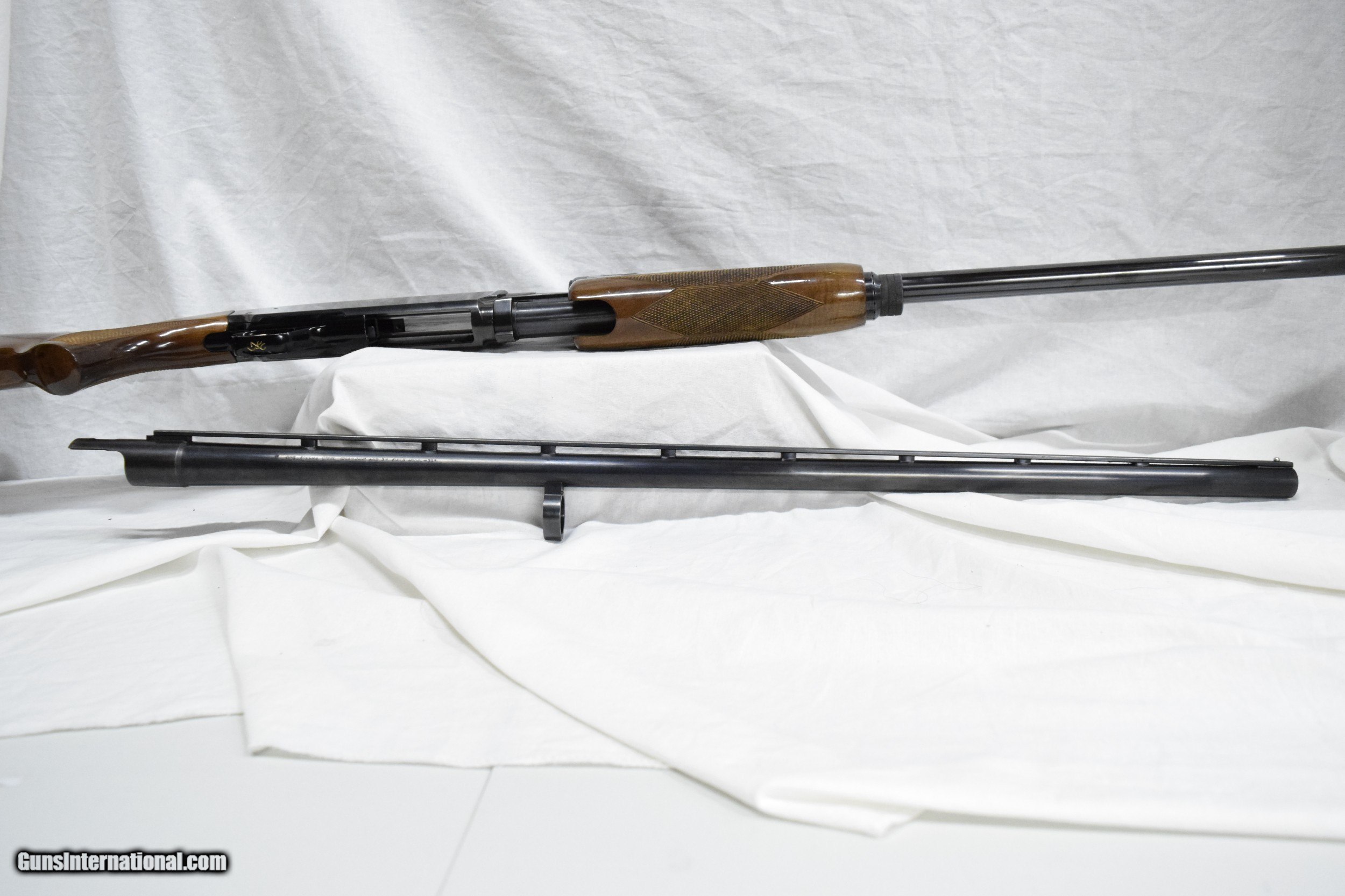 Description: Not an ordinary BPS. No other pump shotgun offers a more inviting pallet for art than the BPS. Both side so of the fully engraved model feature beautifully detailed engraving scenes on both sides of the machined steel receiver, that endow your shotgun with a personality of its own. Some pumps are just pumps. This is an heirloom to be passed along to the generations. The guts under the beauty. The proven pump-action features rugged steel components. The receiver is machined from a solid block of forged steel. Rigid double slide bars are made from heat-treated steel to eliminate twisting and binding for faster, more efficient slide-action operation. Reliable in all conditions. A convenient serrated slide release is located at the rear of the trigger guard. Polish and more polish. The blued finish is ultra-deep exactly as you expect from a fine Browning. The polish protects the steel surfaces of which there are plenty on this shotgun. Dual action bars keep the slide and bolt in totally alignment all the time and you can feel it as you work the action. The feeling of steel on steel is more akin to a fine over and under than a pump action shotgun. Great condition with little wear on the stock. This item comes with an additional barrel and a soft case. Pre-Owned - Browning Invector BPS Pump 12Ga 30"/24"