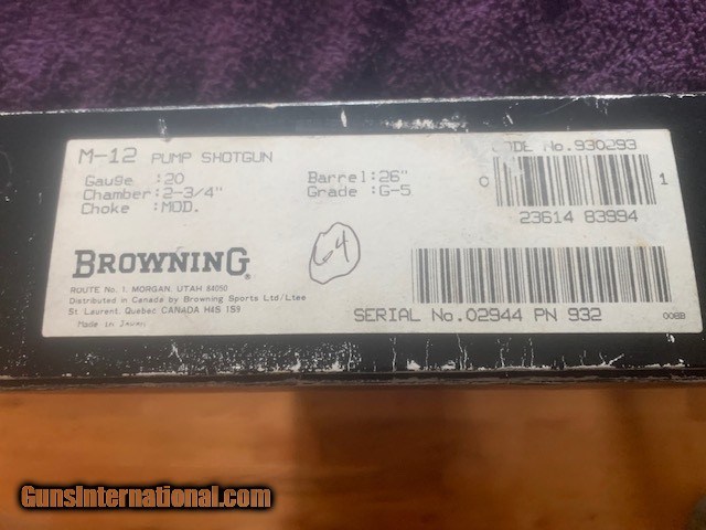 SOLD———BROWNING M-12, GRADE 5, 20 GA., 26” MOD. CHOKE, NEW IN THE BOX