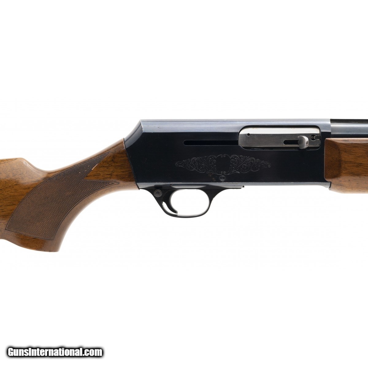 Description: " SN: 44110C47. Circa 1974. Semi-auto shotgun with 30" vent rib barrel, choked Full. Checkered wood stock and forend with original buttplate. Two of the vent rib is bent. The LOP is 14.25". Overall very good condition. SOLD |