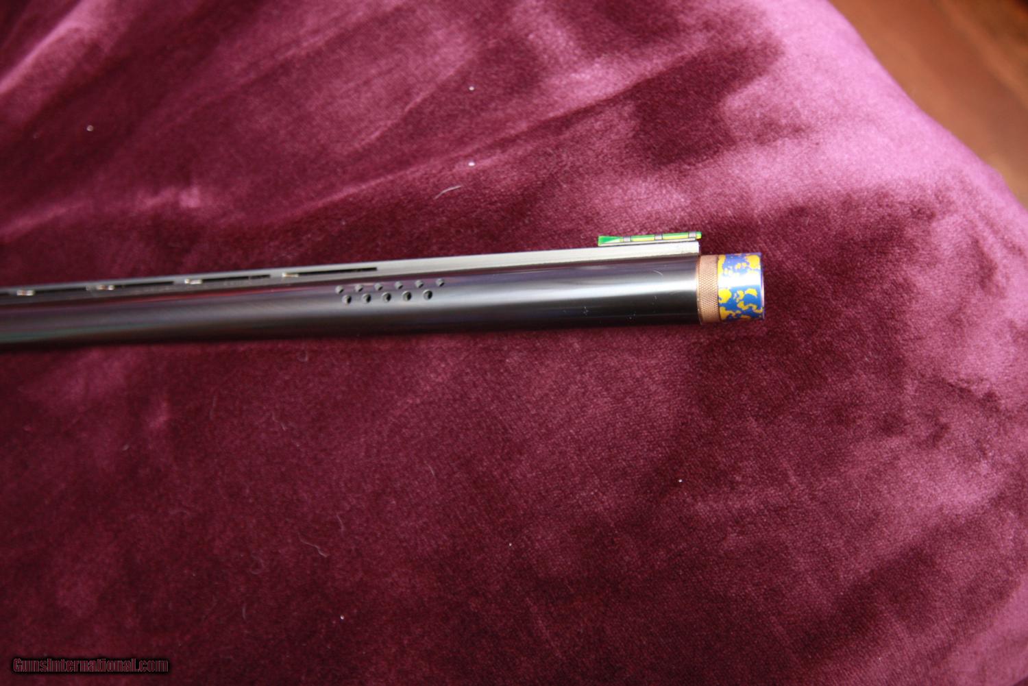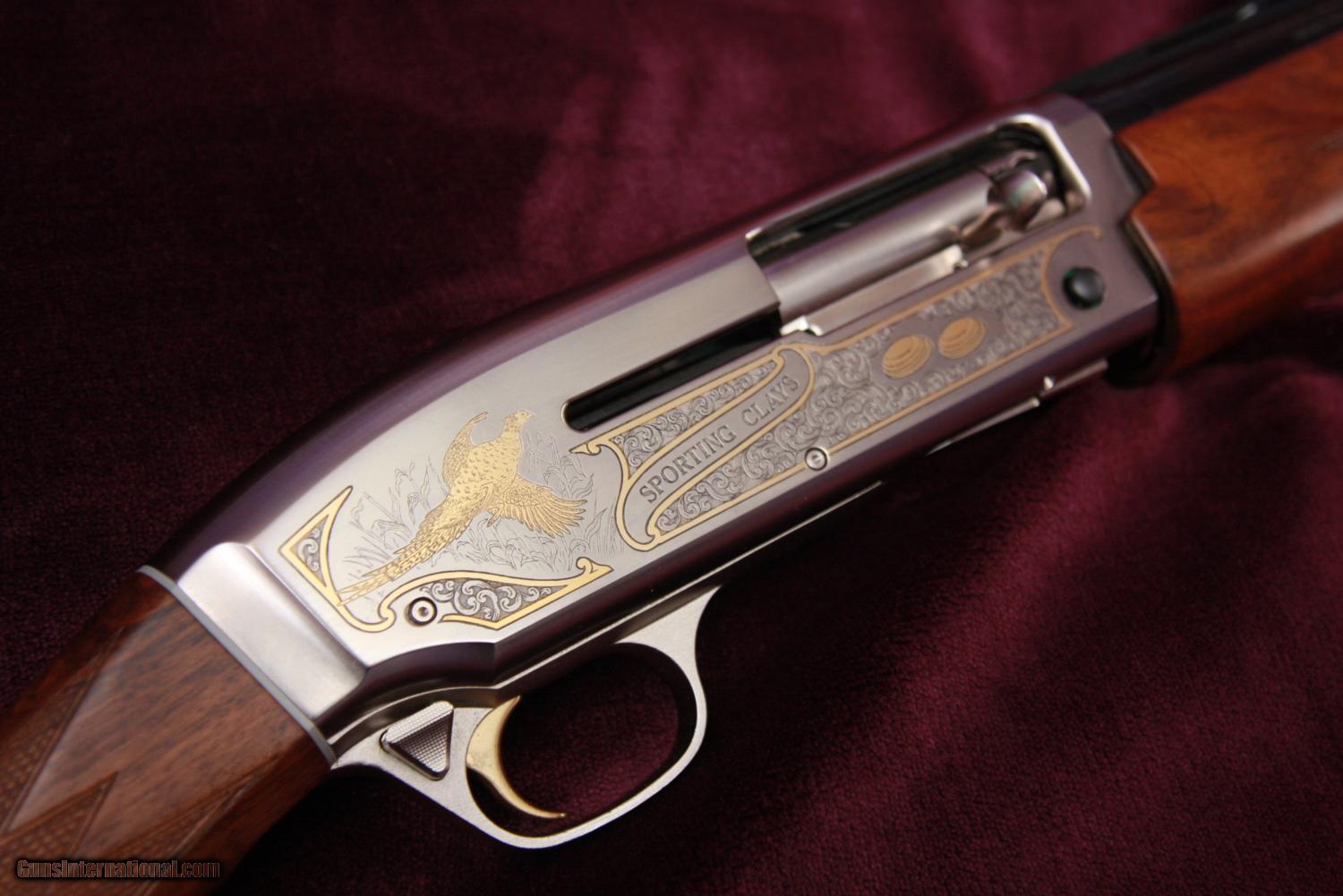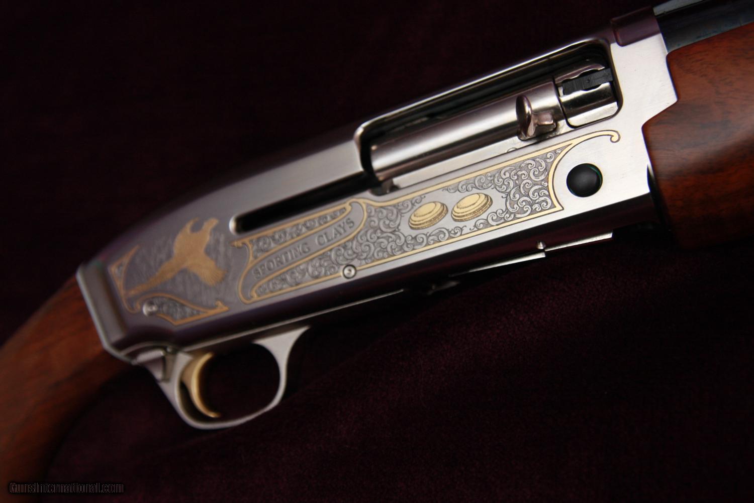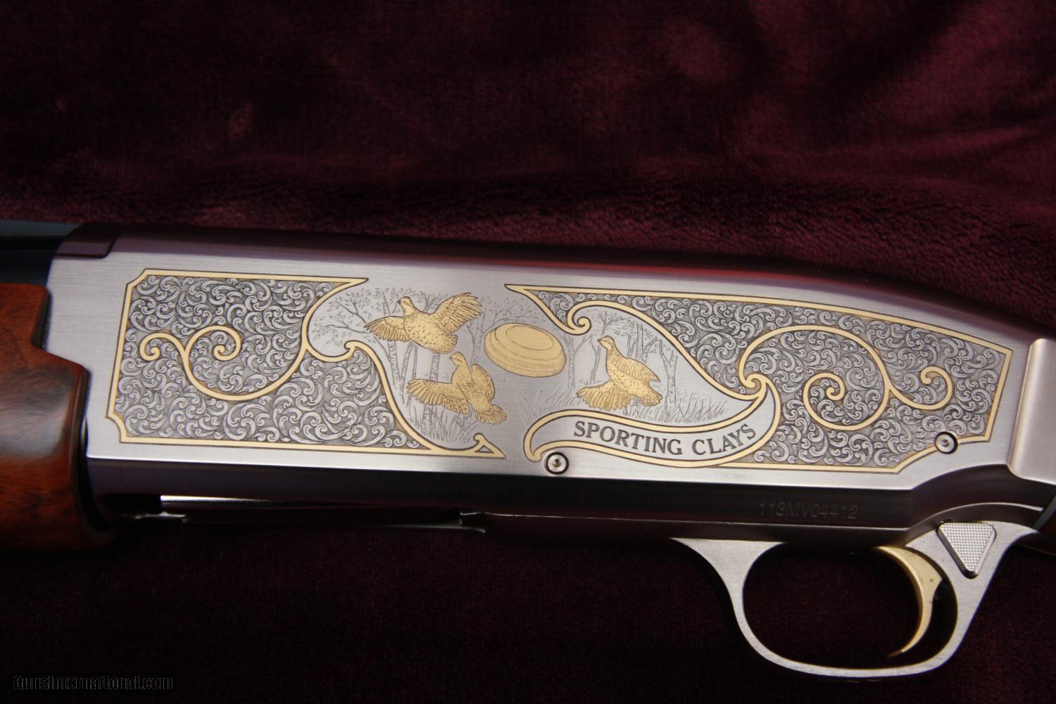 Description: BROWNING GOLD "GOLDEN CLAYS" 12 GA. SEMI-AUTOMATIC, ALUMINUM ALLOY RECEIVER "GOLDEN CLAYS" SCROLL ENGRAVING WITH GOLD ENHANCEMENTS / GOLD PHEASANT ON THE RIGHT SIDE / GOLD QUAILS ON THE LEFT SIDE ON THE SILVER RECEIVER. THE GUN HAS LOP OF 14 1/4", 1 5/8" DROP AT THE COMB AND 1 7/8" AT THE HEEL. THE GUN HAS A 30" VENTILATED RIBBED BARREL AND A GOLD TRIGGER AN IS GAS OPERATED. THIS COMES WITH 2 DIAMOND EXTENDED AND 3 INTERNAL CHOKE TUBES AND 6 BRILEY "SPLASH" EXTENDED CHOKE TUBES. THE FRONT SITE IS "HI-VIZ TRI-COMP". THE FOREARM AND BUTT STOCK ARE WALNUT WITH A SATIN FINISH. THIS GUN IS 100% ON THE WOOD AND METAL. IN ADDITION, THERE IS A $50.00 SHIPPING, INSURANCE AND TRANSFER COST ADDED TO THE SALE PRICE. IF YOU HAVE ANY QUESTIONS, PLEASE CALL 708-228-4947 SOLD |