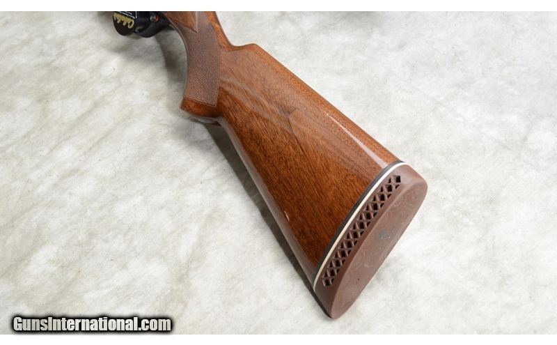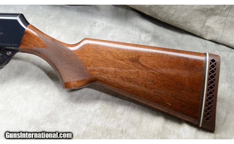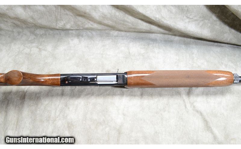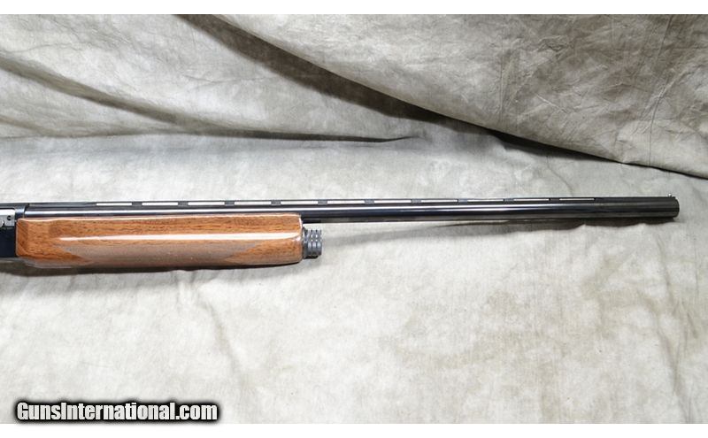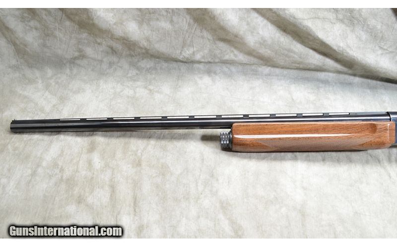 Description: An early semi-auto shotgun with nice wood, fixed choke, and soft recoil pad. Notice the unique loading port on the left side. 12 Gauge SOLD Chambers: "4+1 capacity, 3 inch chamber. Metal Condition: Good to very good. It has a bit of freckled pits on the receiver. Wood Condition: Good. A large number of shallow scratches. Bore Condition: Shiny and bright. Barrels: 28-inch Triggers: Factory trigger. Stock Dimensions: 14-1/4 inch LOP. Fore End: Well-matched walnut beavertail. Butt Pad: Ventilated soft rubber. Weight: 7 lb - 9 oz Sights: Ventilated rib with gold bead. Chokes: Fixed Modified choke. Item Location: Rogers |