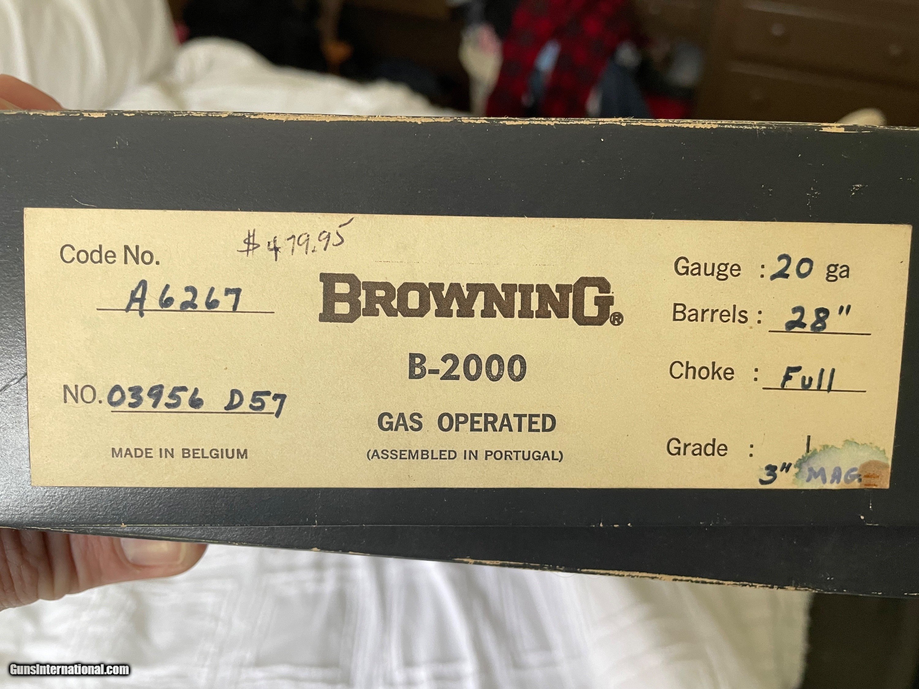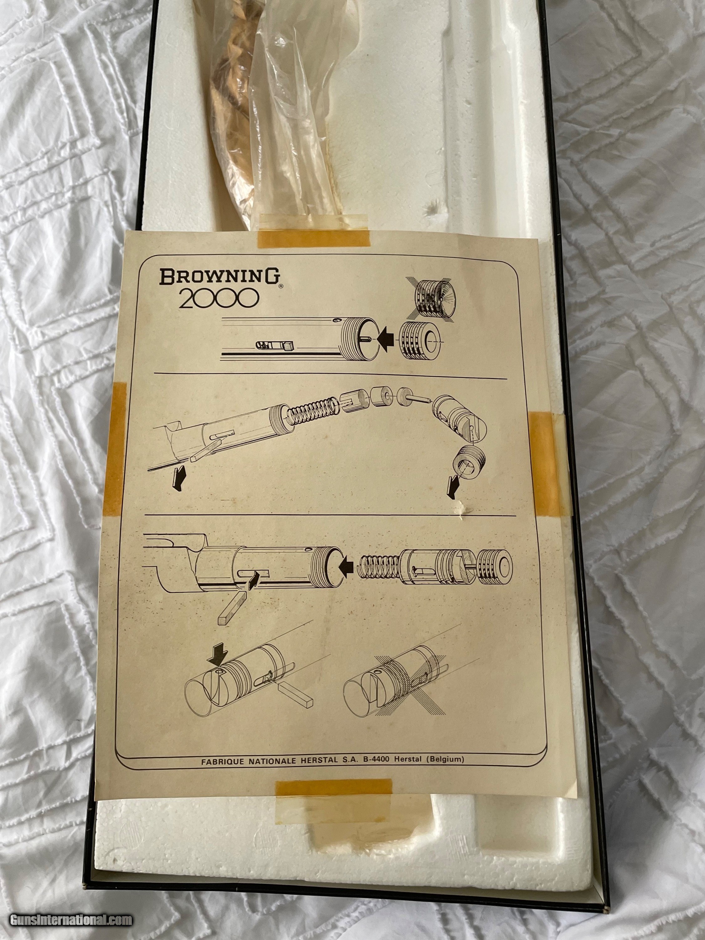 Description: Browning 2000 20 gauge in excellent condition 28 inch full choked barrel with 3in chamber . Also has original box and gas system instruction no manual $1000 shipped be sure your ffl will accept from private party if item ships and is rejected you will be responsible for any fees SOLD Shotgun Gauge: 20 Gauge Manufacturer: Browning Model: 2000 Barrel Length: 28 inches Bore: Excellent Chambers: Excellent Condition: Excellent Metal Condition: Excellent Wood Condition: Excellent Bore Condition: Excellent Barrels: Excellent Action: Semi auto Chokes: Full |