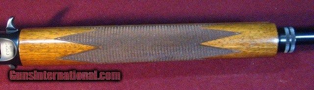 Description: Belgium Browning A-5 20 Gauge Magnum 2 barrel set manufactured in 1969. This gun features a 28" Full plain barrel and a 25 1/2" vent rib Improved Cylinder barrel both with excellent bores. The Full choke barrel with a large silver island front bead and the IC barrel with a silver front bead. Pistol grip buttstock and gold plated trigger. 14 1/8" LOP 6lb 7oz with Full choke barrel. This piece remains in nearly new condition. SOLD |