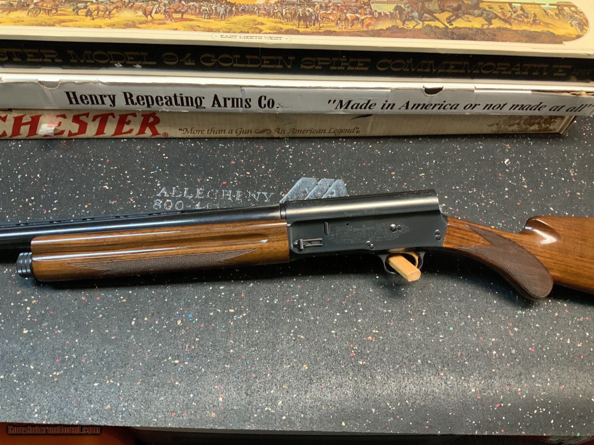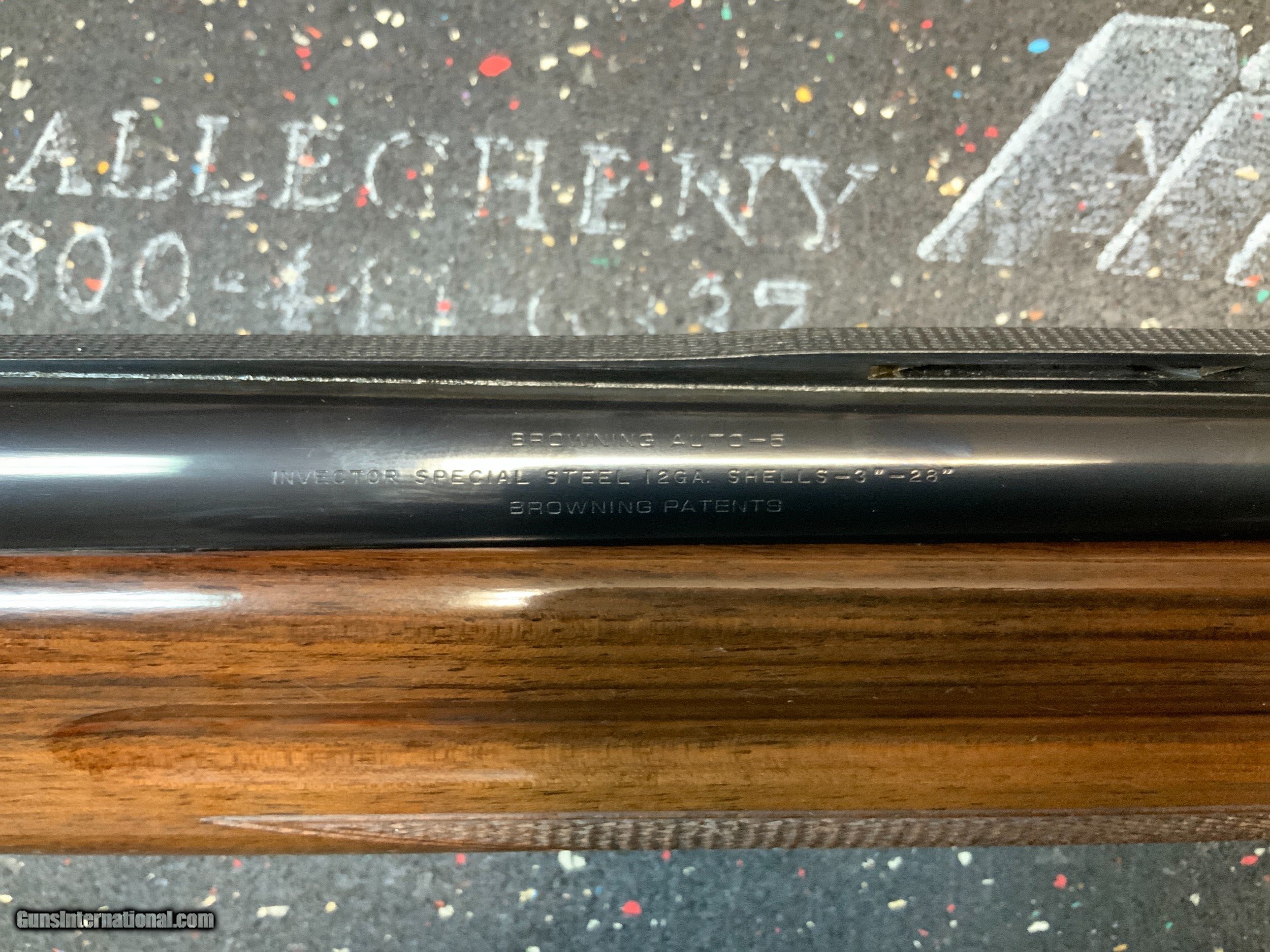 Description: Browning A-5 semi-automatic shotgun in the Magnum Twelve version. Made in Japan. This gun supports the 28 inch vented rib barrel with the 3 inch chambering and interchangeable chokes. Round knob buttstock with 14 1/2 inch LOP. Very lightly used if at all, this estate gun show no wear at all to the bluing with the wood showing a few light safe and handling marks. Pictures show what you get. Please add $60 for shipping and insurance to your FFL. if your FFL dealer will not except from a private party please add $20 to the cost of shipping to cover my FFL dealer transfer fees. SOLD Shotgun Gauge: 12 Gauge Manufacturer: Browning Model: A-5 Magnum Twelve Barrel Length: 28” Condition: Excellent Metal Condition: Excellent Wood Condition: Very Good Bore Condition: Excellent Action: Semi-Auto LOP: 14 1/4 inch Rib: Vented Chokes: Invector |
