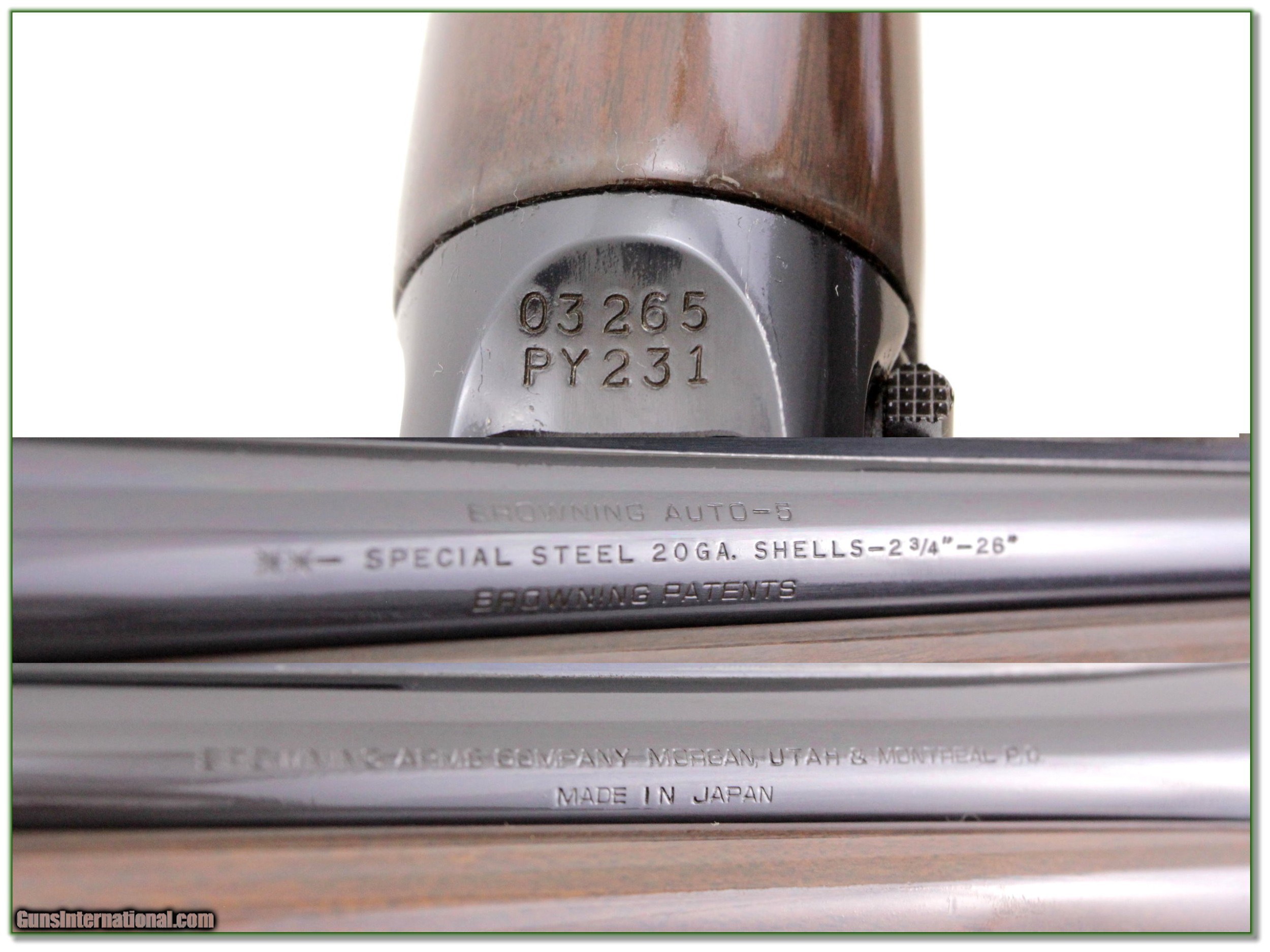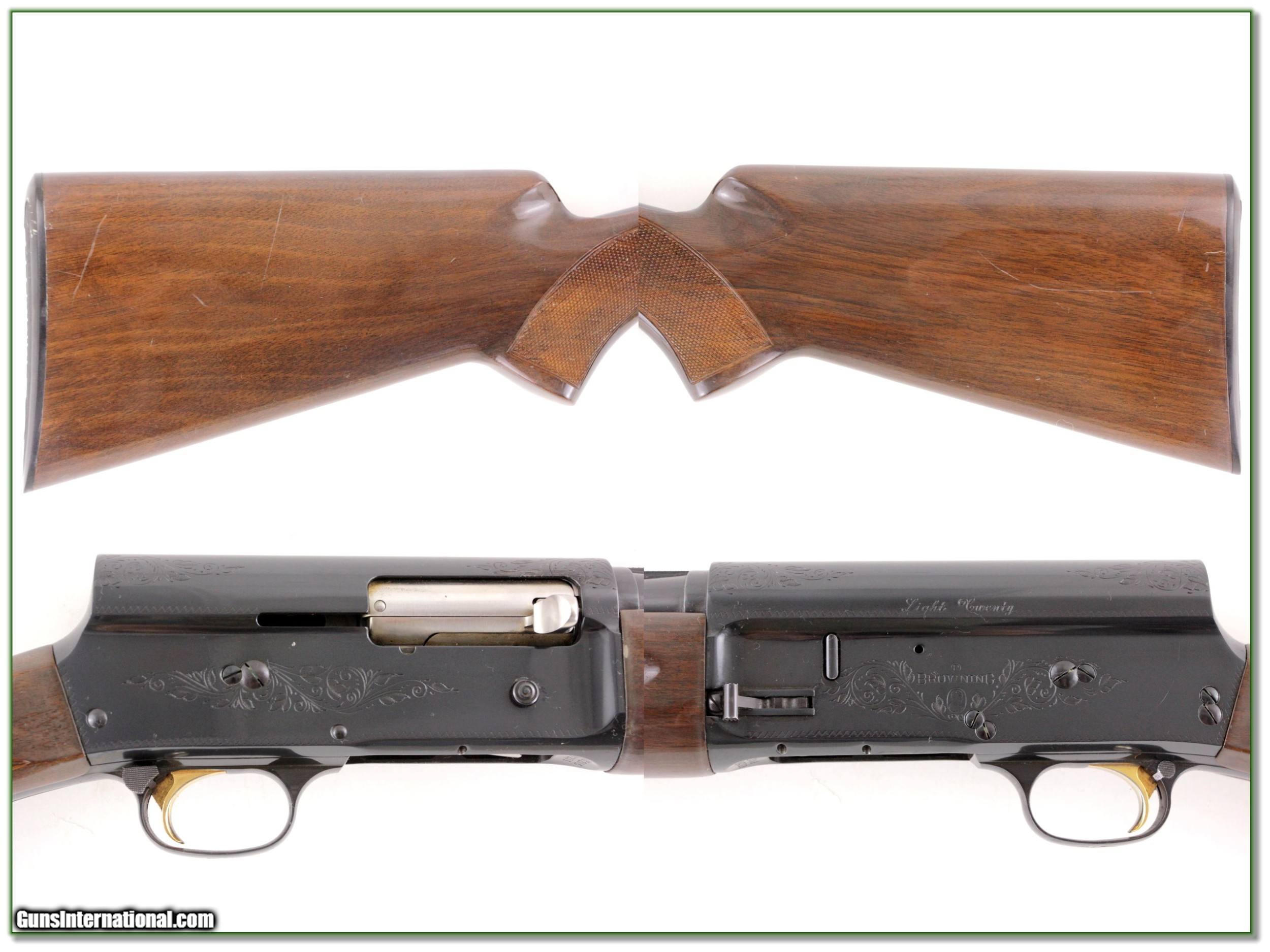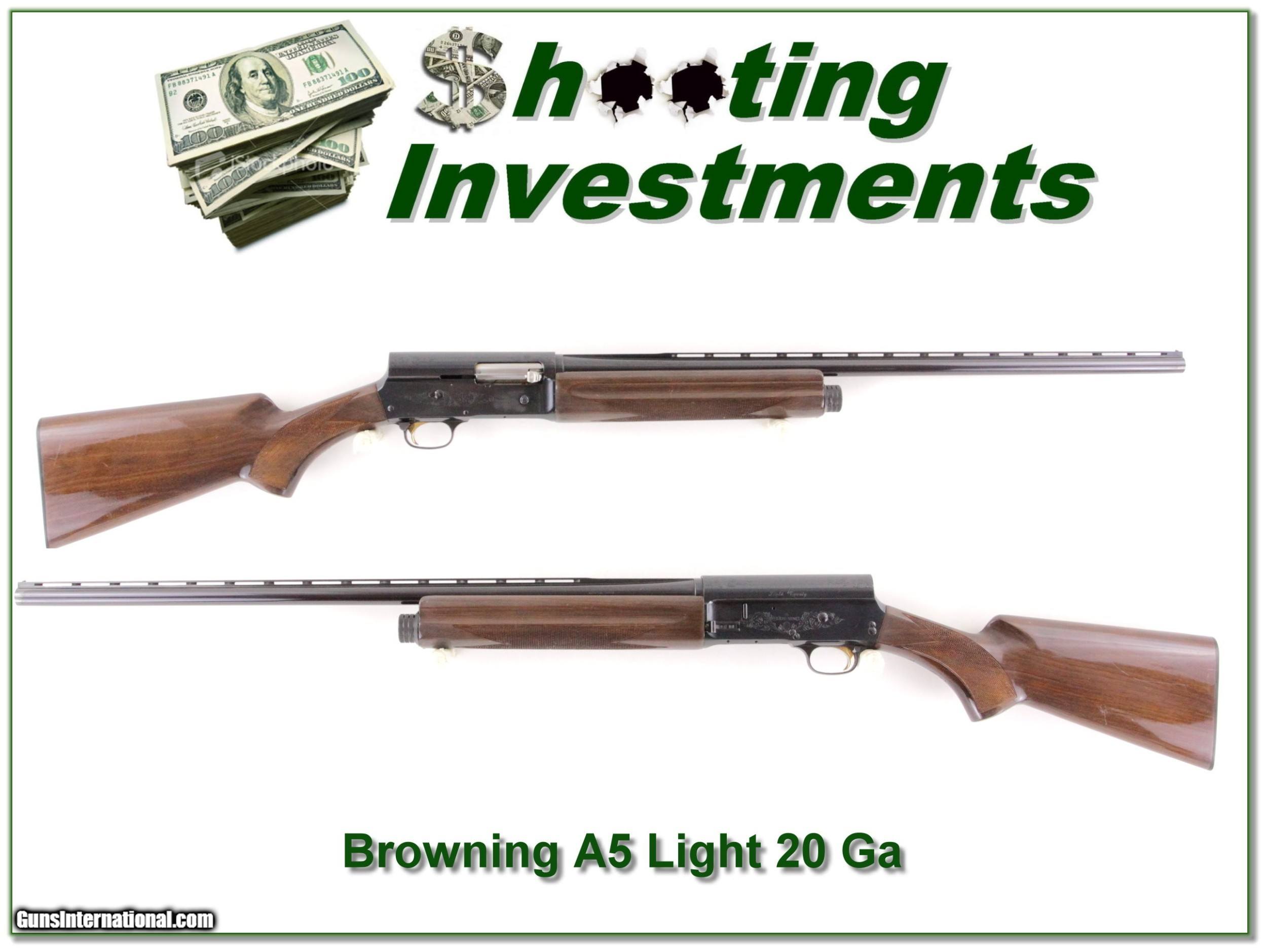 Description: This is an excellent condition Browning A5 Light 20! It has no edge or recoil wear and the wood just a few minor marks. It is a Japan made A5 and has a 26in Vent Rib IC barrel. It will make a classic field gun and they just don’t make them like this anymore! Shipping with insurance is $39. Please email me with any questions or larger pictures. (Consign your quality firearms with Shooting Investments for only 12%! Let me know if you have any you would like to sell!) 19-1508 Payment: Payment is by Money Order, Cashiers Check or Personal Check. I can now also accept MasterCard and Visa with a 3% convenience fee. PayPal can be used for some items but never firearms. Please let us know if you would like to pay via PayPal. Shipping: The shipping charge will be listed in each description. It is $39 for most long guns and $29 for most handguns. Some heavy guns or those insured for over $2000 will be higher. Shipments to Alaska and Hawaii are higher because air shipment is required. Most firearms are shipped on Tuesday and Thursday and usually in 5 days of receipt of payment. We package all shipments carefully and insure them. For long guns you can purchase a new Plano case for $19. They now cost us $22 when buying 100 at a time. Optics are shipped Priority Mail and most other non-firearm shipments are shipped First Class. Returns: Our return policy is simple. If for any reason you are not pleased with your purchase, you may return your item for a full refund of purchase price. Ammunition cannot be returned. It is important to us that you are happy. Guns cannot be fired or dissembled before returning them and they must be returned in the same condition as received. Notification of a return must occur with-in 3 days of receipt at your dealer. Shipping, convenience and dealer fees are not refundable and are the responsibility of the buyer. Lay-a-way: If needed, we offer a 60 day lay-a-way option on most firearms. It is 1/3 now, 1/3 in 30 days and 1/3 in 60 days. Lay-a-way firearm sales are final and if not completed the first payment cannot be returned. Consigning your firearms with Shooting Investments: We will help you get top dollar for your firearms. While most local guns shops charge 20% or more, our fee is only 12% with a minimum of $75. At your local gun shop it might take months to sell. Selling on-line provides instant access to thousands of interested buyers. You won’t find any other on-line dealer willing to sell your firearms for only 12% or listing every gun on 3 separate s. Selling through an House typically costs the seller 15% and the buyer an addition 15% (so 30%) and you have to wait several months to sell and longer to receive funds. If properly priced, we will sell your firearms in a few weeks. Send us an email or give us a call and we’ll explain how easy it is for you to get top dollar. Trading: Trading for use is really just buying your gun to re-sell. If you have a gun you want to trade, please email a picture and we will let you know what we can give or it. You will always get more if we sell it for you on consignment. Help for California Buyers: We are happy to ship to California. It is the buyer’s responsibility to make sure any item you buy is legal in your state. We are also happy to help with your purchase of a firearm from someone other than us. If you see a gun you would like to buy but the seller can’t or won’t ship to California they can ship to use and we’ll then ship it to your California dealer. The cost for this service is only $30 + shipping. Let us know if we can help! SOLD |