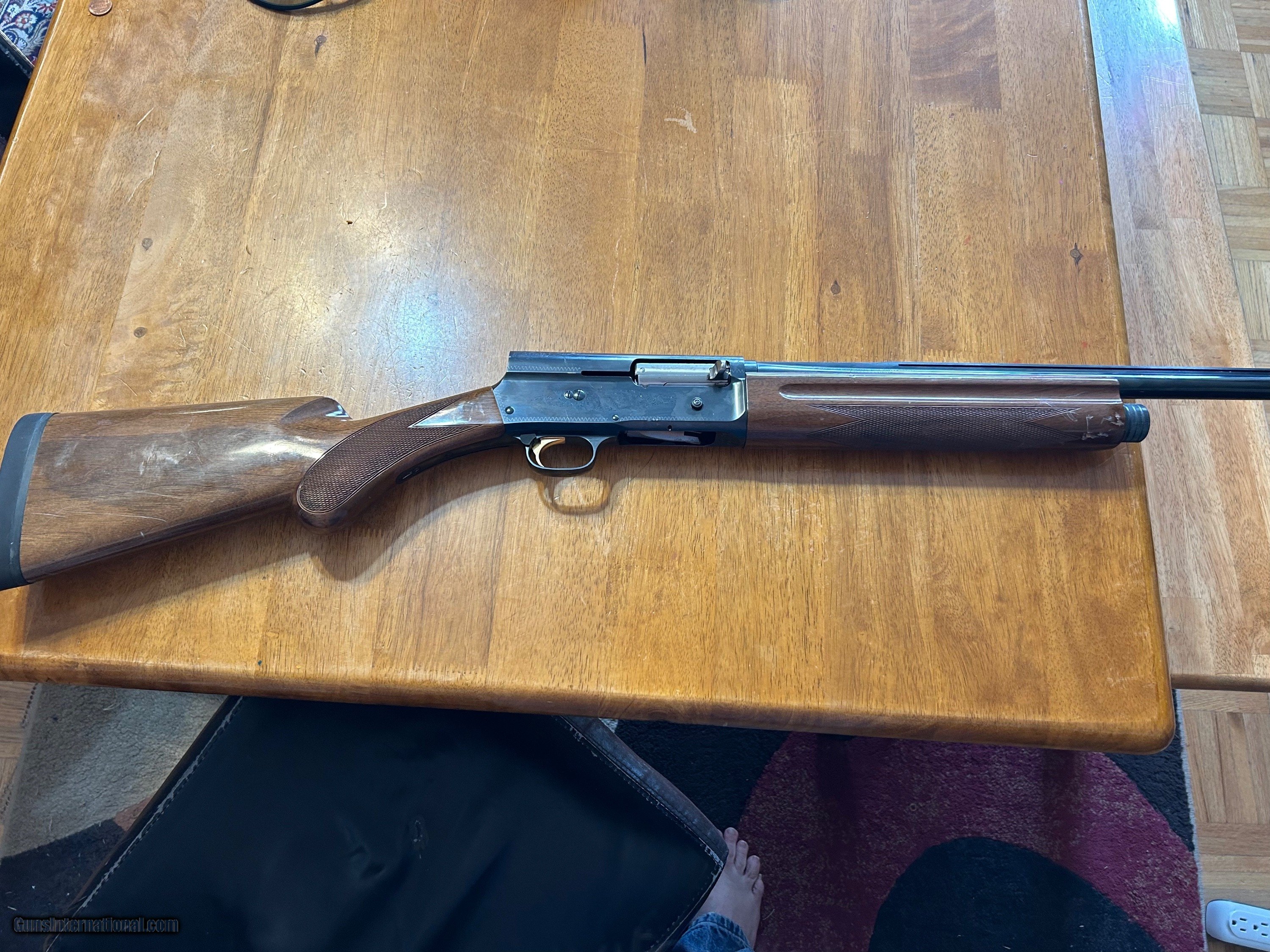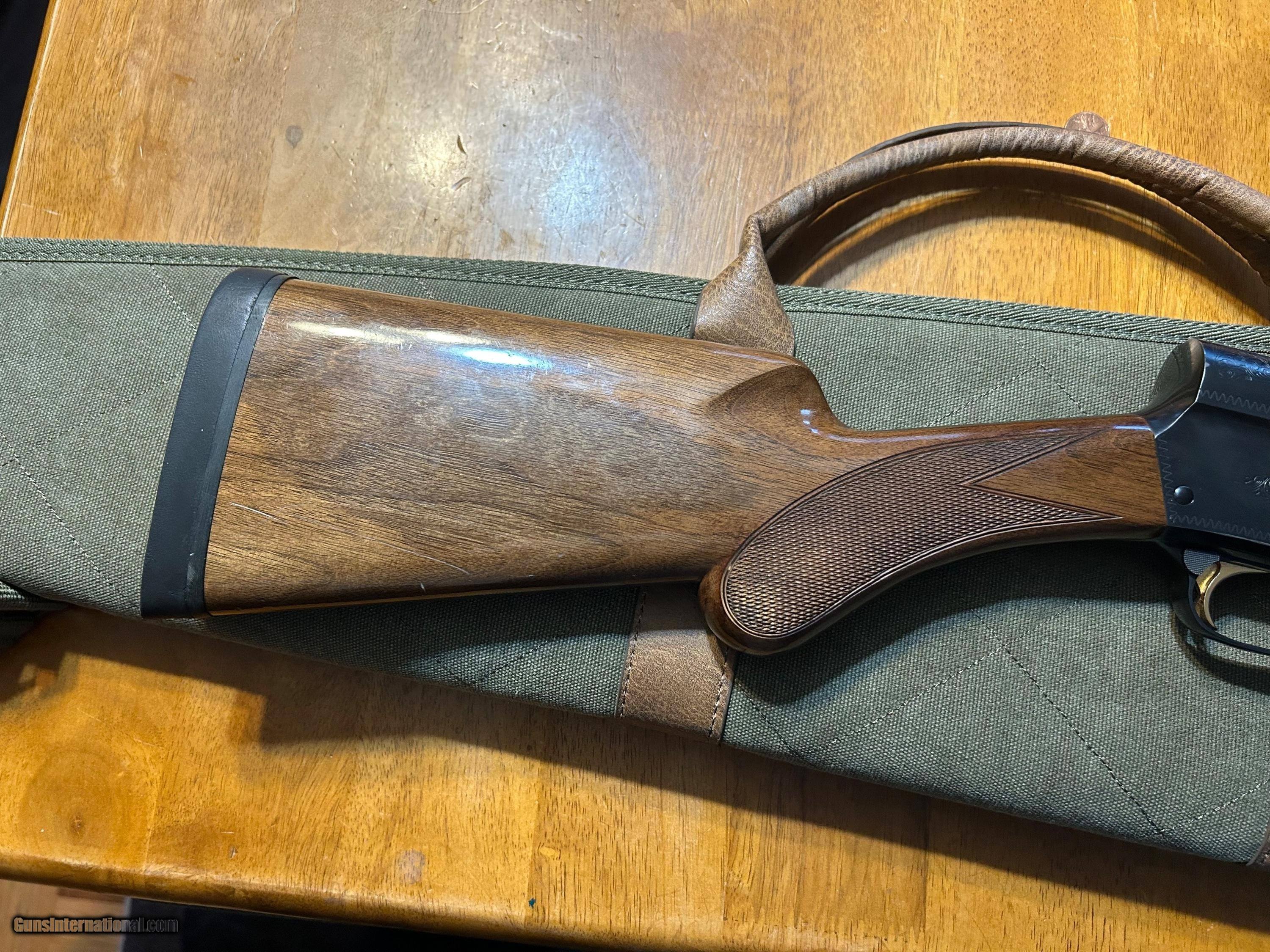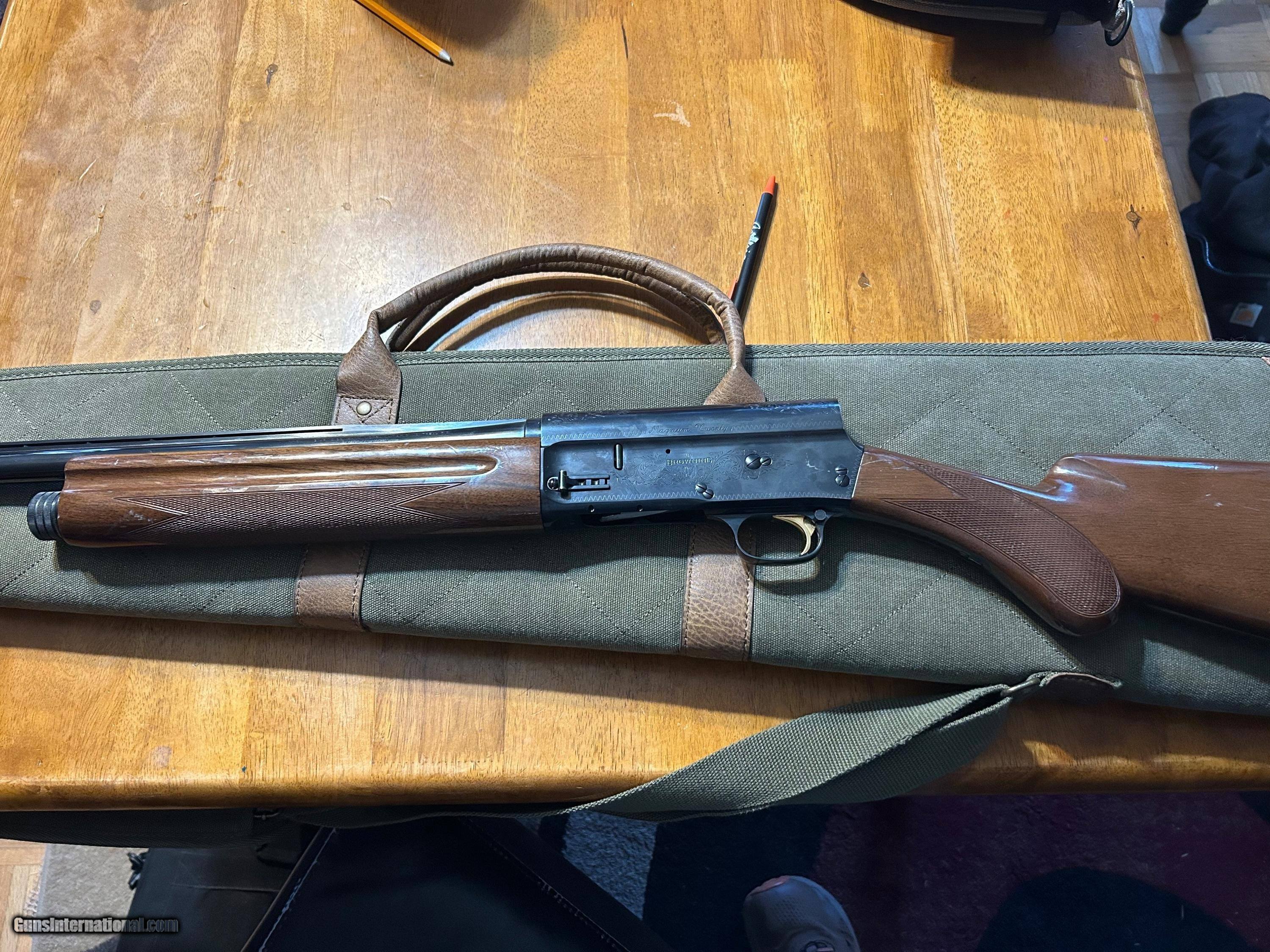 Description: For sale is a Browning A5 Magnum Twenty, 20 gauge shotgun. I have had this gun for 15 years personally and it been shot but rarely in that time. It is currently set up for light / standard loads and has been tested for such with no problems. This is a Japanese made gun with a 27 1/2" barrel and 13 1/2" length of pull. I believe the stock was shortened at some time as the LOP is 13 1/2" that includes a 1" KickEez recoil pad. This gun is in excellent mechanical shape. I have included pictures to show scratches in the wood and one screw that was damaged at some point. Overall, this is an excellent working gun with only cosmetic flaws. Shipping will be $50 and must be shipped to an FFL. SOLD Shotgun Gauge: 20 Gauge Manufacturer: Browning Model: A5 Serial Number: 38238 NY161 Barrel Length: 27 1/2 Condition: Good Metal Condition: Good Wood Condition: Fair Bore Condition: Excellent Action: Semi auto Triggers: Single (gold) |