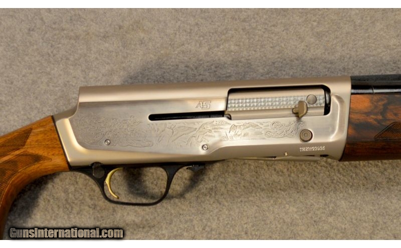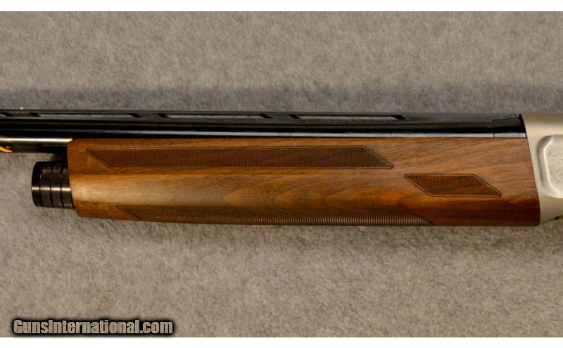 Description: This is a new Browning A5 Ultimate in 12 gauge with a 28” barrel. It has a strong, lightweight aluminum alloy receiver, satin finished with brushed sides, an engraving pattern showing pheasants on the left side and mallards on the right side, surrounded by intricate scroll. The 28”barrel features a lightweight profile, flat ventilated rib, and a gloss blued finish. The action is the recoil operated Kinematic Drive and is ultra-reliable and cycles a wide range of loads. The stock is Grade III walnut with a gloss oil finish, close radius pistol grip, sharp 22 lines-per inch checkering, and is shim adjustable for length of pull, cast and drop. It also features the vector Pro lengthened forcing cone, three Invector-DS choke tubes (F,M,IC), a fiber optic front sight with mid-bead, an Inflex II Technology recoil pad, one 1/4" stock spacer and one 1/2" stock spacer plus lengthened screws for total adjustment of 3/4", and an ABS case. SOLD Manufacturer: 2014 Caliber Info: 12 Gauge Chambers: 3” Metal Condition: New. Wood Condition: New. Bore Condition: New. Barrels: 28” Triggers: Gold plated alloy. Stock: Grade III walnut with gloss oil finish, close radius pistol grip, and sharp 22 lines-per inch checkering. Stock Dimensions: 14 ¼” LOP. Fore End: Grade III walnut with gloss oil finish, and sharp 22 lines-per inch checkering. Butt Pad: Inflex Technology recoil pad. Weight: 6 ¾ lbs. Sights: Fiber optic front with mid bead. Chokes: Invector-DS system. Extras: New in box. Item Location: Glendale, AZ |