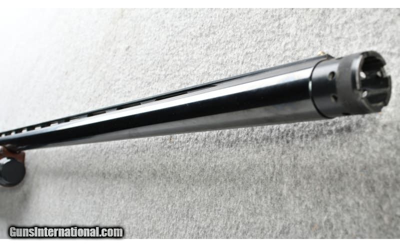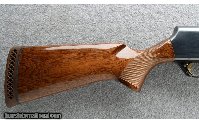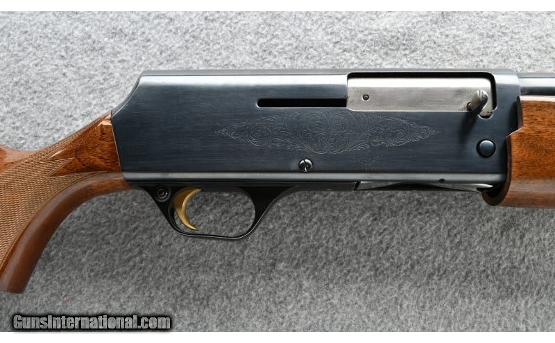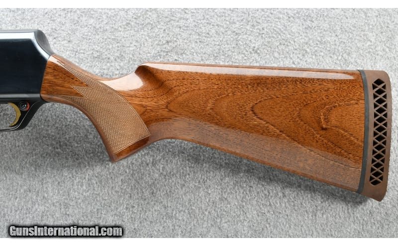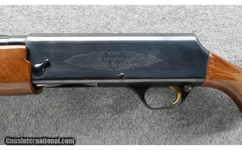 Description: The A-500R was introduced in 1987 and discontinued in 1993. Made in Belgium and assembled in Portugal. This one was made in 1988 and appears to have been used very little 12 Gauge SOLD Chambers: 12 Gauge 3" chamber short recoil operated semi-automatic shotgun Metal Condition: "Very good, shows little use Wood Condition: "Good, with the exception of a small chip-out at the wrist Bore Condition: "Very good, bright Barrels: 30" Vented rib Triggers: Gold washed Stock Dimensions: 14" LOP Fore End: Checkered walnut with grasping grooves Butt Pad: Browning vented rubber Weight: 8 lbs. Sights: Metallic front bead Chokes: Invector extra full extended Item Location: Grand Junction, CO |