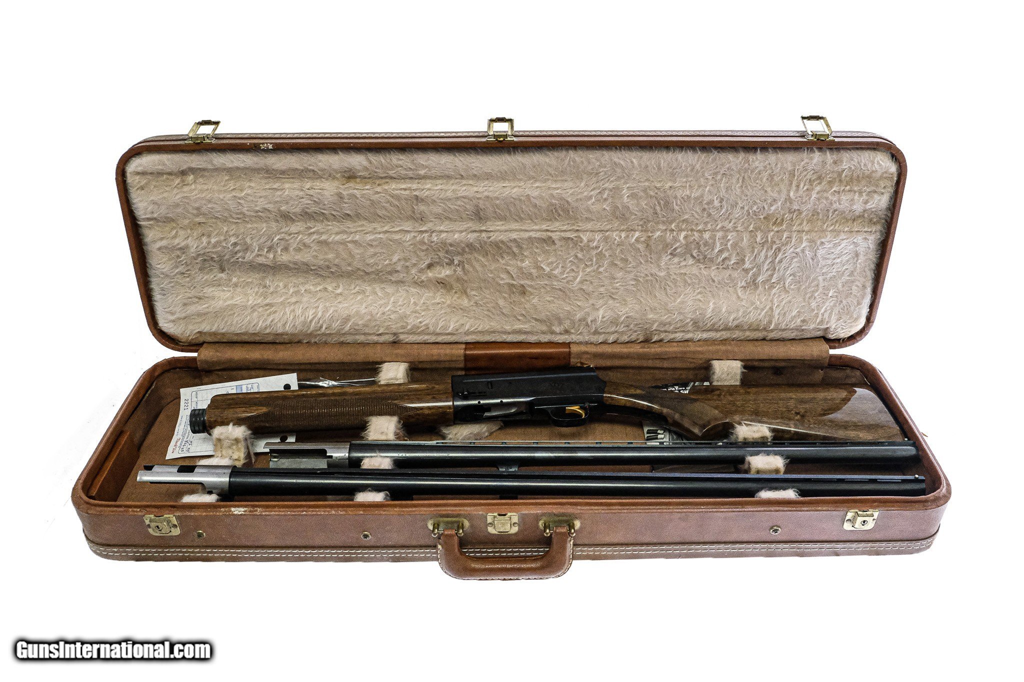 Description: Browning - Auto 5, Light 12, Factory Two Barrel Set, Made In Belgium, 12ga. 26" SK & 28" FULL. Square knob long tang, highest quality 1974 Belgian manufacture, vent rib, 14 ¼” to a factory Browning butt plate, gun remains 99% collector grade condition and is possibly unfired, includes factory two barrel case, includes owners’ manual, available for immediate delivery. S & H - $50.00. Inv: 75497 $3,250.00 SOLD |