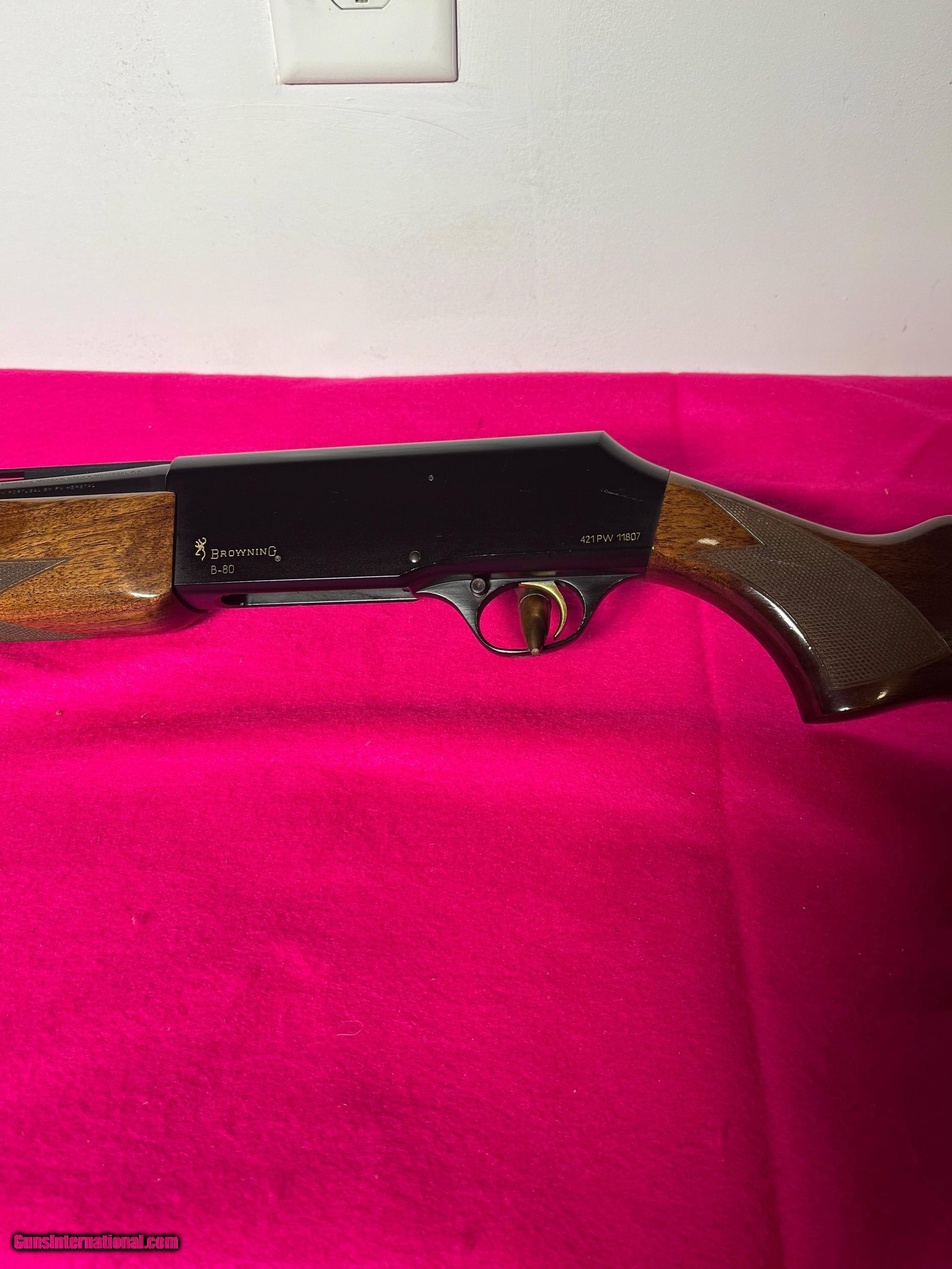 Description: Browning B80 in 12 gauge 28" bbl with IC choke tube 3 inch magnum and extra 26"bbl with IC choke tube 2 3/4 chamber.Extra choke tubes,sk lead/cyl steal,One mod and one full plus choke tube wrench , instruction manual. Excellent condition all around. SOLD |