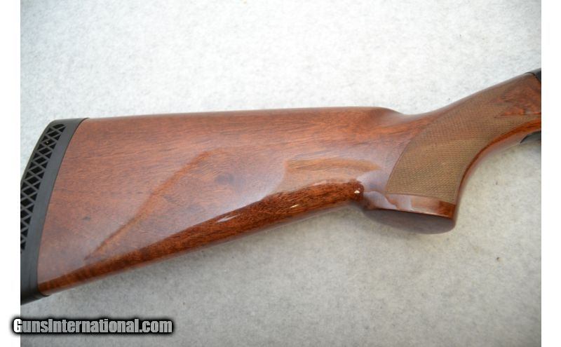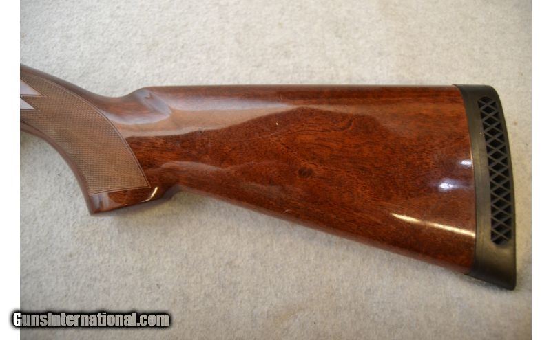 Description: Overall condition is fair to good on this shotgun. While the bluing on the metal is generally in good condition, there are some very small spots on the barrel and rib with surface corrosion. While the wood is also in pretty good condition there is evidence of use in the form of minor dents, dings, and scratches. Bore is bright with no deformities. SOLD Caliber Info: 12 Gauge Chambers: 3 1/2" Shells Metal Condition: Fair to good. Wood Condition: Good. Bore Condition: Excellent. Barrels: 28" Gloss blued with ventilated rib. Triggers: Wide matte gold colored with smooth surface. Stock: Gloss finished walnut with diamond pattern checkering. Stock Dimensions: 14 3/4" LOP Fore End: Gloss finished walnut with wrap around diamond pattern checkering. Butt Pad: Ventilated black rubber pad with the Browning name on it. Weight: 7 1/2lbs Sights: White front bead. Chokes: Barrel is threaded for Invector Plus chokes. A single modified choke tube is included. Item Location: Green Bay, WI |