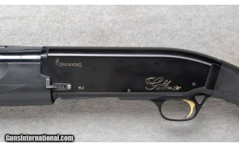 Description: This Browning Model Gold Hunter is a right hand semi-auto shotgun in 12 Ga. It has a 28 inch barrel with a ventilated rib. A white bead front sight. With a 3.5 inch chamber it has Invector-Plus choke and comes with one choke tube in the gun. The butt stock is a checkered grip black polymer pistol grip. The forearm is a checkered grip black polymer with finger grooves. Made in Belgium. 12 Gauge SOLD Chambers: 3.5 inch. Metal Condition: Good. Shows a some minor use marks. Bore Condition: Shiny. Barrels: 28 inch barrel with a ventilated rib. Stock Dimensions: LOP 14 1/4 inches. Fore End: Checkered grip black polymer with finger grooves. Butt Pad: Browning black rubber recoil pad. Weight: 8 lb. 4 oz. Sights: White bead front. Chokes: Invector-Plus Choke. Comes with a Kicks Modified choke tube in the gun. Item Location: Richfield, WI |