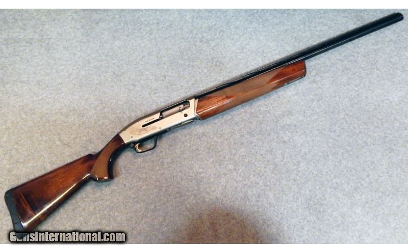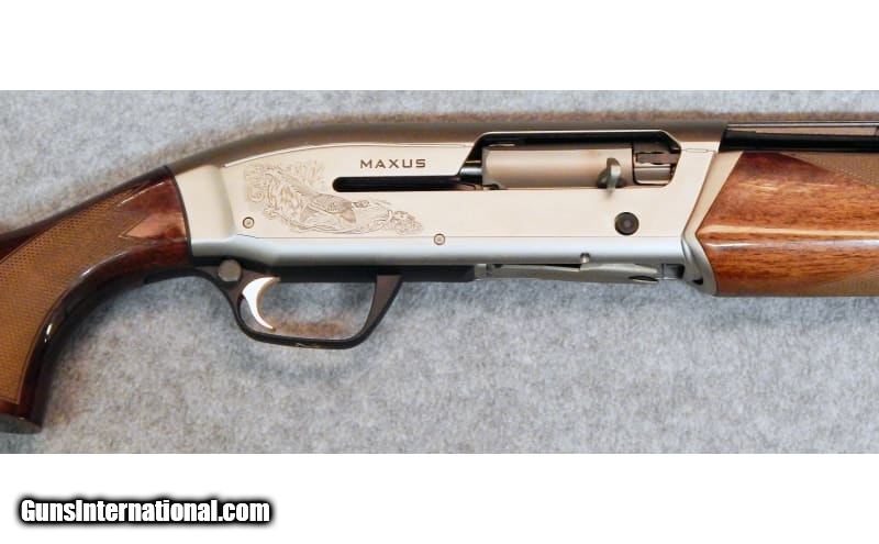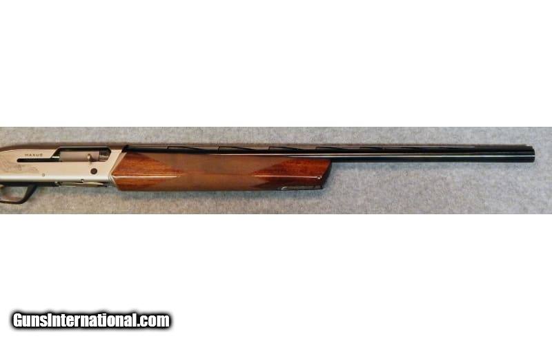 Description: Browning ~ Maxus ~ Chambered in 12 Gauge. Is a gas operated semi-auto field length shotgun with a 4 + 1 capacity tubular magazine, and in a lavish "Hunter" configuration. Features a 26" blued barrel paired with a fixed front bead sight, satin nickel receiver, and walnut furnishings. Comes with factory box and chokes. 12 Gauge SOLD Chambers: 12 Gauge. Metal Condition: Very good condition. Wood Condition: Very good condition. Bore Condition: Good condition. Triggers: 8 pounds. Stock Dimensions: 14.25" LOP. Fore End: Walnut. Butt Pad: Rubber. Weight: 7 pounds Chokes: "Full, modified, improved cylinder. Item Location: Acworth, GA |