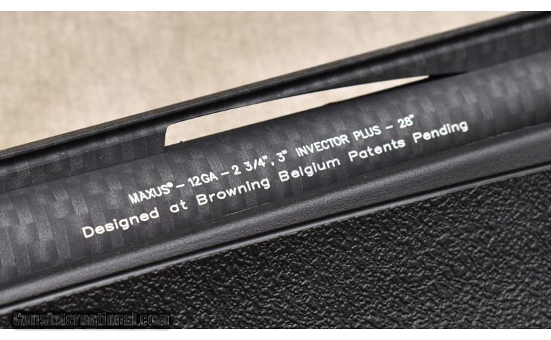 Description: This Browning Maxus 12 gauge is in very good condition with minor handle marks. A carbon fiber look covers the top and bottom of the receiver, the barrel and Composite stock of the new model Maxus Sporting Carbon Fiber. The very appearance, look and feel of this new Maxus model will win you over if you are looking for a light, very responsive shotgun with all the incredible features of the Maxus. 12 Gauge SOLD Chambers: 4+1 Metal Condition: Excellent. Wood Condition: Excellent. Bore Condition: Bright and shiny. Barrels: 28 Inches. Triggers: Factory gold plated. Fore End: Black composite. Weight: 7lbs 2 oz Sights: Vented rib with HiViz TriCom front sight and white mid-bead. Chokes: 5 Chokes included. Item Location: Rogers |