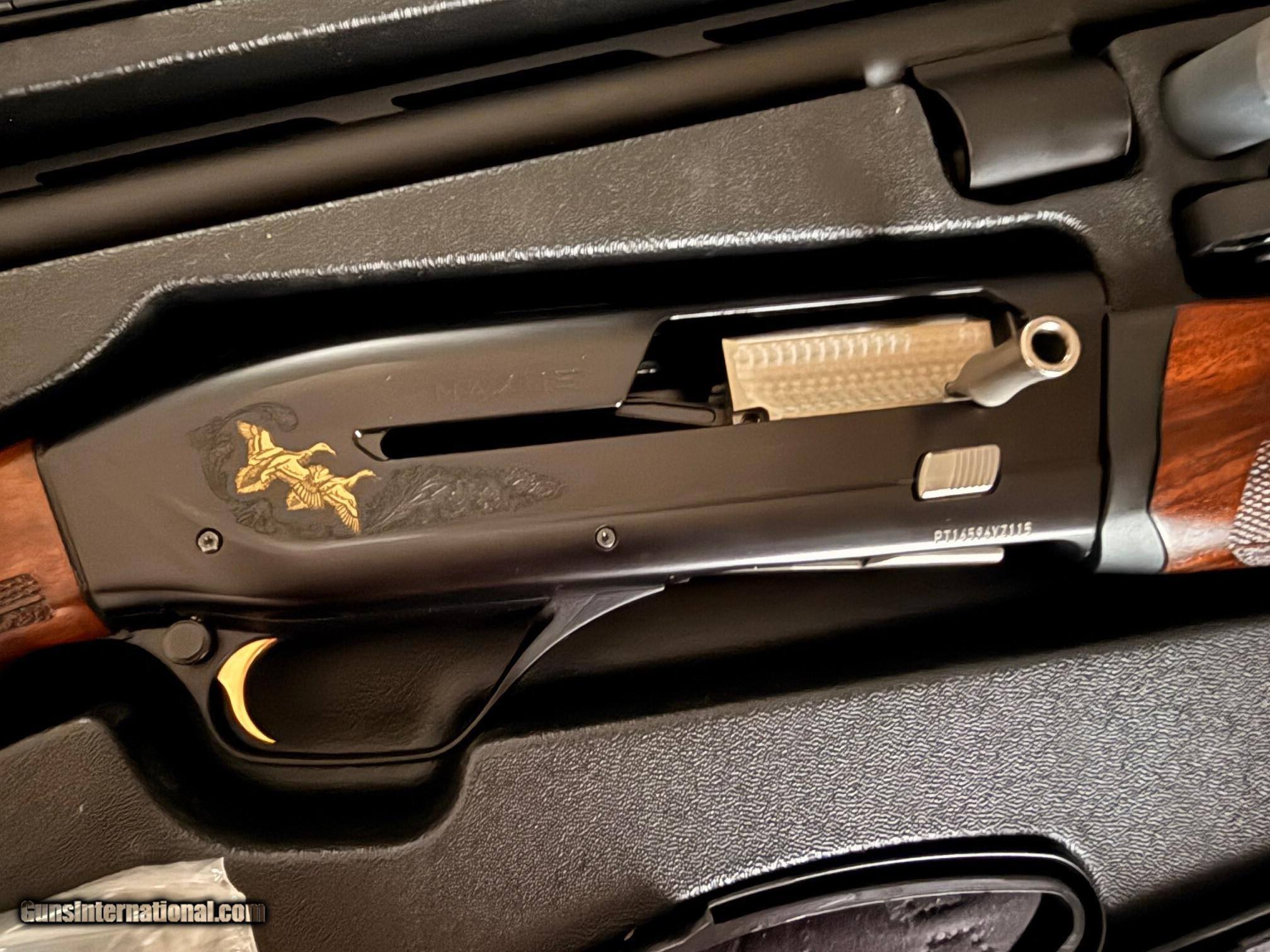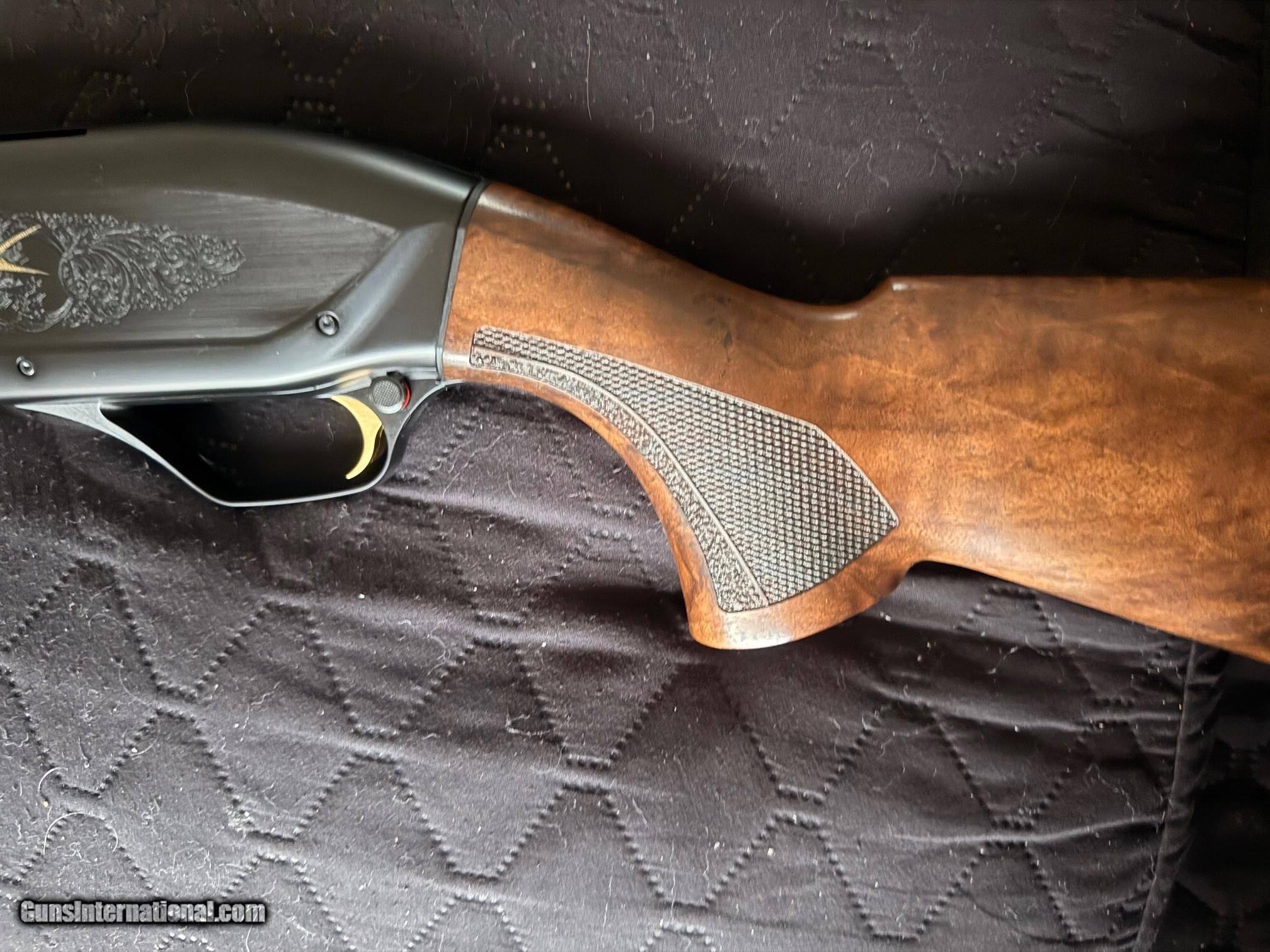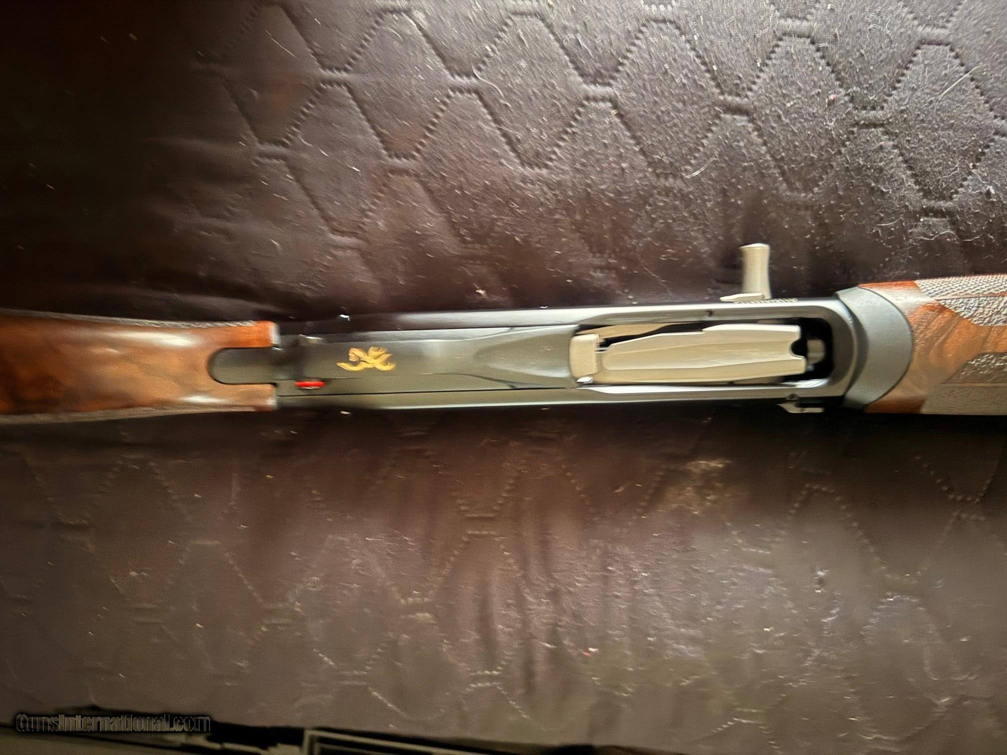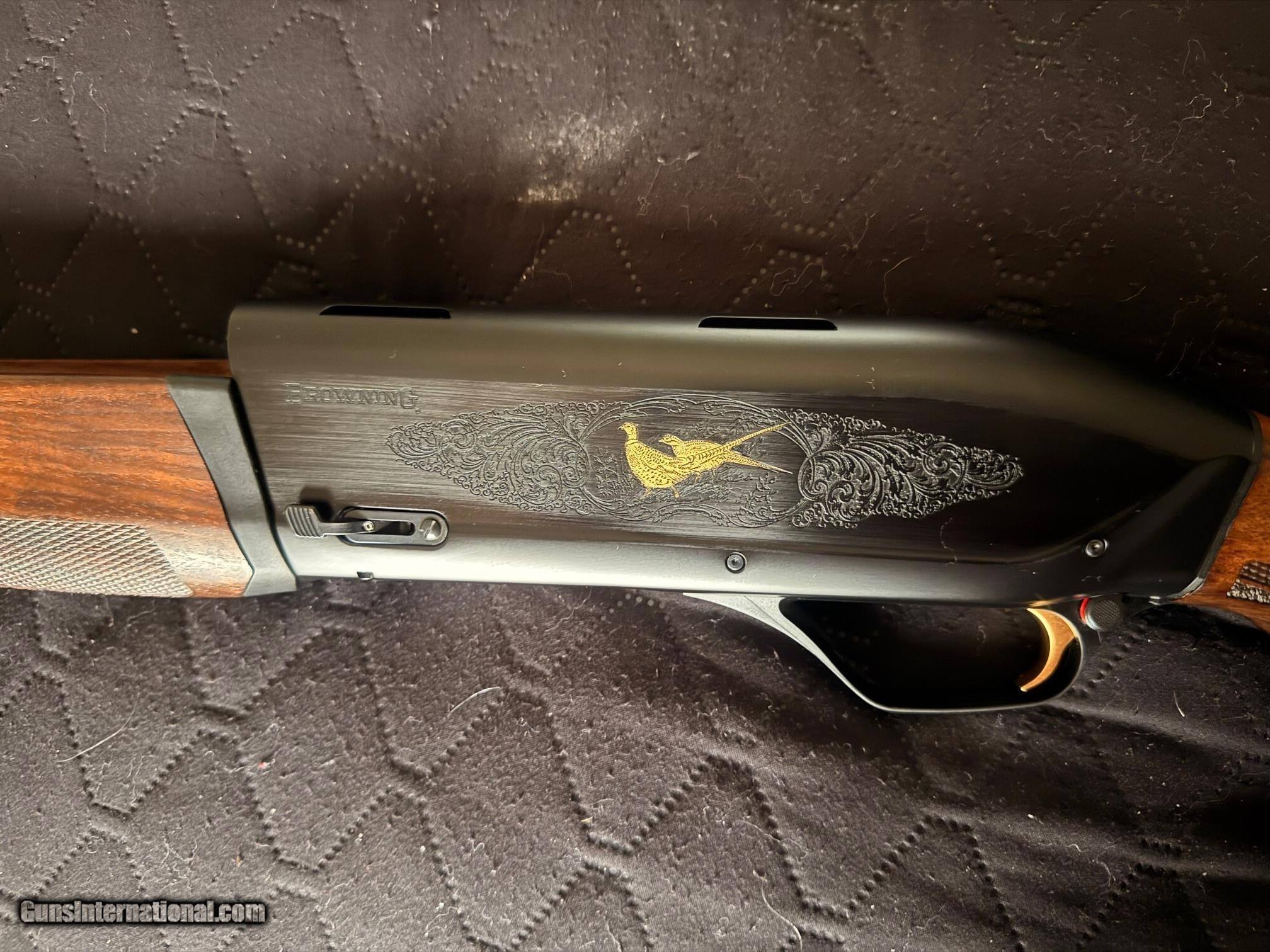 Description: Overview Nothing beats a fine Browning shotgun for a day in the field, making the Maxus Black Gold an ideal shotgun to add to your collection of fine autoloaders. Featuring Grade III Turkish walnut with an oil finish, a beautifully engraved receiver with gold waterfowl and pheasant engravings, an Inflex II recoil pad, and three Invector-Plus choke tubes, the Maxus II Black Gold stands on its own from other hunting shotguns. From the day the original Maxus was released, it promised to be the most reliable autoloader available — to say that it has lived up to that expectation is an understatement. The perfectly tuned Power Drive Gas System was designed to function reliably across the ammunition spectrum and reduce felt recoil, making the gun more comfortable to shoot and allowing you to get back on target faster to score a coveted double. Like the original Maxus, the Maxus also features the Lightning Trigger, which has the fastest lock time of any autoloading shotgun. Comfortable ergonomics, trim dimensions, excellent balance that promotes a smooth swing, and many innovative features contribute to its status as the field, marsh, and range shotgun. Maxus Black Gold Features