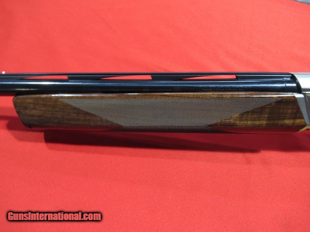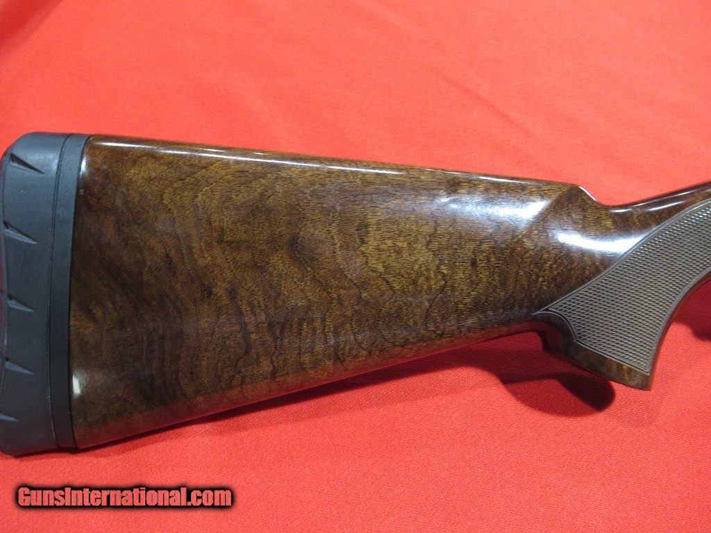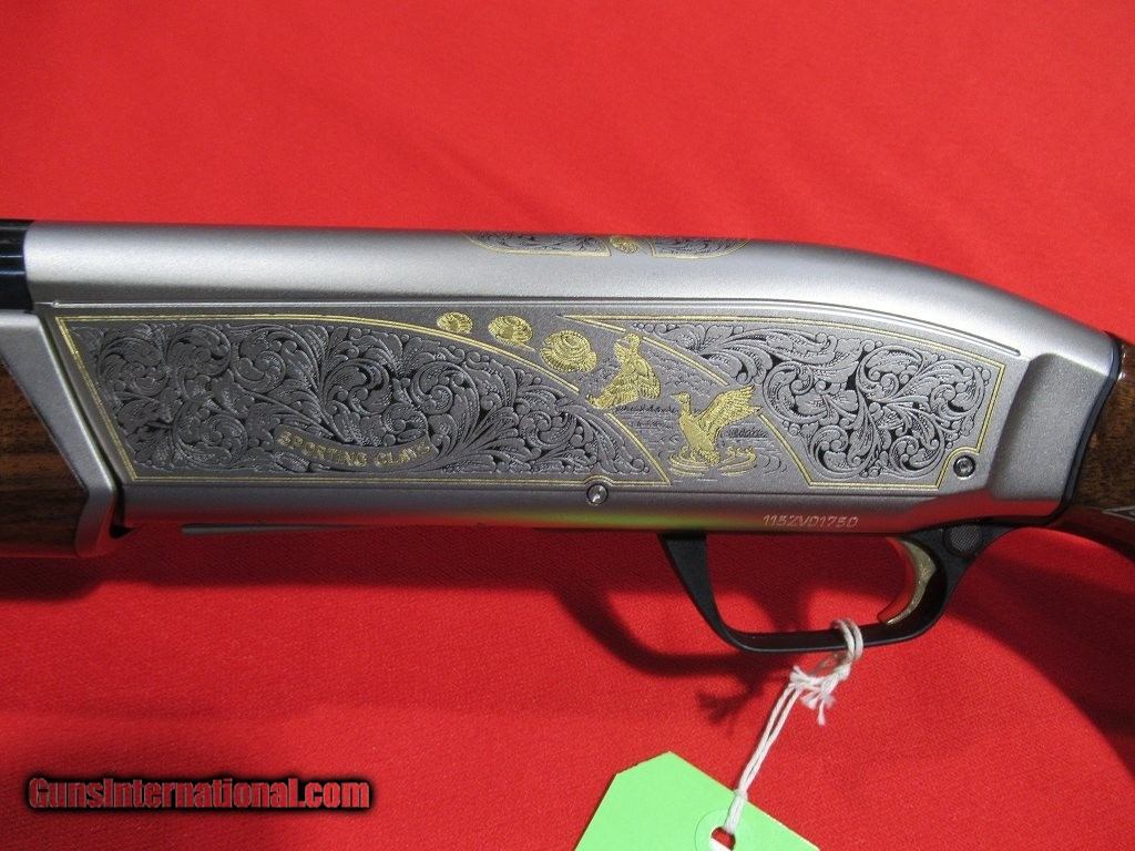 Description: Lightweight aluminum alloy receiver with a satin nickel finish, gold enhanced engravings with birds transforming into clay targets on both sides of the receiver, the Power Drive gas system cycles light 2 3/4" target loads to 3" magnum field loads, grade III walnut stock with a high gloss finish, shims to adjust drop & cast as well as LOP, HiVis fiber-optic front sight. Comes with a factory case and five choke tubes. SOLD |