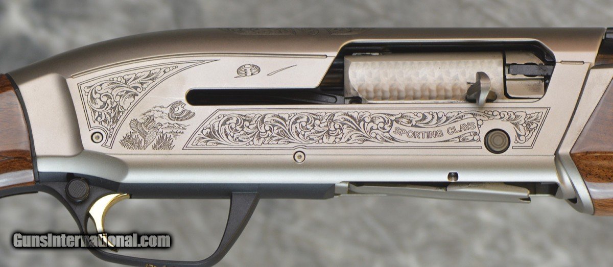Description: Pre-Owned Browning Maxis Sporting Nickel 12GA with 30" factory choke tubed barrel, nickel receiver with scroll engraving and game scenes. Factory pistol grip stock with sporting forearm. Minor handling marks in stock and forearm, overall excellent condition. Consignment, ineligible for trade-ins. Does not include case. SOLD |