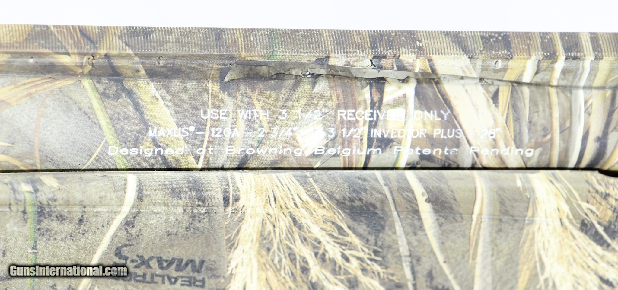 Description: Guns Listing ID: 754888 UPC 023614401391 MPN 011653204 Brand Browning Model Maxus Realtree Max-5 Caliber 12 GA Capacity 4+1 Features New Power Drive Gas System;Vent Rib, Speed Lock Forearm TypeShotgun: Semi-Auto Action Semi-Automatic Finish Realtree Max-5 Stock Composite, Realtree Max-5 Camo Sight Fiber-Optic Front Sight Safety Cross Bolt Safety Receiver Realtree Max-5 Camo,l Aluminum Alloy Chamber 3.5 Choke Multi-Choke (Full, Mod, IC) Invector Plus Butt Plate Inflex Technology Recoil Pad Barrel Length28 Lightweight Overall Length49 Weight 6.9375 lbs SOLD Manufacturer: BROWNING Model: MAXUS Condition: Used - Non-Certified Barrels: 28 BARREL Gauge Info: 12 GA |