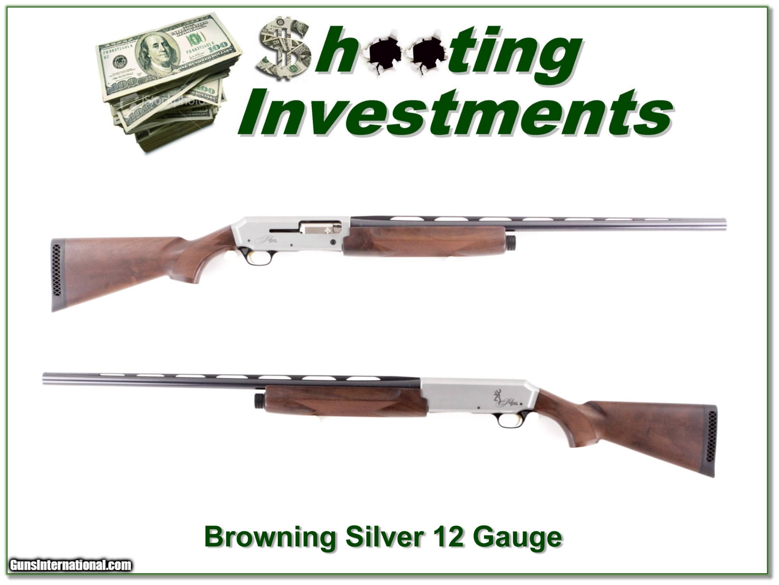 Description: This is a like new Browning Silver 12 Gauge. It has a 28in barrel chambered for 3in shells (I shoot’s 2 3’4in shells too). It uses invector chokes. I see no marks of note on blue, sliver or wood! I am selling this one on consignment and as such lay-a-way can’t be used. It does of course have the standard 3-day inspection. Shipping with insurance is $39. Please email me with any questions or larger pictures. (Consign your quality firearms with Shooting Investments for only 12%! Let me know if you have any you would like to sell!) 18-1112 Payment: Payment is by Money Order, Cashiers Check or Personal Check. I can now also accept MasterCard and Visa with a 3% convenience fee. PayPal can be used for some items but never firearms. Please let us know if you would like to pay via PayPal. Shipping: The shipping charge will be listed in each description. It is $39 for most firearms. Some heavy guns or those insured for over $2000 will be higher. Shipments to Alaska and Hawaii are higher because air shipment is required. Most firearms are shipped on Tuesday and Thursday and usually in 5 days of receipt of payment. We package all shipments carefully and insure them. Optics are shipped Priority Mail and most other non-firearm shipments are shipped First Class. Returns: Our return policy is simple. If for any reason you are not pleased with your purchase, you may return your item for a full refund of purchase price. Ammunition cannot be returned. It is important to us that you are happy. Guns cannot be fired or dissembled before returning them and they must be returned in the same condition as received. Notification of a return must occur with-in 3 days of receipt at your dealer. Shipping, convenience and dealer fees are not refundable and are the responsibility of the buyer. Lay-a-way: If needed, we offer a 60 day lay-a-way option on most firearms. It is 1/3 now, 1/3 in 30 days and 1/3 in 60 days. Lay-a-way firearm sales are final and if not completed the first payment cannot be returned. Consigning your firearms with Shooting Investments: We will help you get top dollar for your firearms. While most local guns shops charge 20% or more, our fee is only 12% with a minimum of $75. At your local gun shop it might take months to sell. Selling on-line provides instant access to thousands of interested buyers. You won’t find any other on-line dealer willing to sell your firearms for only 12% or listing every gun on 3 separate s. Selling through an House typically costs the seller 15% and the buyer an addition 15% (so 30%) and you have to wait several months to sell and longer to receive funds. If properly priced, we will sell your firearms in a few weeks. Send us an email or give us a call and we’ll explain how easy it is for you to get top dollar. Trading: Trading for use is really just buying your gun to re-sell. If you have a gun you want to trade, please email a picture and we will let you know what we can give or it. You will always get more if we sell it for you on consignment. Help for California Buyers: We are happy to ship to California. It is the buyer’s responsibility to make sure any item you buy is legal in your state. We are also happy to help with your purchase of a firearm from someone other than us. If you see a gun you would like to buy but the seller can’t or won’t ship to California they can ship to use and we’ll then ship it to your California dealer. The cost for this service is only $30 + shipping. Let us know if we can help! SOLD |