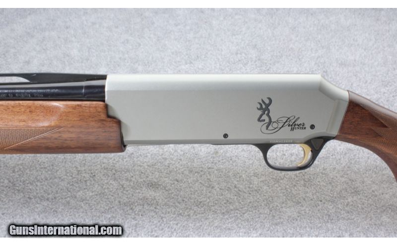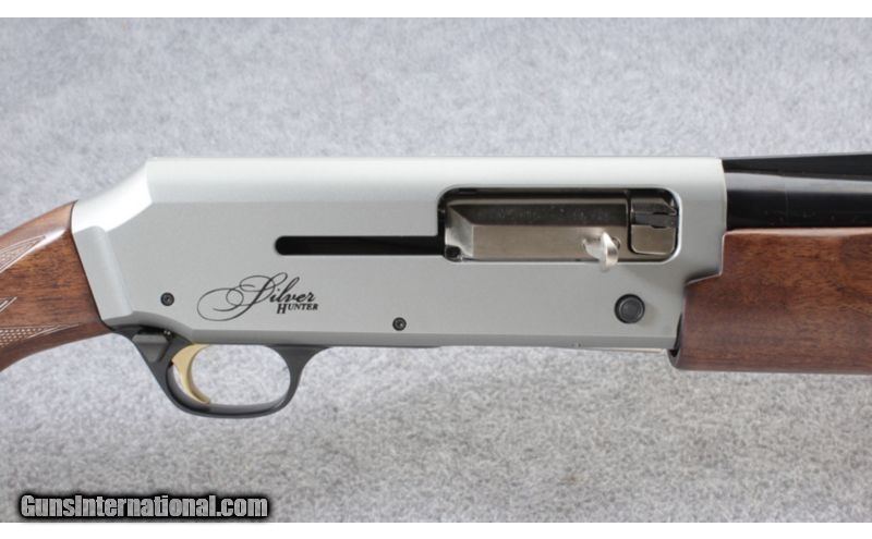 Description: The Browning Silver Hunter is a lightweight, fast handling semi-auto shotgun that's designed with upland bird hunting in mind; though its self-adjusting Active Valve gas system increases its versatility to include most any type of wing shooting or shooting sport. The Active Valve gas system vents excess gas out the top of the forearm, and away from the receiver for clean, reliable operation with 2-3/4" and 3" shells, without the need or adjustment. The Silver Hunter blued barrel, a silver receiver, and a checkered Turkish walnut stock with a ventilated recoil pad. The semi-humpback receiver design with a ventilated rib and white front bead creates a sight picture that's quick to pick up and swing on moving targets. The barrel comes back bored and threaded for Browning's Invector-Plus choke tubes to deliver consistently tight shot patterns. The low recoiling Browning Silver Hunter Semi-Auto Shotgun allows for fast follow-up shots and all-day shooting comfort on the clays range or wing shooting. SOLD Manufacturer: 2005 Caliber Info: 12 Gauge Chambers: 3 inch Metal Condition: Excellent Wood Condition: Excellent with light handling marks Bore Condition: Excellent Barrels: 28 inch barrel Stock: Checkered walnut pistol grip stock Stock Dimensions: 14 1/4 inch LOP Fore End: Checkered walnut fore end Butt Pad: Browning pad Weight: 7 lbs. 4 oz. Sights: Vent rib with single white bead Chokes: Browning Invector-Plus interchangeable choke tube Extras: Box Item Location: Lehi, UT |
