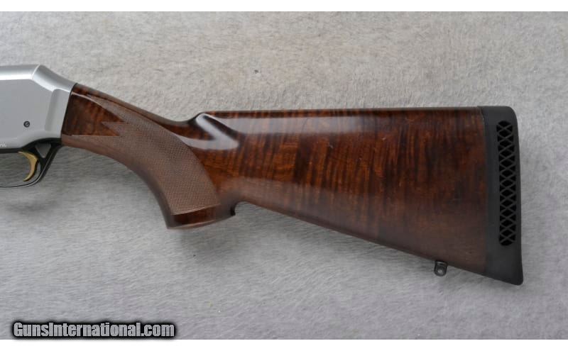 Description: This Browning Model Silver Hunter is a right hand semi-auto shotgun in 12 Ga. It has a 28 inch barrel with a ventilated rib. A white bead front sight. With a 3 inch chamber it comes with a Modified choke tube. The butt stock is a checkered grip hardwood pistol grip. The forearm is a checkered grip hardwood. 12 Gauge SOLD Chambers: 3 inch. Metal Condition: Fair. Has some blue wear and handling/use marks. Wood Condition: Fair. Has many handling/use marks. Bore Condition: Shiny. Barrels: 28 inch barrel with a ventilated rib. Stock Dimensions: LOP 14 1/4 inches. Fore End: Checkered grip hardwood. Butt Pad: Browning black rubber recoil pad. Weight: 7 lb. 8 oz. Sights: White bead front sight. Chokes: Comes with a Modified choke tube. Item Location: Richfield, WI |