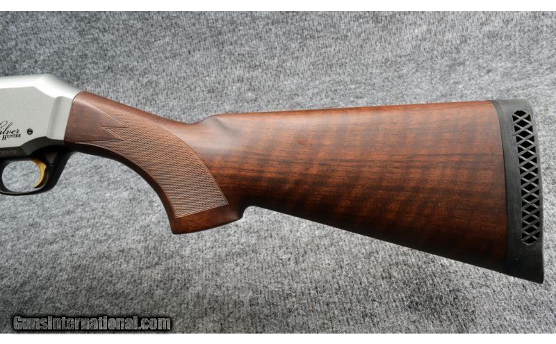 Description: Lightweight and well balanced, the Browning Silver Hunter is beautiful and easy to point. The wood has a look and feel beyond its price point. This Silver Hunter is in excellent condition all around and includes 4 chokes (F, M, IC, SK), the factory case, and paperwork. SOLD Caliber Info: 12 Ga Chambers: 3 inch Metal Condition: Excellent- little to no marking Wood Condition: Excellent- one mark on forend Bore Condition: Excellent- clean, smooth bore Barrels: 28 inch Triggers: Semi-auto Stock: Checkered Turkish walnut Stock Dimensions: 14.25 inch LOP, 1.75 inch DAC, 2 inch DAH Fore End: Checkered Turkish walnut Butt Pad: Browning ventilated recoil pad Weight: 7 lb, 2 oz Sights: Fiber optic green front/ white bead front Chokes: 4 chokes: Invector Plus: F, M, IC. Midas Grade SK Extras: Factory case, paperwork, and 4 chokes (total) Item Location: Gainesville, VA |
