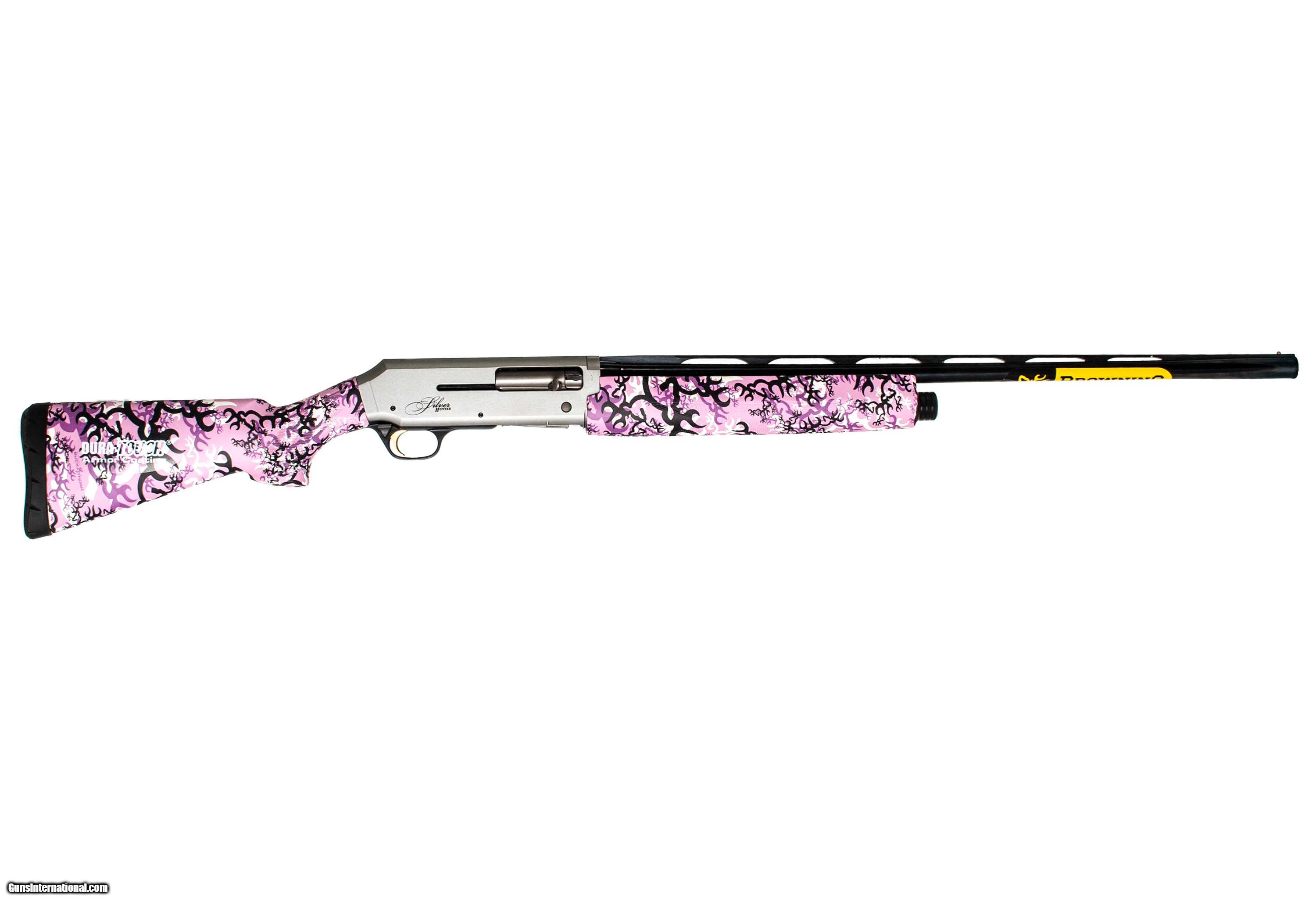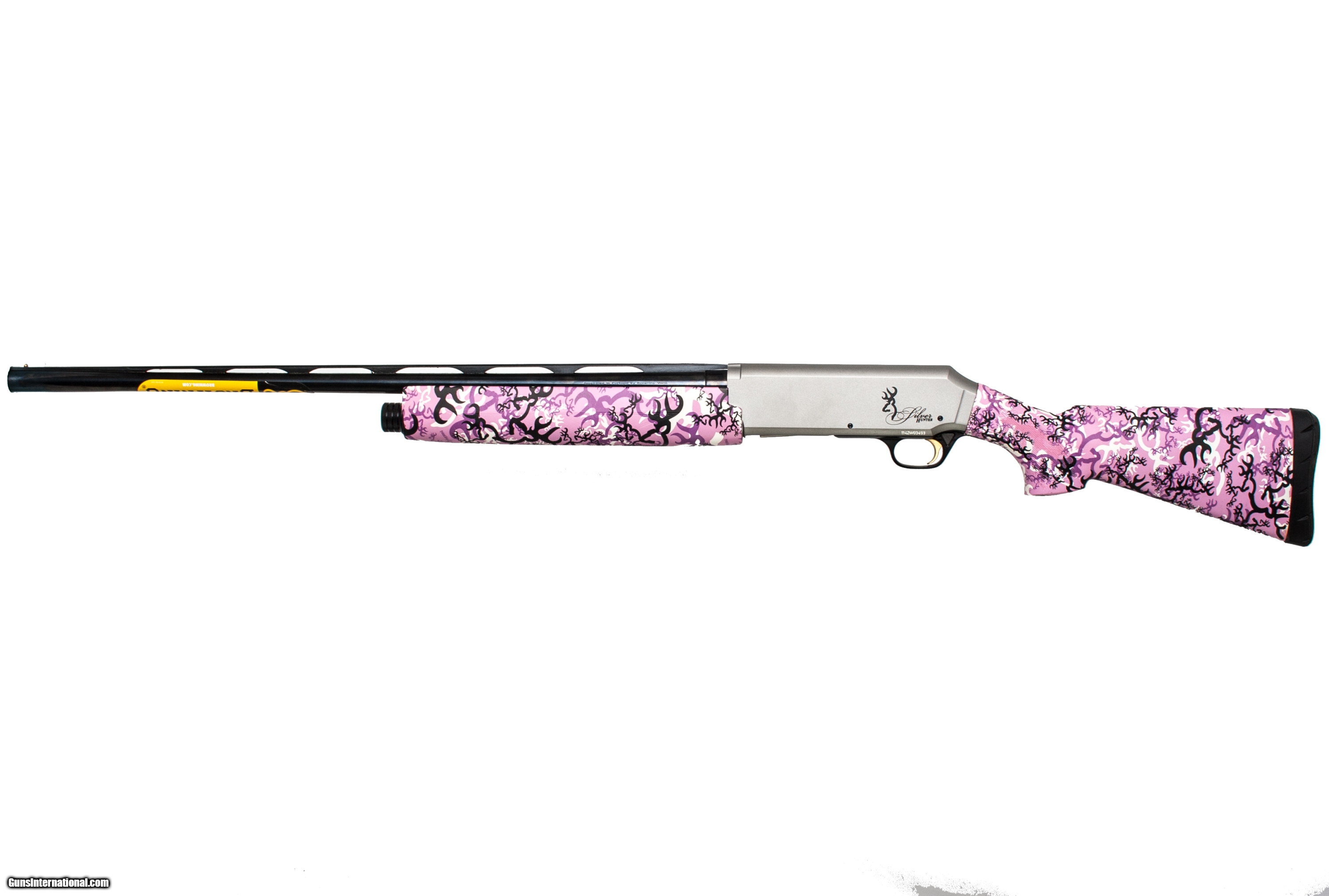 Browning Silver Hunter in 20 ga with a 26 inch barrel Browning pink camo and a 13 inch LOP. This gun is in excellent condition and is covered by Dury's Lifetime Warranty.