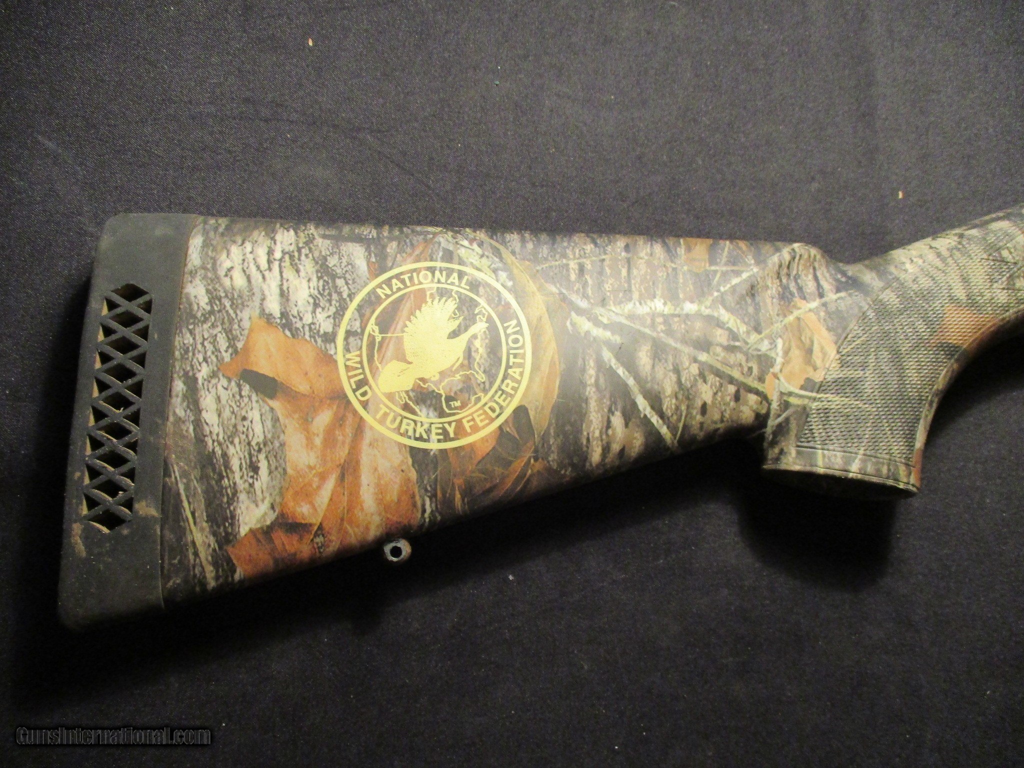 Description: Browning Gold, National Wildlife Turkey Federation model, in the Mossy Oak Break Up camo. 12ga, 3.5" camber, 24" barrel, vent rib, turkey sights and one turkey choke. Comes with the factory box. SN is 113MN026xx. Gun looks to have hardly ever been shot. Email me if you would like these pics sent to you, they will come through bigger and better than on the listing page here. Email me with any questions. I am a store front dealer, and I will close s if the gun sells locally. Once ahas reached my reserve, I will pull it from my shelves. Please check your local laws to confirm it is legal to own in your state! Buyer pays $25 shipping and insurance to your FFL, in the lower 48. AK, HI or PR is extra. I will ship to California, NO PROBLEM! All my guns come with a non firing, 3 day unconditional return privilege, from the day UPS delivers to your dealer. Buyer pays shipping both ways if the gun comes back. I can add a new hard case by PLANO for secure shipping for $25 if the buyer wishes (highly recommended, cheap insurance, really helps keep the UPS monster from eating my guns!). No sales tax on guns ship out of Kansas, guns sold in Kansas are subject to Kansas sales tax. I am a licensed FFL, and will include a copy of my FFL with the gun for your dealers records. I will ship to a C&R if the gun is eligible (you look it up!). I will ship to California, but you need to confirm the gun is legal where you are, California or other. I am always looking for good clean, old original Winchesters to buy, consign, or trade, especially pre '64's model 70's and model 54's. WE ALSO TRADE FOR CLASSIC CARS AND TRUCKS! I will leave feedback as soon as the buyer leaves feedback on me. Email me with any questions, and good luck! SOLD |