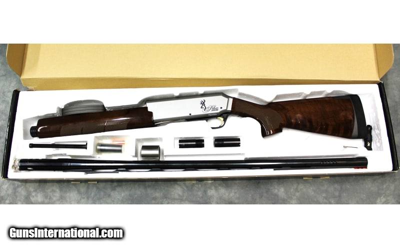 Description: This USED Browning Silver Sporting 12 gauge shotgun (which is no longer in production) features an aluminum alloy receiver designed with a semi-humpback design. It comes in a silver finish, and uses the Active Valve gas system, which automatically adjusts to fire a wide range of loads. This gas-operated autoloader is lightweight and has that overall classic appeal. A gold color trigger is housed inside an oversize trigger guard and the whole trigger assembly can be removed easily for cleaning. This shotgun comes with 3 Invector-Plus choke tubes. The Back-Bored Barrel Technology ensures your shot patterns are tight, dense, even and consistent, and provides an additional reduction in felt recoil. Don't miss out on this beautiful and versatile sporting shotgun. Call us directly at the Las Vegas, NV Bass Pro Shops store today! 702-730-5200 12 Gauge SOLD Metal Condition: Overall Excellent with some small light scratches and marks from handling/light use. Wood Condition: Overall Excellent with some signs of handling/light use. Note - there are a few small light scratches on the forend and stock. Bore Condition: Excellent Barrels: 30" ported Weight: 8 LBS Sights: Fiber Optic front sight Item Location: Las Vegas, NV |