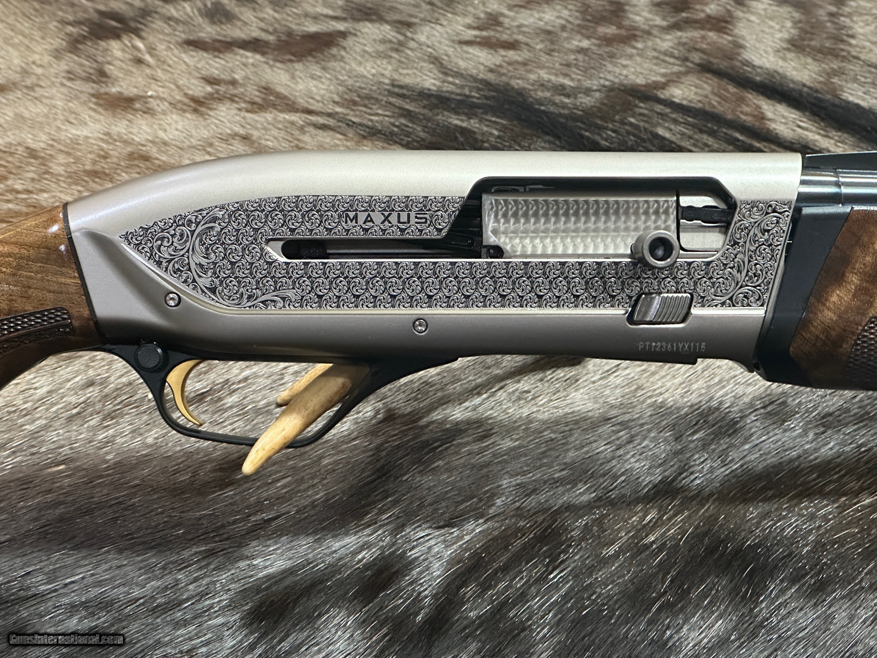 Description: NEW MAXUS II ULTIMATE 12GA 3" SEMI-AUTO SHOTGUN WITH GREAT WOOD STOCK - LAYAWAY AVAILABLE Fine autoloading shotgun for field and sporting clays. Features a Grade III walnut stock with oil finish, nickel plated receiver with satin finish and scroll engraving, Lightning Trigger, reliable Power Drive Gas System. UNLIKE OTHER SELLERS, JD OUTFITTERS DOES NOT FALSELY CLAIM TO HAVE “INVENTORY” BUT THEN DROP-SHIPS SOME UNKNOWN AND UNSEEN RIFLE FROM A THIRD-PARTY WAREHOUSE. NOR DOES JD OUTFITTERS USE STOCK OR GENERIC PHOTOS. THE RIFLE YOU SEE IS IN INVENTORY, READY TO SHIP, AND IS THE RIFLE YOU WILL RECEIVE! FEATURES OF THIS GREAT BROWING ULTIMATE SHOTGUN INCLUDE: