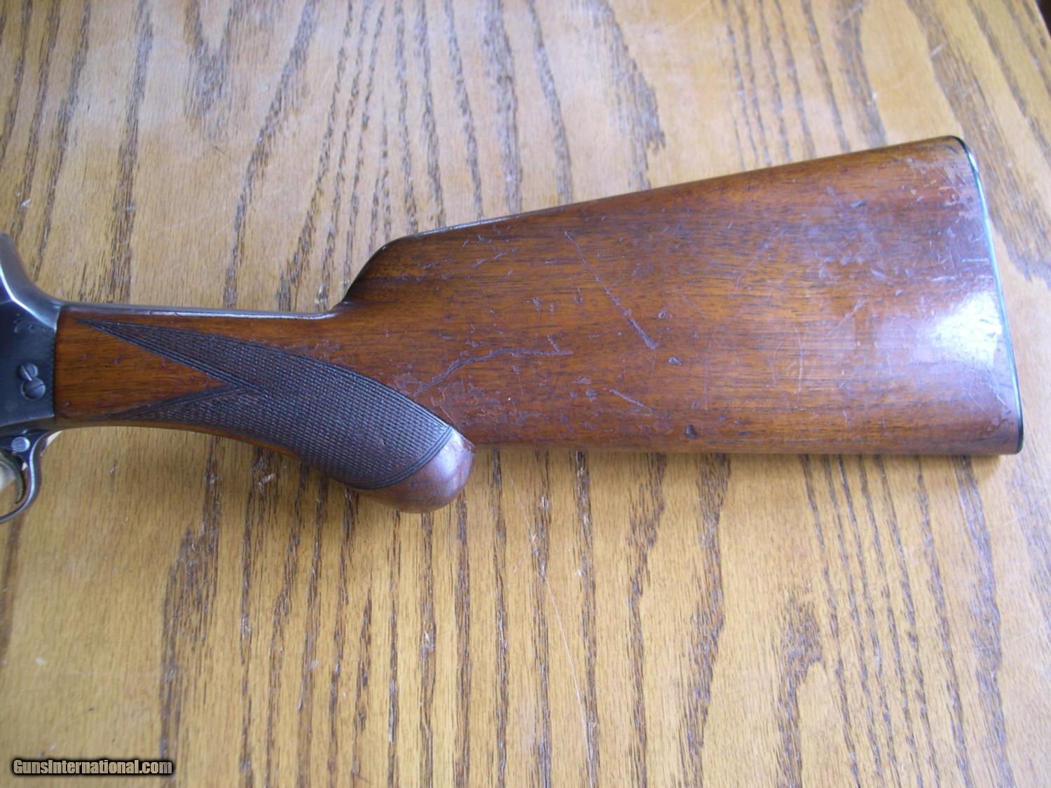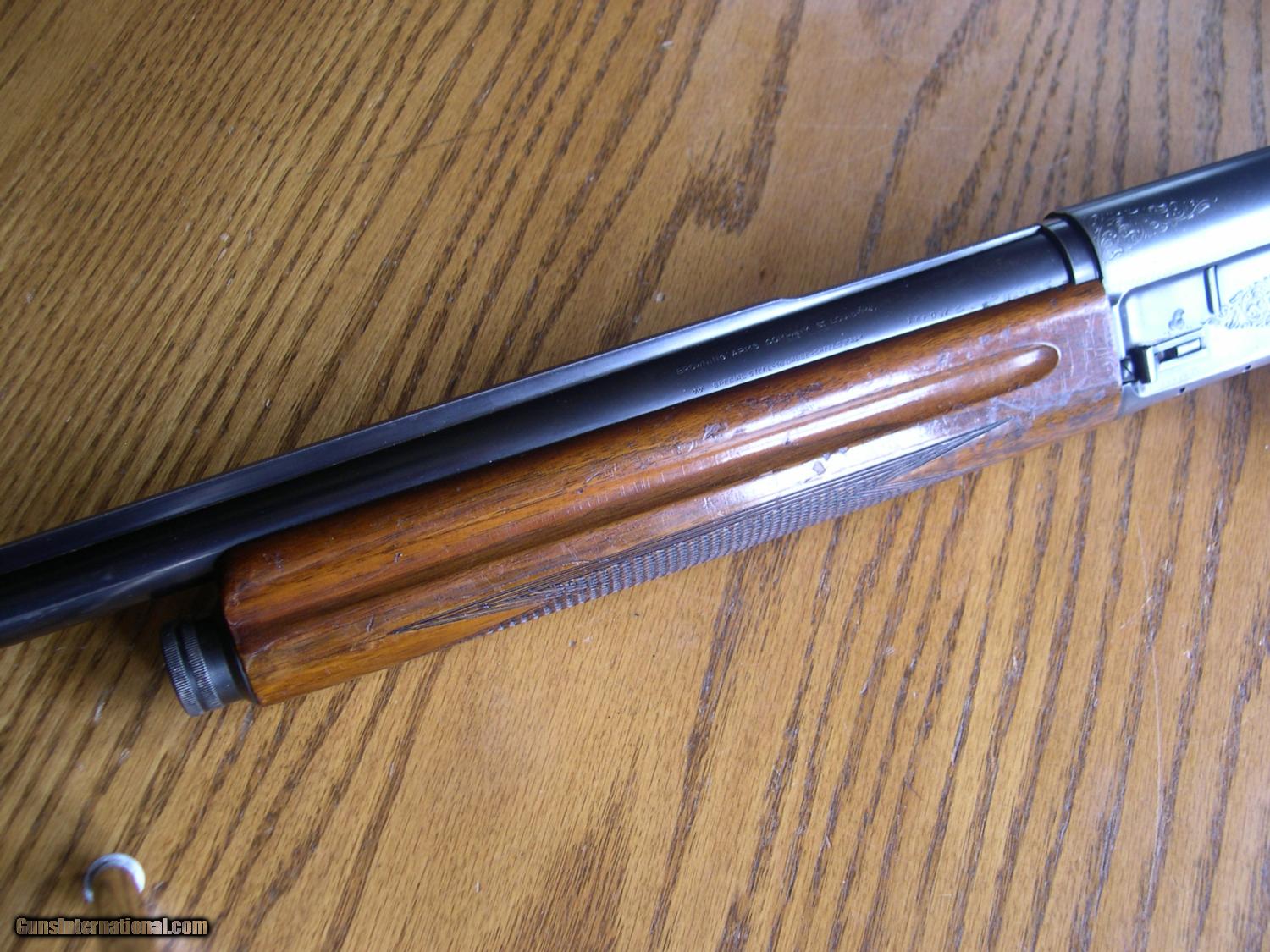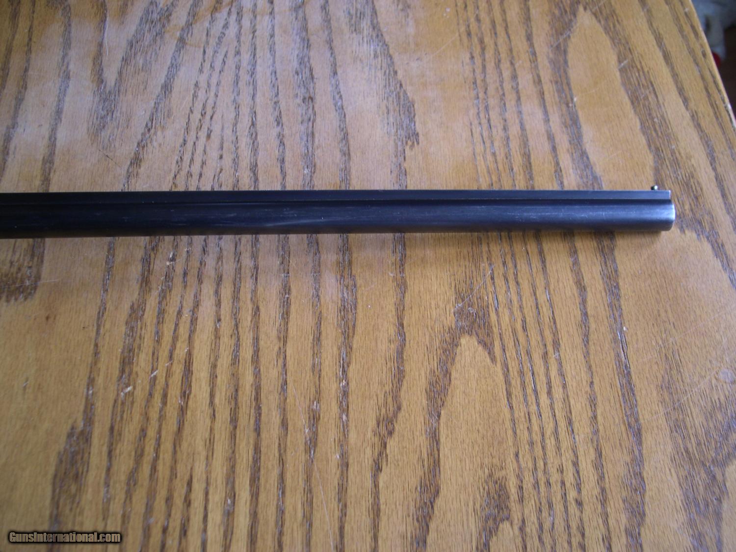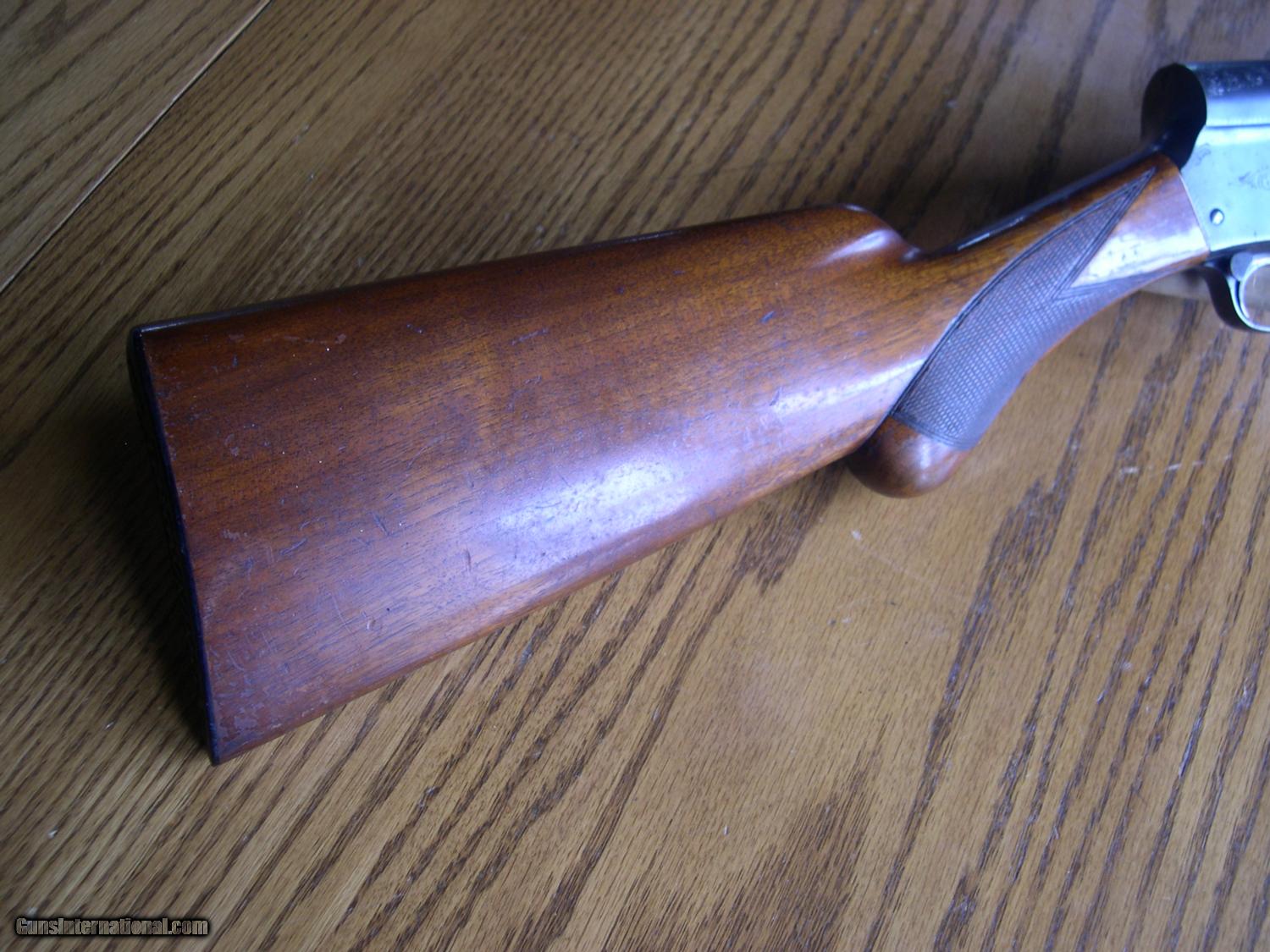 Description: Made in 1955 16 ga 2 3/4" chambers, Blue is thinning on corners and bottom of trigger guard, I estimate over 90% remainingwood has some handling marks on left side of stock, no deep ones, and no dents or cracks, made in 1955, gold on trigger is 50%, 14 1/4" LOP, to FN butt.Bore is fine,27 1/2" barrel has no dents , rib is fine all the way to end, matted on top. Choke is Mod. A very tight old 16Ga, that you can use every year, for a long time!! SOLD |