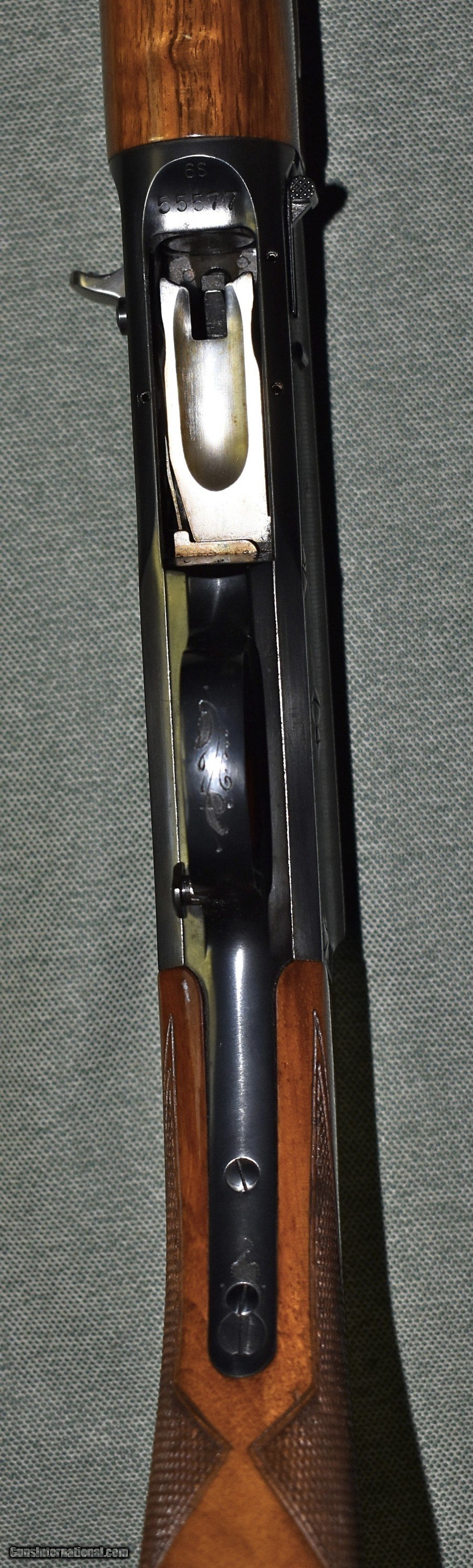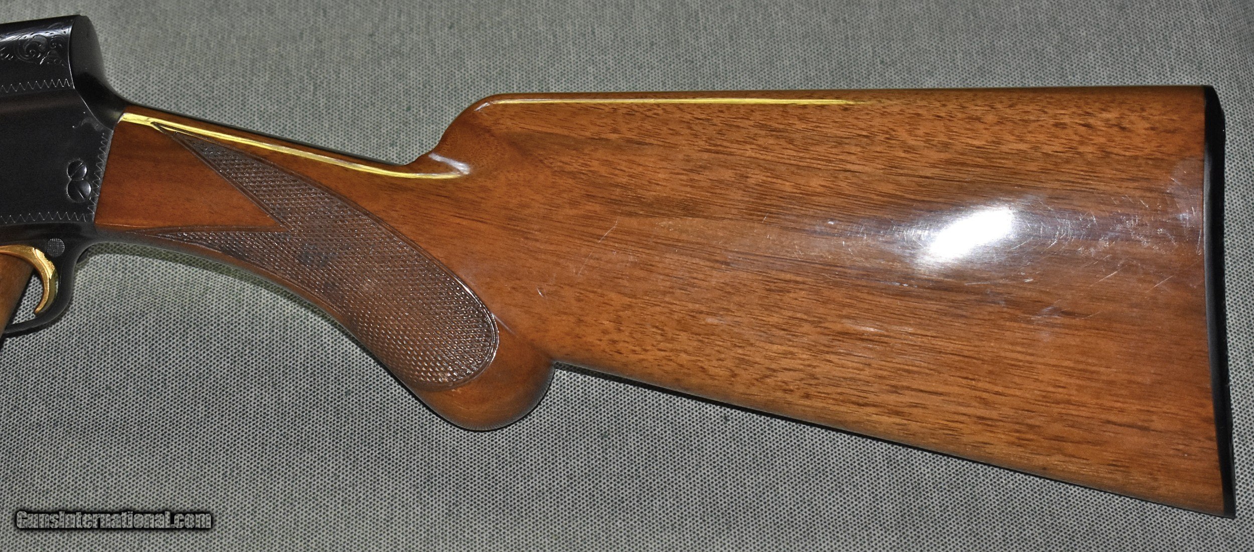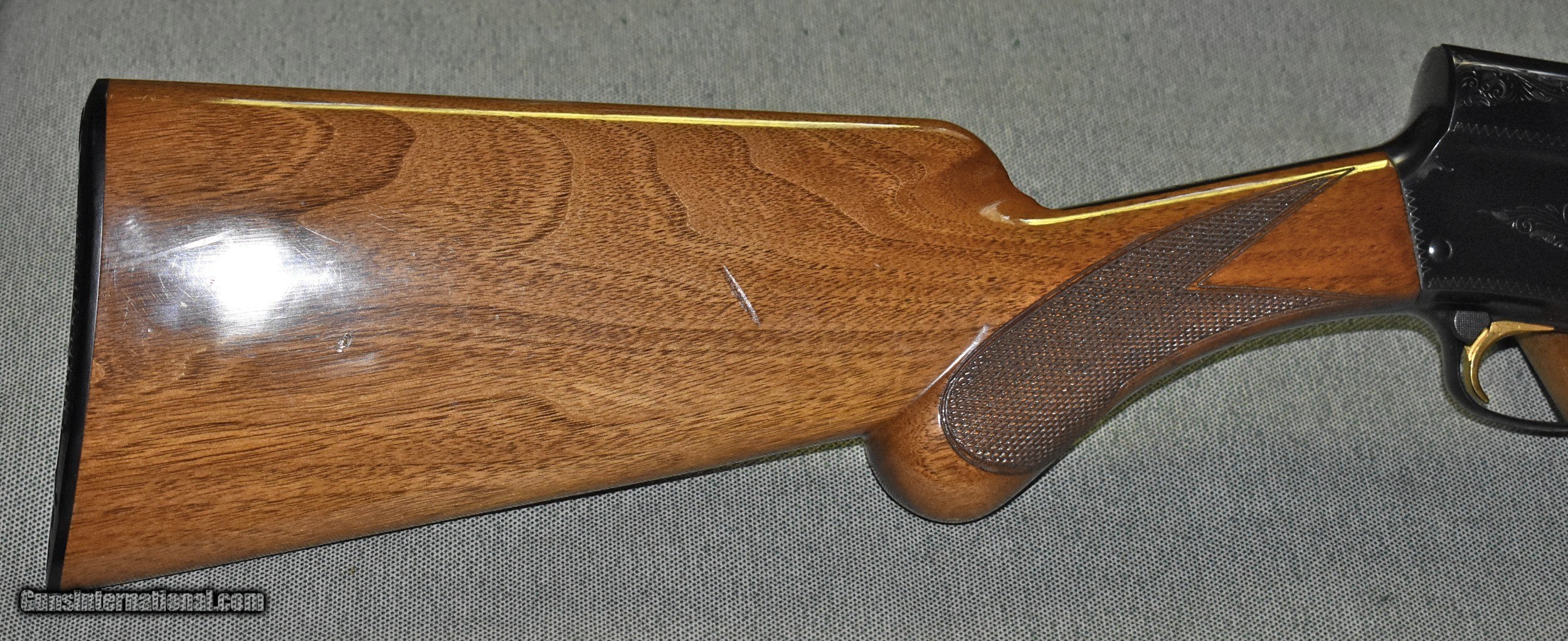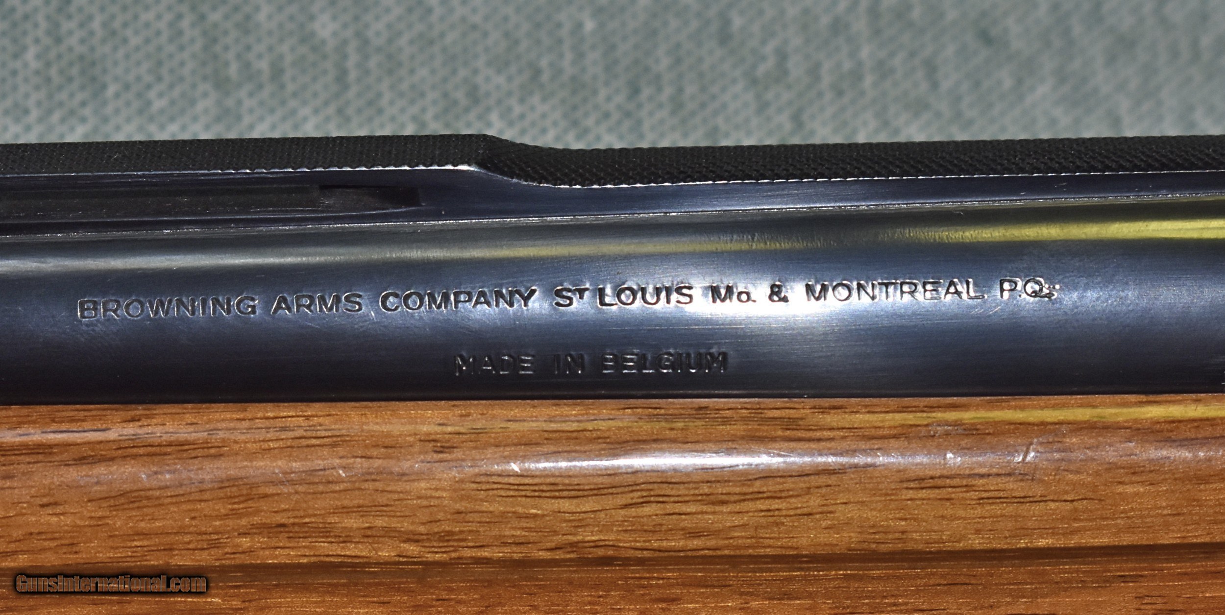 Description: Belgian Browning Sweet 16 built in 1966. This gun appears to be unfired showing no primer marks on the bolt face or any slide marks on the loading port. It has a 28" vent rib barrel choked modified. The barrel is the correct St. Louis and Montreal marked barrel. The stock has the desireable round knob pistol grip and retains the original buttplate. The gun retains 100% of the original blue finish and 99% of the original wood finish. There is one small safe mark on the right side of the stock (shown in photo),otherwise the gun would be 100%. Sweet 16s in this condition and configuration are very hard to find. C&R eligible. SOLD Curio/Relic: Yes Shotgun Gauge: 16 Gauge Manufacturer: Browning (FN) Model: Sweet 16 Serial Number: 6S55577 Barrel Length: 28 Chambers: 23/4 Condition: mint Metal Condition: mint Wood Condition: excellent Bore Condition: mint Barrel Type: Browning Special Steel Action: semi auto Butt Pad: factory buttplate Rib: ventilated Manufacture Date: 1966 Chokes: modified |