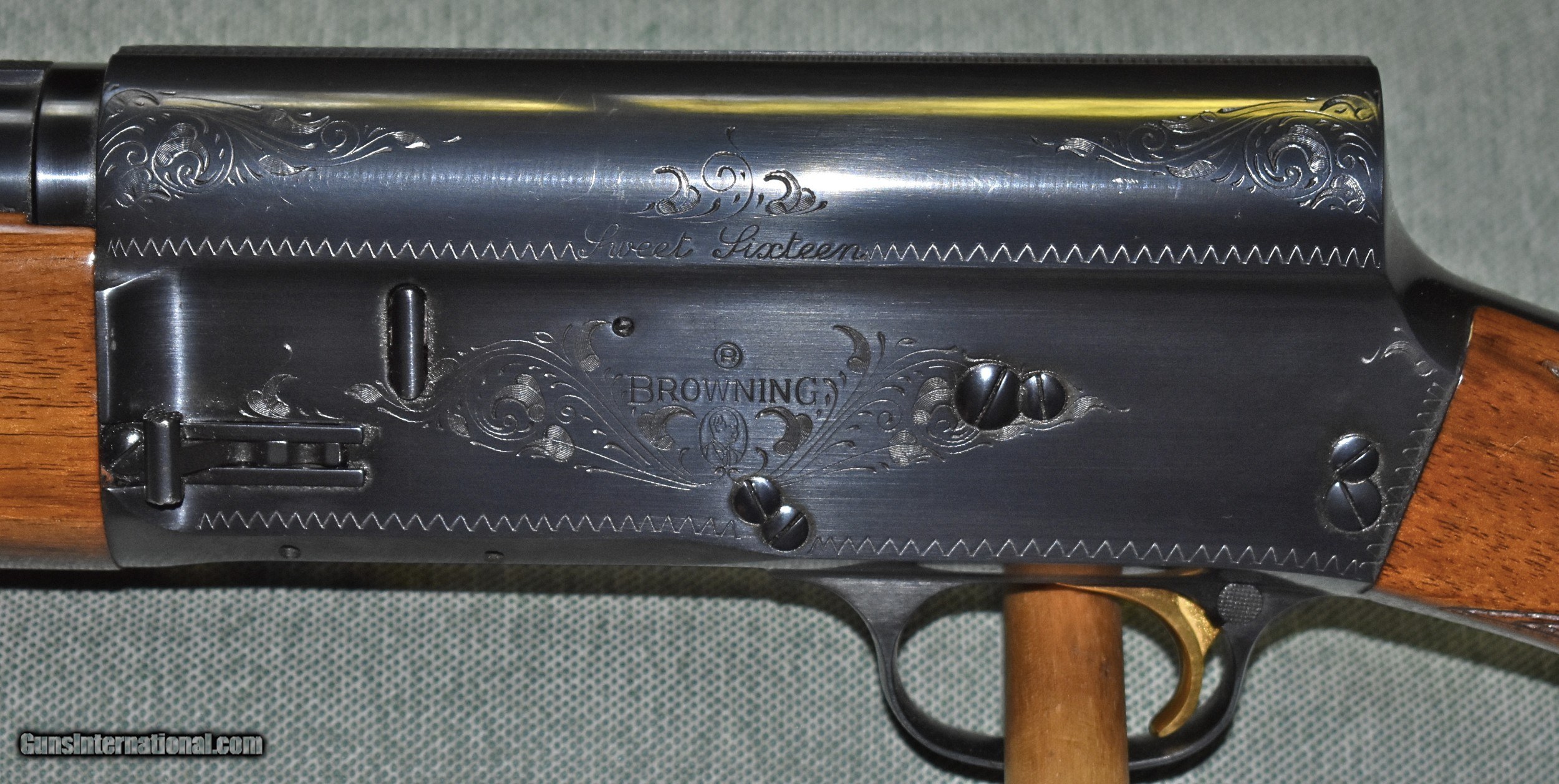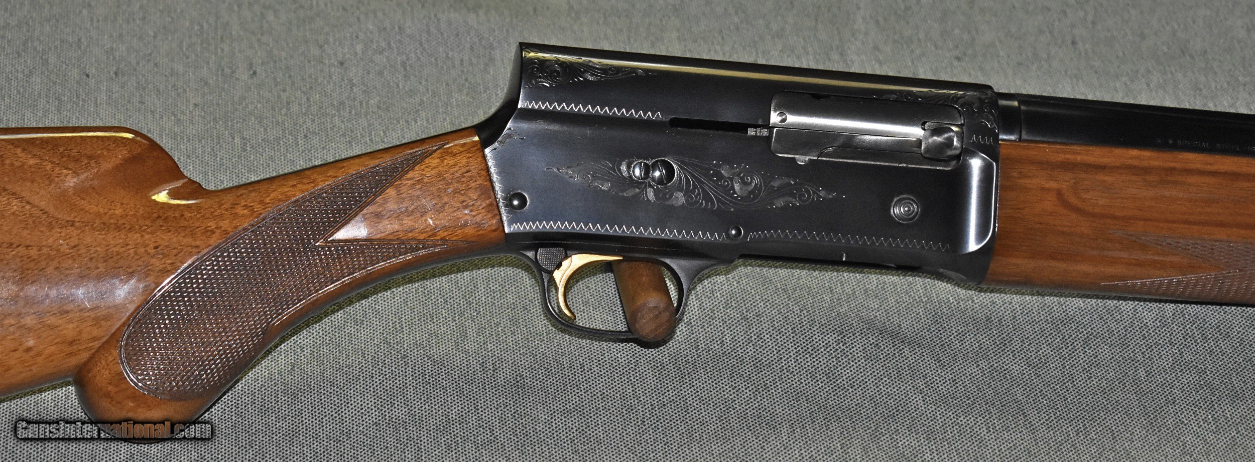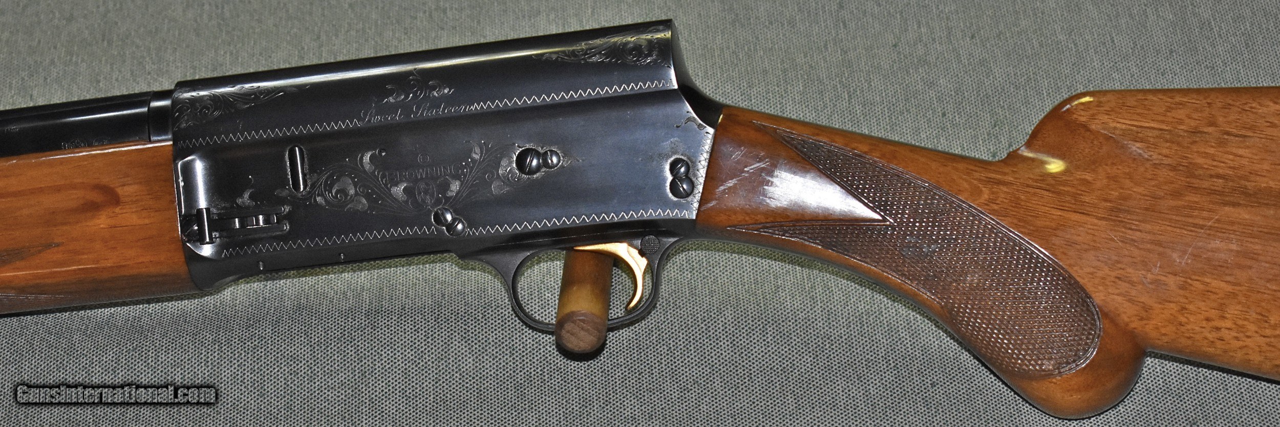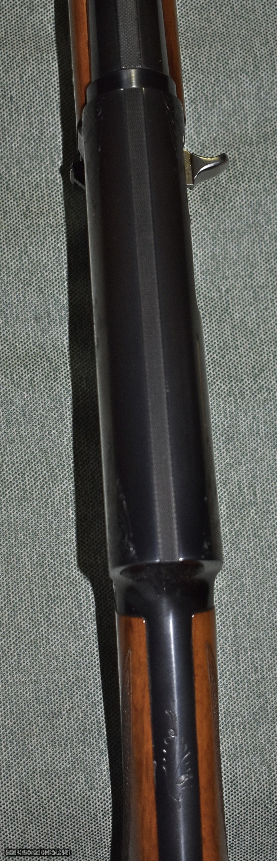 Description: Belgian Browning Sweet 16 built in 1966. This gun appears to be unfired showing no primer marks on the bolt face or any slide marks on the loading port. It has a 28" vent rib barrel choked modified. The barrel is the correct St. Louis and Montreal marked barrel. The stock has the desireable round knob pistol grip and retains the original buttplate. The gun retains 100% of the original blue finish and 99% of the original wood finish. There is one small safe mark on the right side of the stock (shown in photo),otherwise the gun would be 100%. Sweet 16s in this condition and configuration are very hard to find. C&R eligible. SOLD Curio/Relic: Yes Shotgun Gauge: 16 Gauge Manufacturer: Browning (FN) Model: Sweet 16 Serial Number: 6S55577 Barrel Length: 28 Chambers: 23/4 Condition: mint Metal Condition: mint Wood Condition: excellent Bore Condition: mint Barrel Type: Browning Special Steel Action: semi auto Butt Pad: factory buttplate Rib: ventilated Manufacture Date: 1966 Chokes: modified |