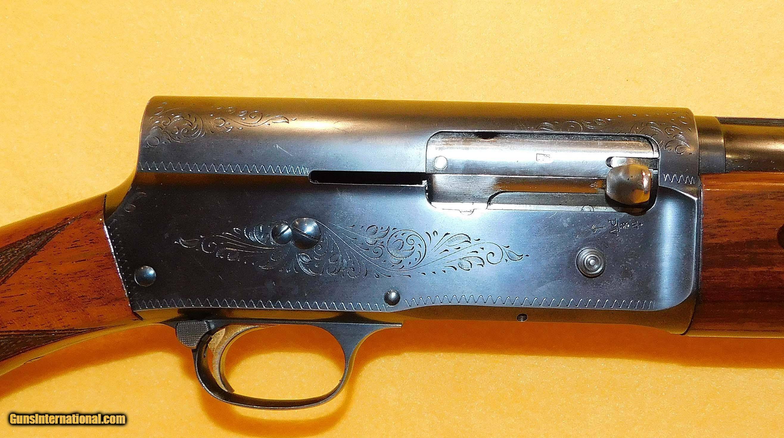Description: BROWNING (BELGIUM) A5 SWEET 16 IN 16 GA CAL., WITH 27 1/2" BARREL. COLOR BLUE. CONDITION 95%. SERIAL NUMBER 1S75503. BROWNING (BELGIUM) MODEL A5 SWEET SIXTEEN IN 16 GAUGE CALIBER BUILT IN 1957, 2 ¾” CHAMBER, SINGLE BEAD VENT RIB MIRROR BORE BARREL WITH FIXED MODIFIED CHOKE, ROUND KNOB, LONG TANG, WOOD VERY GOOD TO EXCELLENT, 95% OVERALL CONDITION, OUR STOCK # D1896 SOLD |