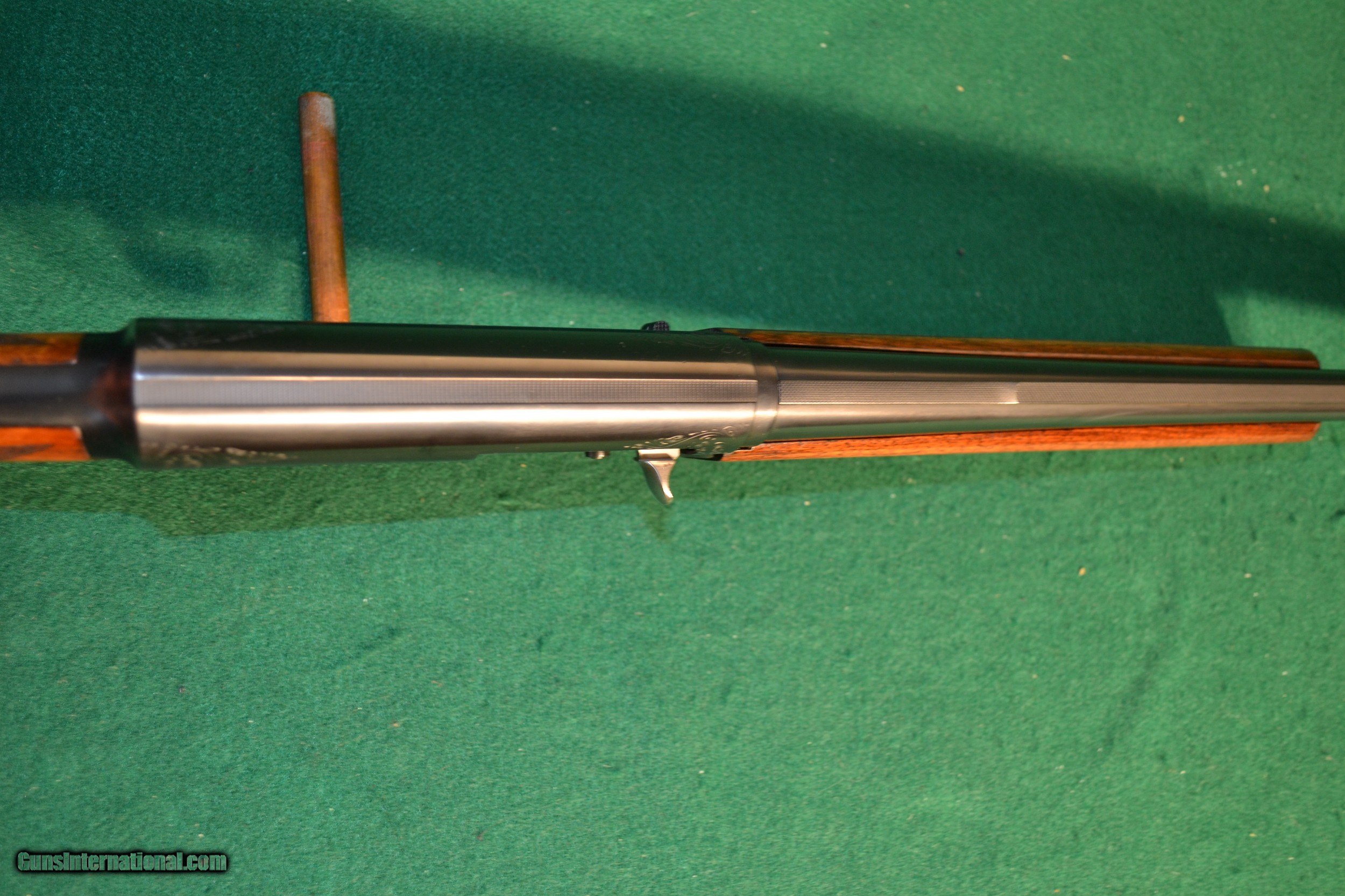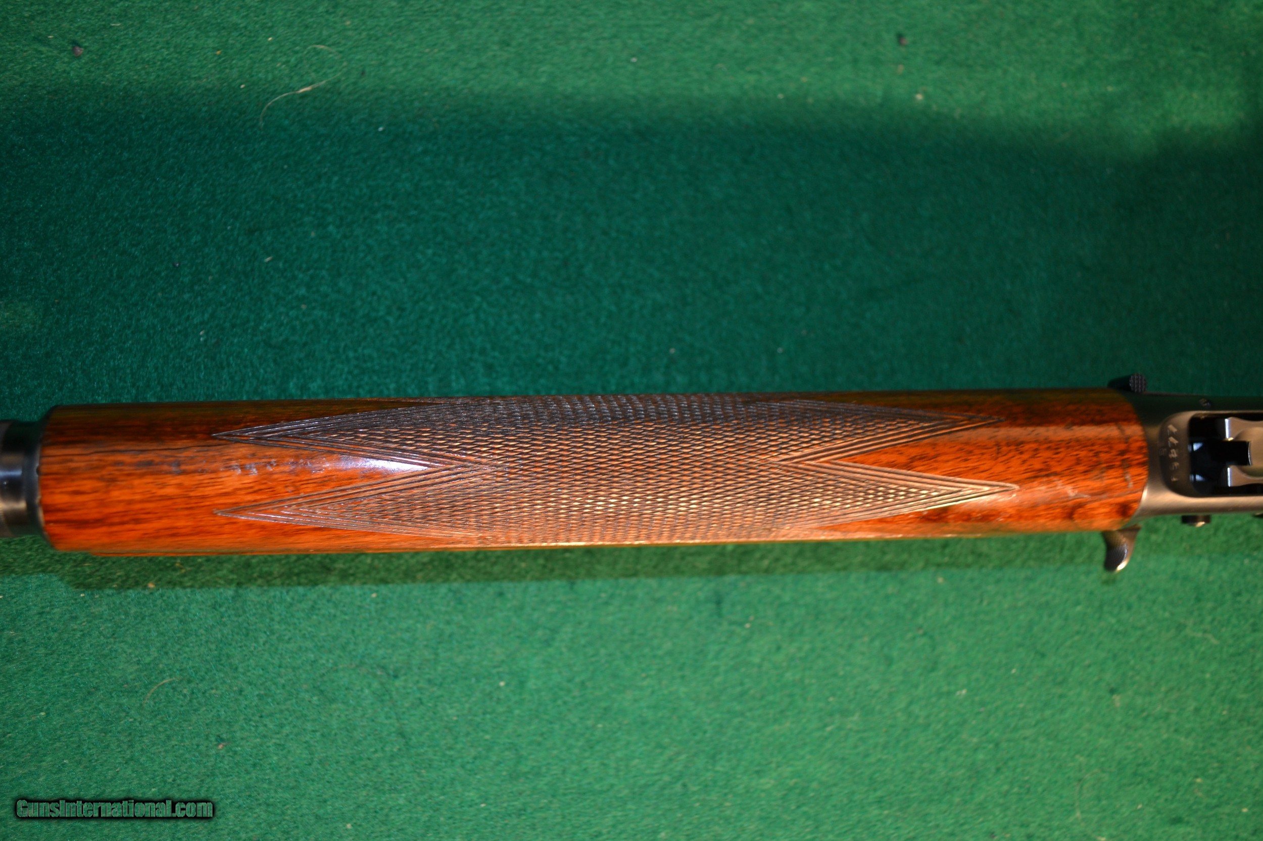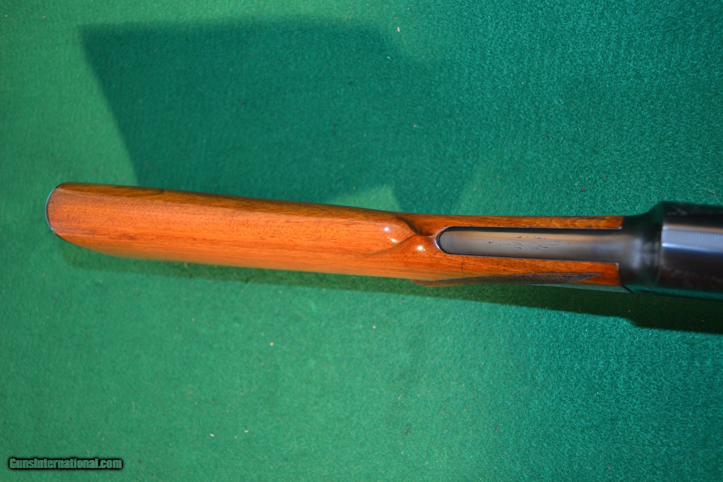 Description: Sold !! This Browning A-5 Sweet Sixteen. Cal 16g was mfg abt 1956 and has the original stock. It has a few very light handling marks and has the correct original FN Butt Plate. The Stock (Rounded Knob)& Forearm are a reddish medium light Walnut w/o any cracks and are numbered to the receiver. The Gun Metal is about 98% and could possibly have been an earlier resotoration. It's very nice and if it was it was probably done by someone like Art's Gun Shop. Also to note this is the Grade I w/the correct engraving and the pic of "John Moses Browning". The ventilated rib barrel is 28 inches & is perfect. The bore is a mirror. The action is tight and smooth. These S-16's in this beautiful Reddish Tone w/a Round Knob are getting like hens teeth to me. The choke is * Full. I would rate this as an NRA VG to Excellent. SOLD Shotgun Gauge: 16 Gauge Manufacturer: Browning Model: Sweet Sixteen Serial Number: S 69XXX Barrel Length: 28 inc Vent Rob Bore: Mirror -Mea .623 Condition: VG to Excellent Metal Condition: Excellent Wood Condition: VG - Excellent Bore Condition: Mirror - Excellent Barrels: 28 Inch FC Barrel Type: Ventilated Rib Action: Semi - Auto Triggers: Gold Stock: Walnut - W/Reddish Tone Butt Pad: FN w/"Browning Automatic LOP: 14 3/8 Rib: Ventilated Finish: Walnut Sights: Bead Manufacture Date: 1956 Engraving: Grade I Proof:Nitro: Belgium Proofs |