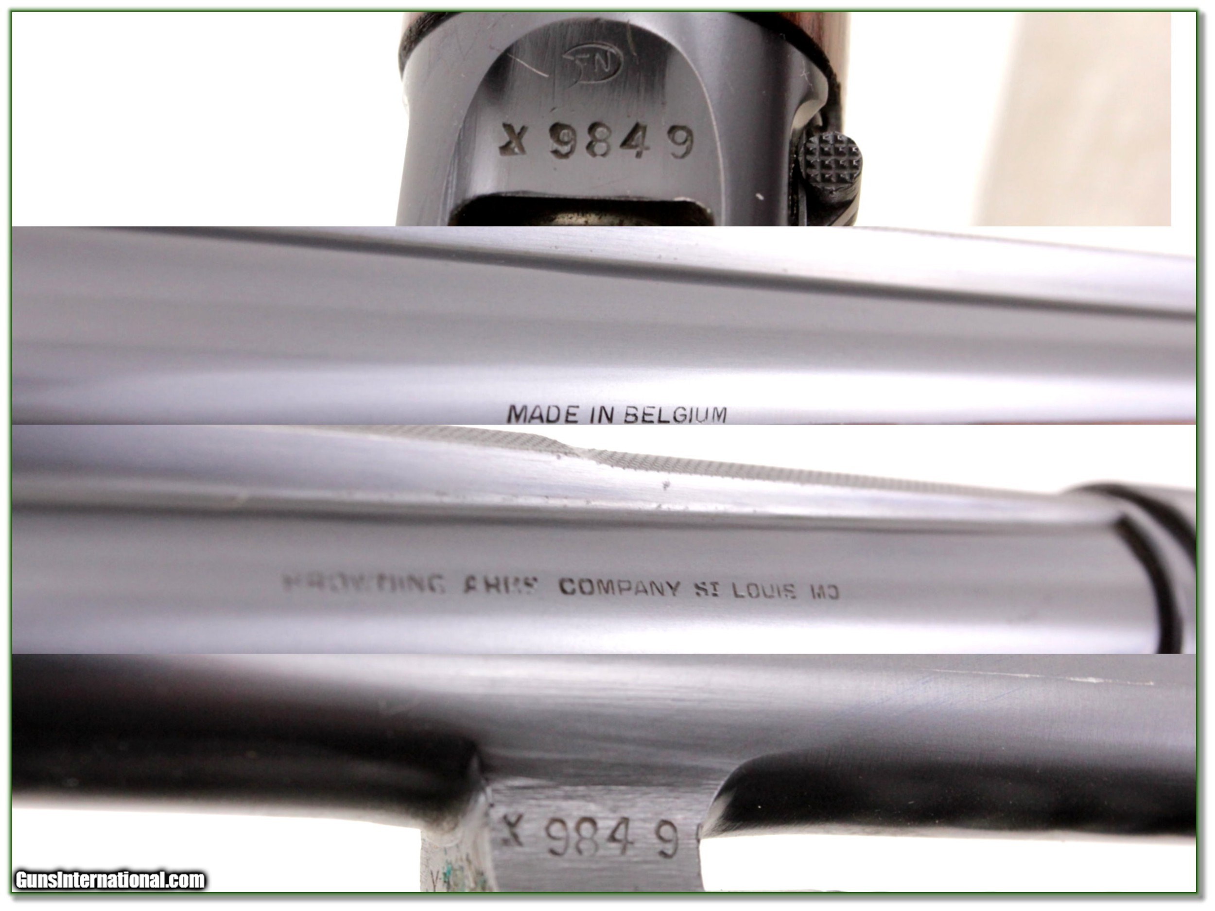 Description: Collectors, WOW, this is a beautiful all original early Browning Sweet Sixteen. It was made in Belgium in 1947 BEFORE Browning added the words Sweet Sixteen to the receiver. It is distinguished from the standard 16 by the gold trigger and safety and barrel ring holes. All serial numbers match on this rare find including barrel, forearm and all screws etc. The rust blue is outstanding with no edge or recoil wear. The original wood finish is excellent with a few minor storage marks and a couple marks under the forearm I expect from a rack. The barrel is a rare solid rib 28in full. The Sweet Sixteen had a narrower rib than the standard. You will look hard to find a nicer example! Shipping with insurance is $49. Please email me with any questions or larger pictures. (Consign your quality firearms with Shooting Investments for only 12%! Let me know if you have any you would like to sell!) 19-0800 Payment: Payment is by Money Order, Cashiers Check or Personal Check. I can now also accept Credit Cards (MasterCard, Visa, Discover & American Express) with a 3% convenience fee. PayPal can be used for some items but never for firearms. Shipping: The shipping charge will be listed in each description. It is $39 for most firearms. Some heavy guns or those insured for over $2000 will be higher. Shipments to Alaska and Hawaii are higher because air shipment is required. Most firearms are shipped on Tuesday and Thursday and usually in 5 days of receipt of payment. We package all shipments carefully and insure them. Optics are shipped Priority Mail and most other non-firearm shipments are shipped First Class. Returns: Our return policy is simple. If for any reason you are not pleased with your purchase, you may return your item for a full refund of purchase price. Ammunition cannot be returned. It is important to us that you are happy. Guns cannot be fired or dissembled before returning them and they must be returned in the same condition as received. Notification of a return must occur with-in 3 days of receipt at your dealer. Shipping, convenience and dealer fees are not refundable and are the responsibility of the buyer. Lay-a-way: If needed, we offer a 60 day lay-a-way option on most firearms. It is 1/3 now, 1/3 in 30 days and 1/3 in 60 days. Lay-a-way firearm sales are final and if not completed the first payment cannot be returned. Consigning your firearms with Shooting Investments: We will help you get top dollar for your firearms. While most local guns shops charge 20% or more, our fee is only 12% with a minimum of $75. At your local gun shop it might take months to sell. Selling on-line provides instant access to thousands of interested buyers. You won’t find any other on-line dealer willing to sell your firearms for only 12% or listing every gun on 3 separate s. Selling through an House typically costs the seller 15% and the buyer an addition 15% (so 30%) and you have to wait several months to sell and longer to receive funds. If properly priced, we will sell your firearms in a few weeks. Send us an email or give us a call and we’ll explain how easy it is for you to get top dollar. Trading: Trading for use is really just buying your gun to re-sell. If you have a gun you want to trade, please email a picture and we will let you know what we can give or it. You will always get more if we sell it for you on consignment. Help for California Buyers: We are happy to ship to California. It is the buyer’s responsibility to make sure any item you buy is legal in your state. We are also happy to help with your purchase of a firearm from someone other than us. If you see a gun you would like to buy but the seller can’t or won’t ship to California they can ship to use and we’ll then ship it to your California dealer. The cost for this service is only $30 + shipping. Let us know if we can help! SOLD |